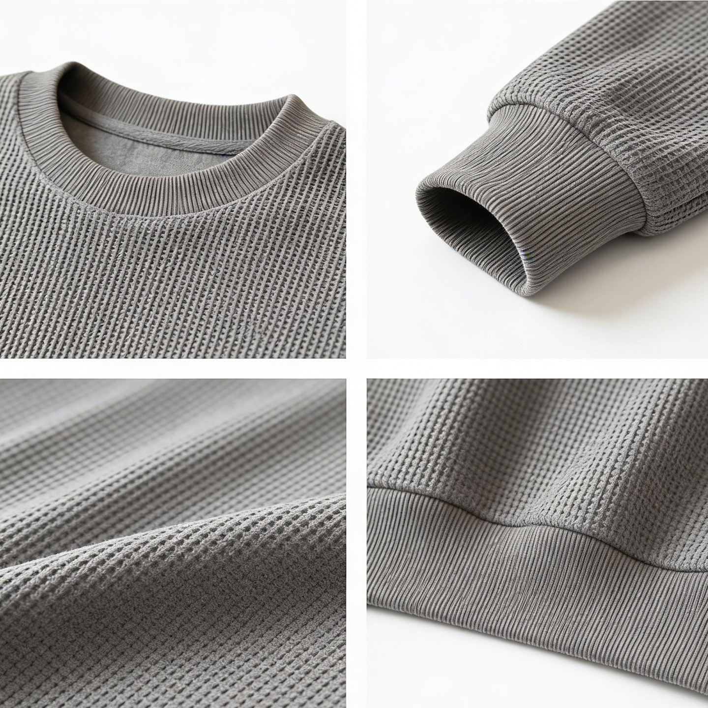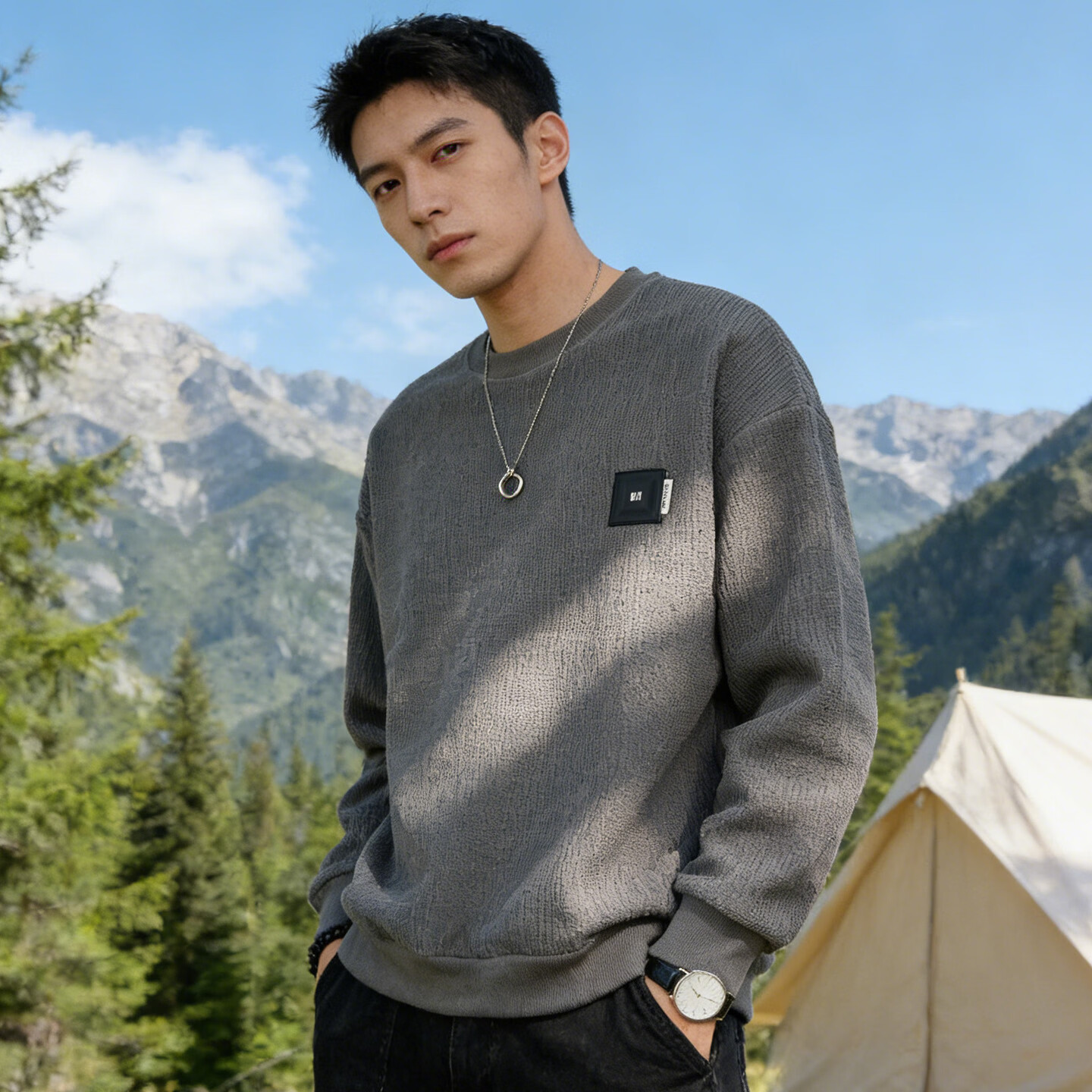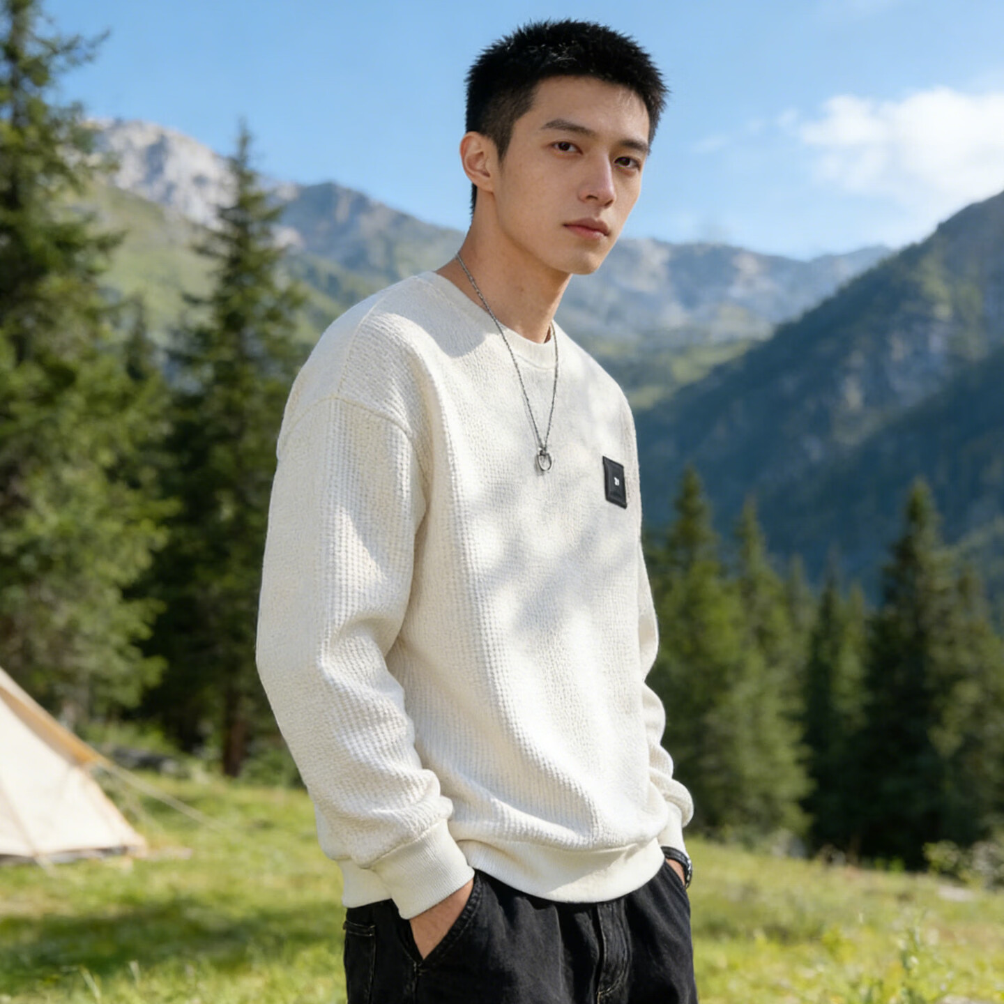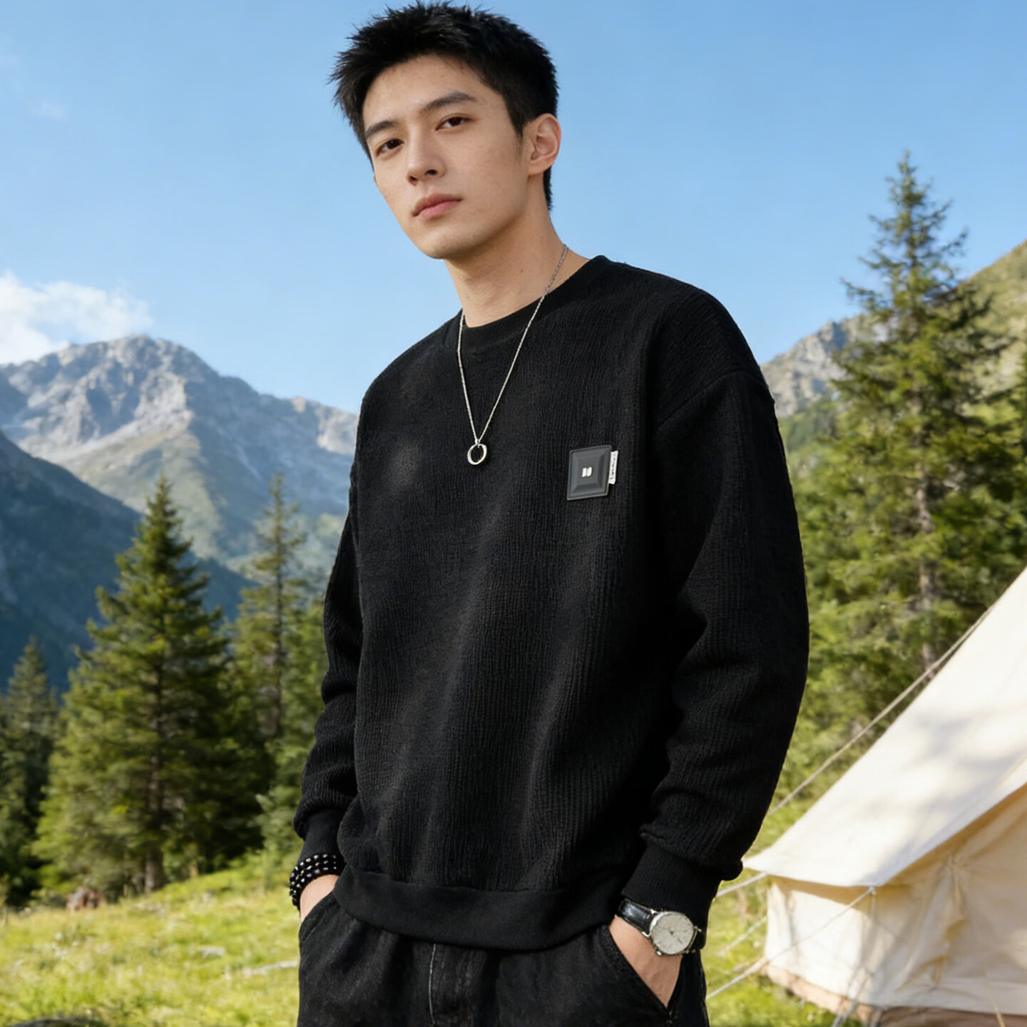 Playboy (PLAYBOY) American retro waffle sweatshirt for men 2026 spring new loose round neck pullover trendy casual long sleeve black L 125-145