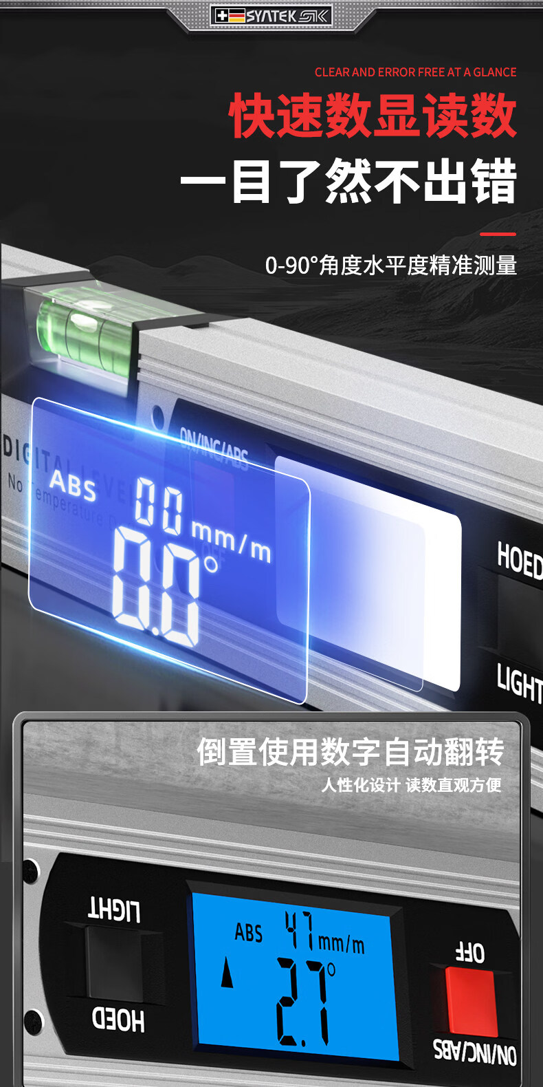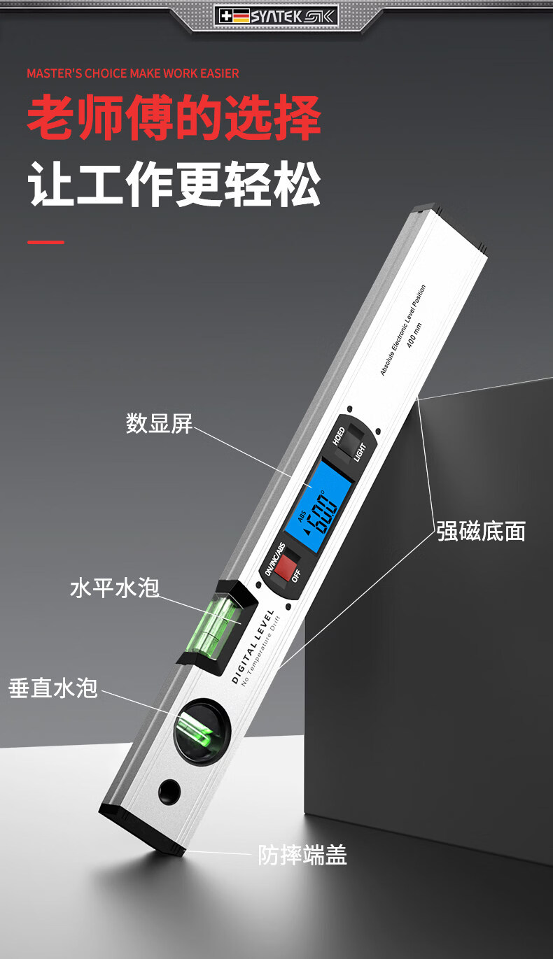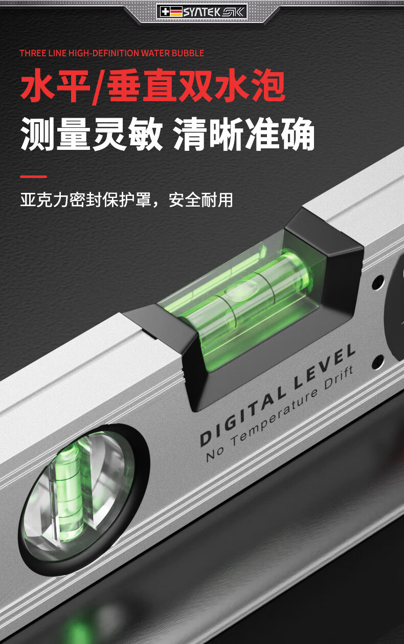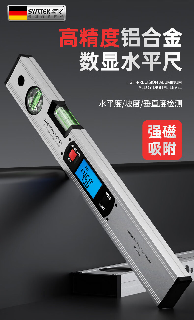Miaopule level high-precision electronic digital display level level with strong magnetic slope meter level aluminum alloy laser slope ruler laser upgrade 225mm (10 meters cross laser + strong magnetic adsorption)