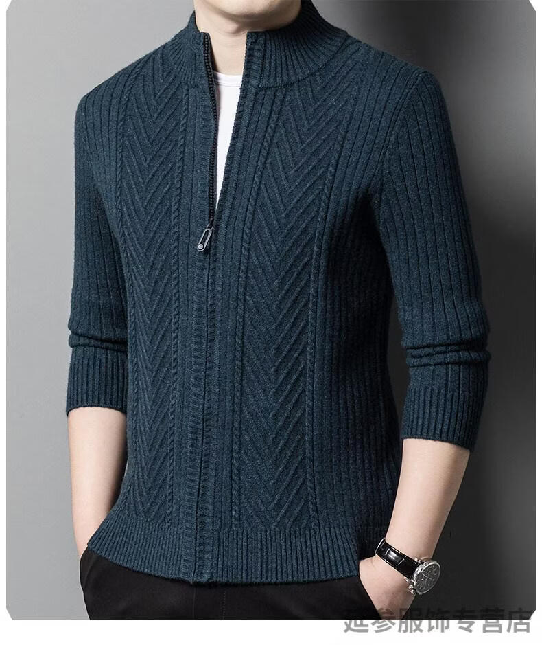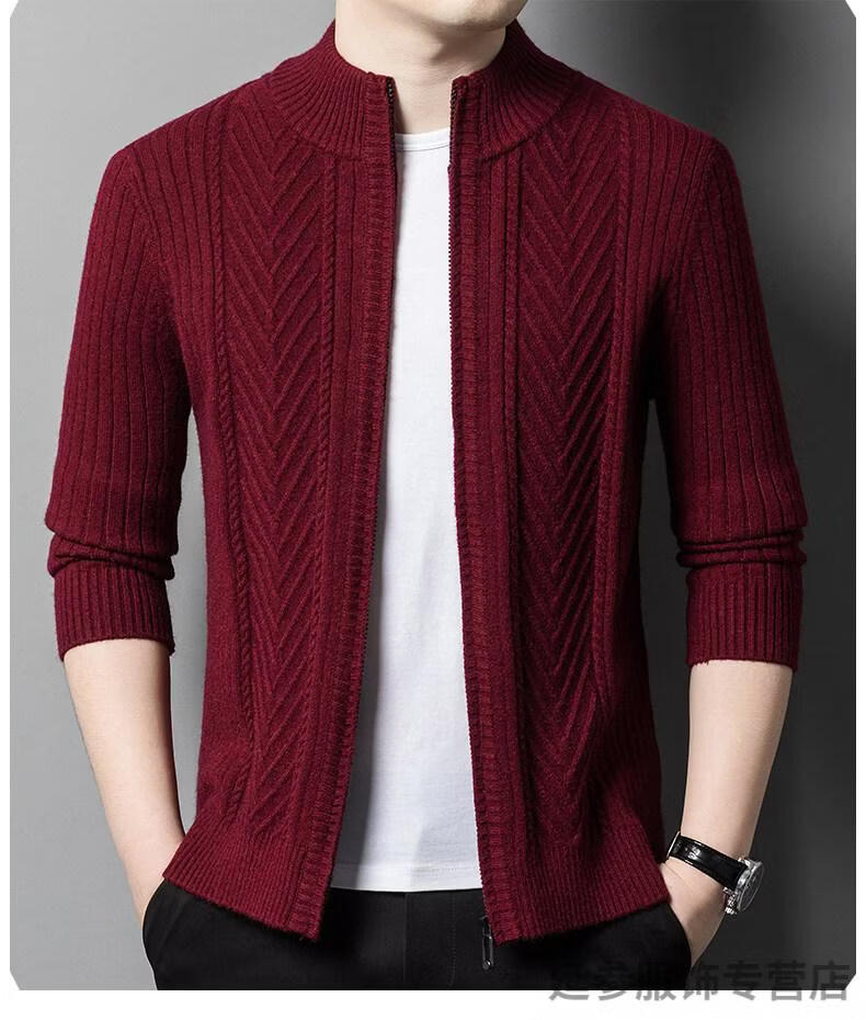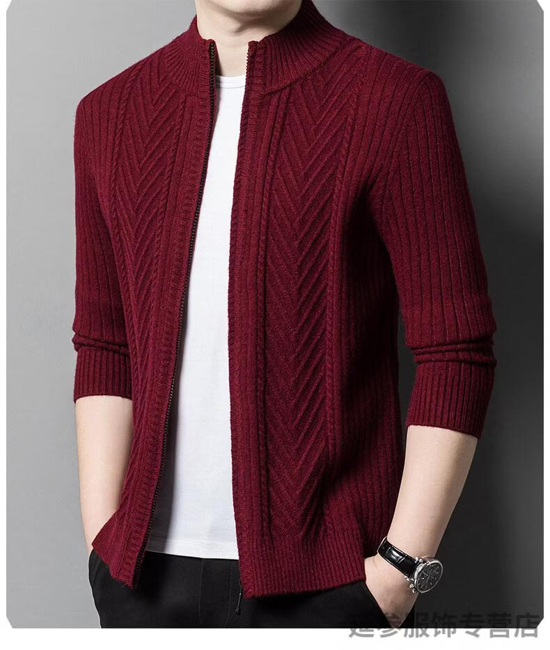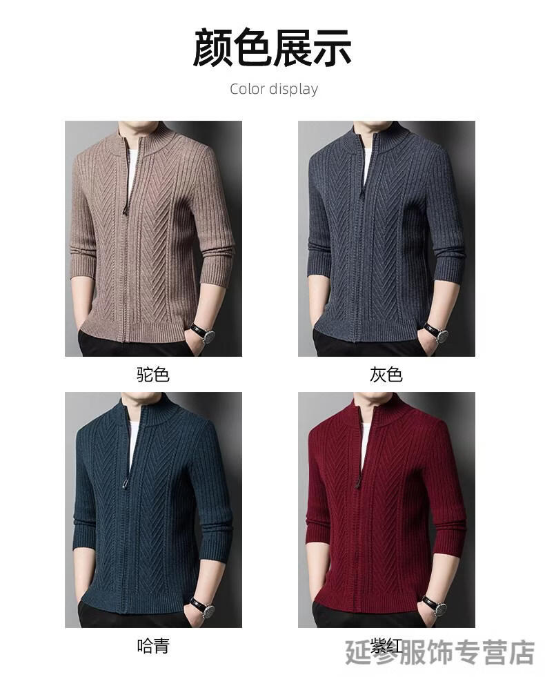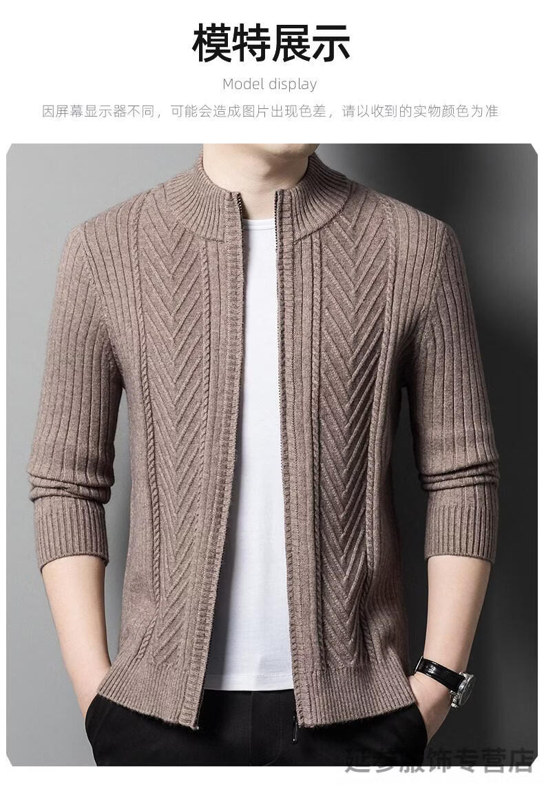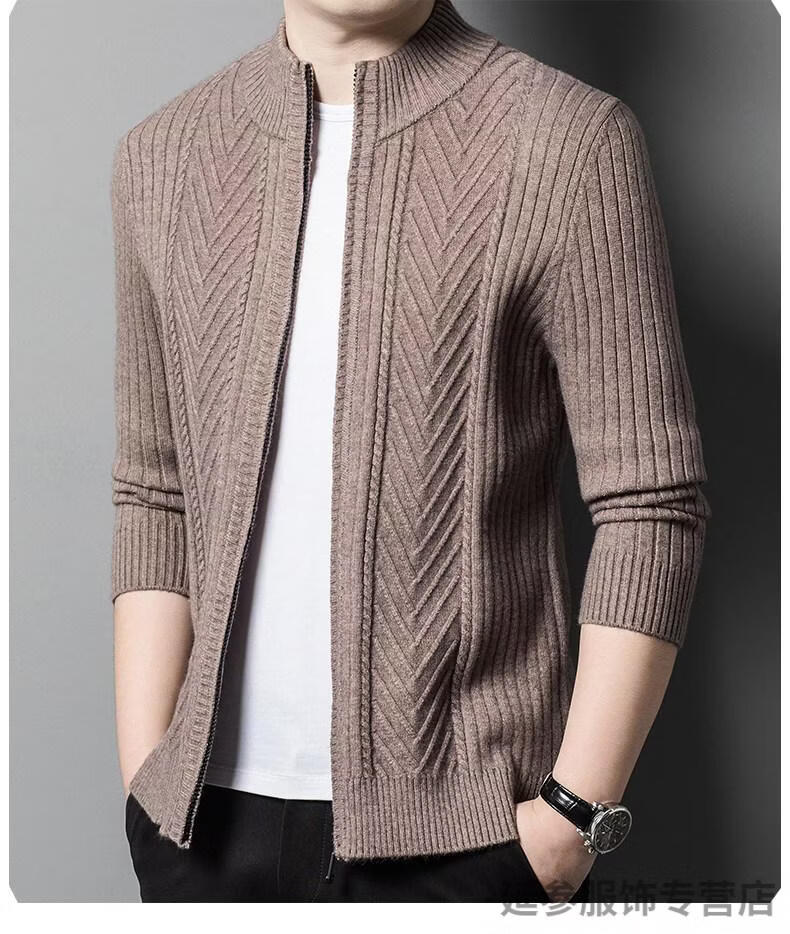 K-Boxing men's autumn and winter wool sweater knitted cardigan sweater stand collar zipper jacquard middle-aged dad casual jacket camel M 165