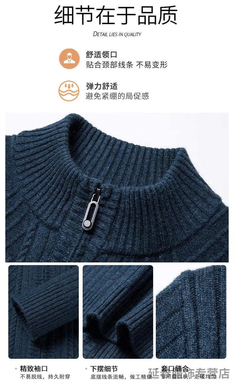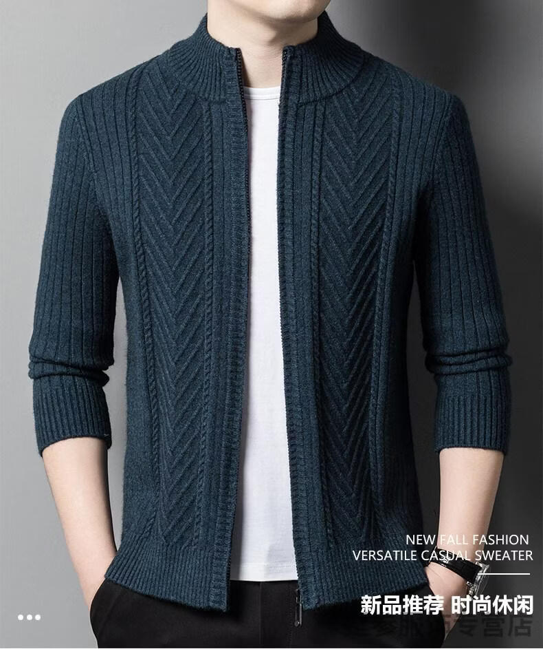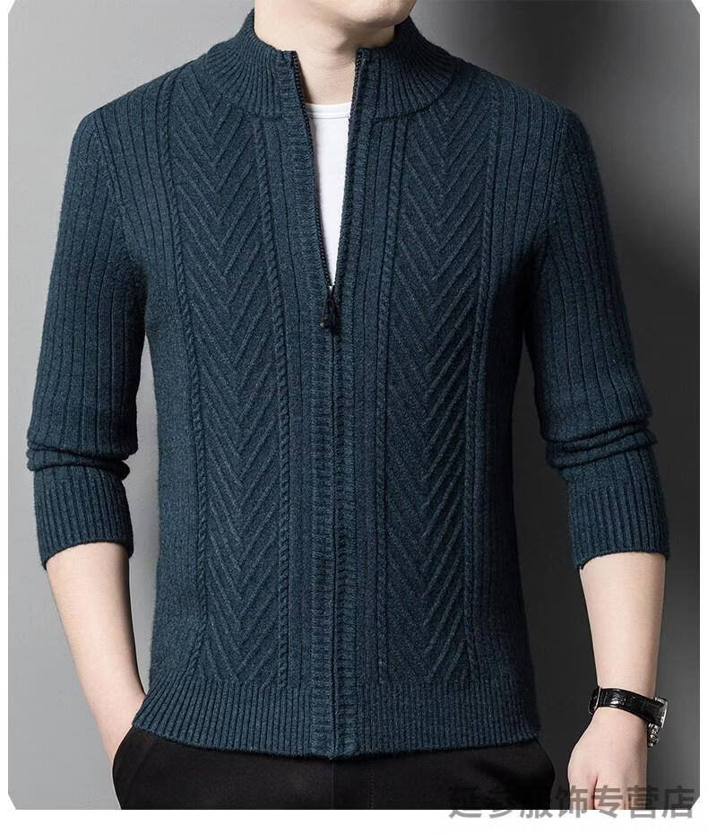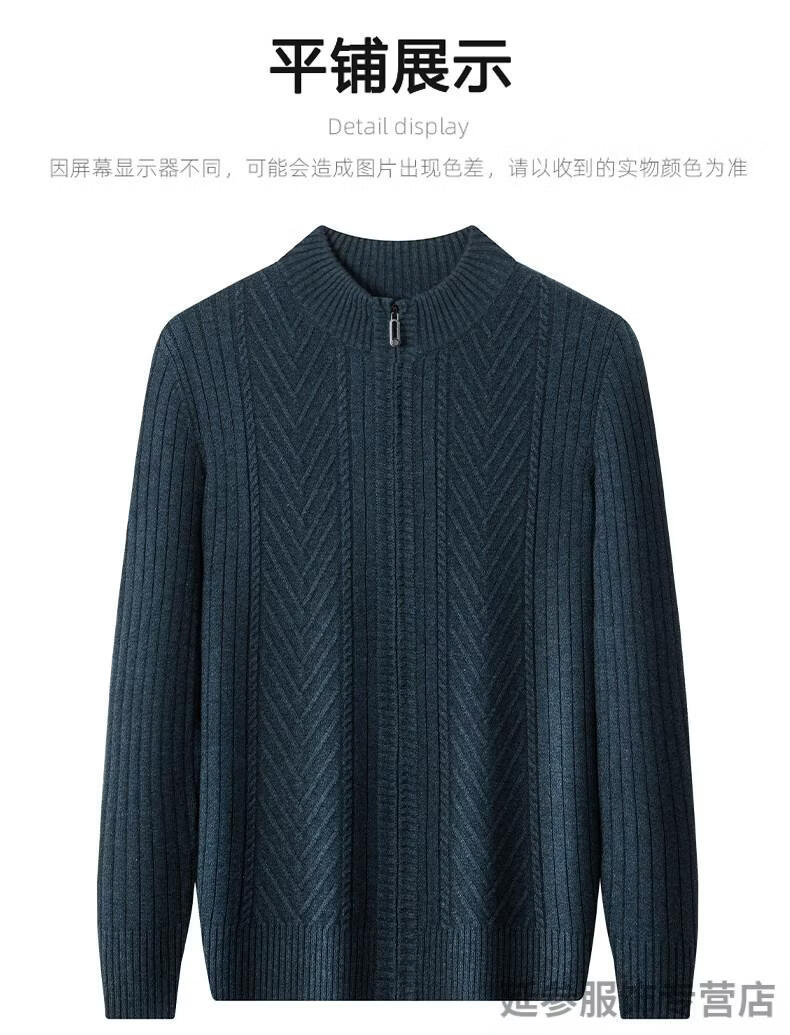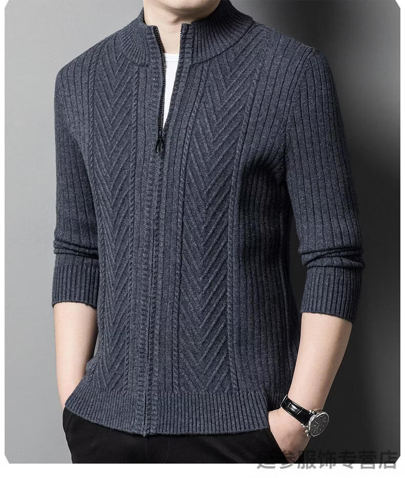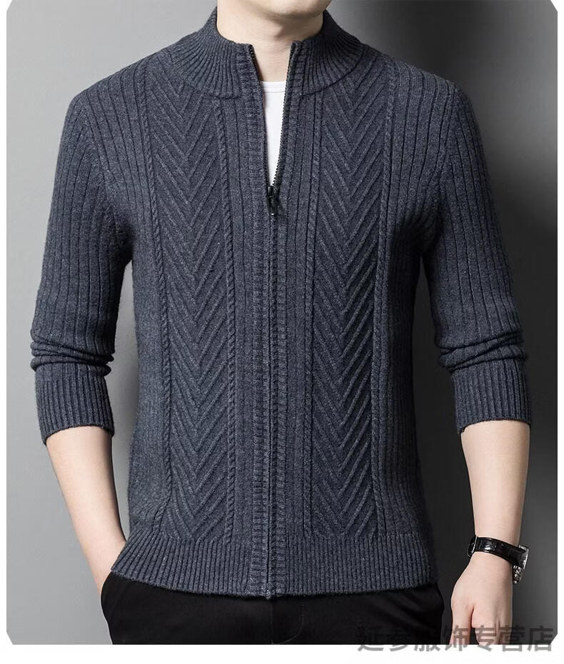 K-Boxing men's autumn and winter wool sweater knitted cardigan sweater stand collar zipper jacquard middle-aged dad casual jacket camel M 165