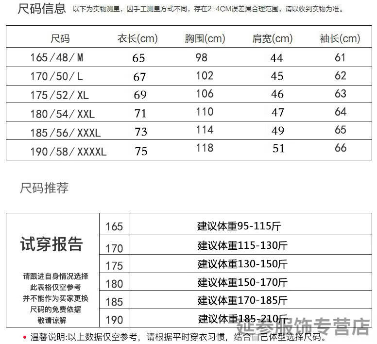China (cm) 165 / 88-90 170 / 96-98 175 / 108-110 180 / 118-122 185 / 126-130