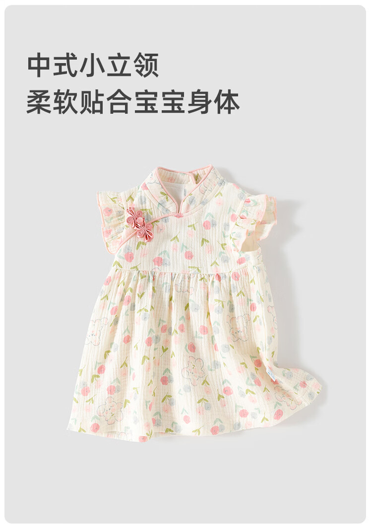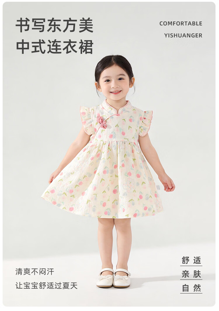 Yishuang children's baby summer cheongsam dress, fashionable girl's Chinese style princess dress, baby gauze dress, little girl's summer dress, Flowers Tutu 100