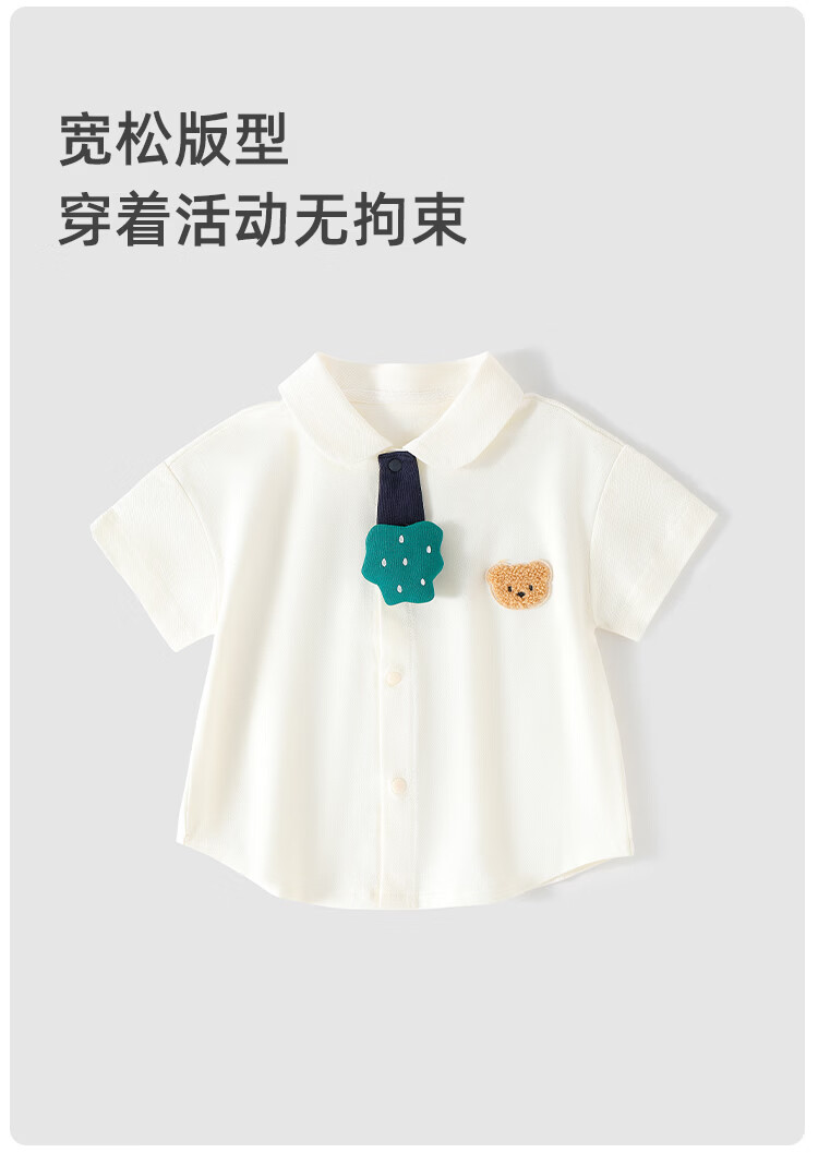 Yishuang'er baby clothes casual short-sleeved shirt baby super good-looking summer thin shirt boys girls children's tops trendy apricot bear 120