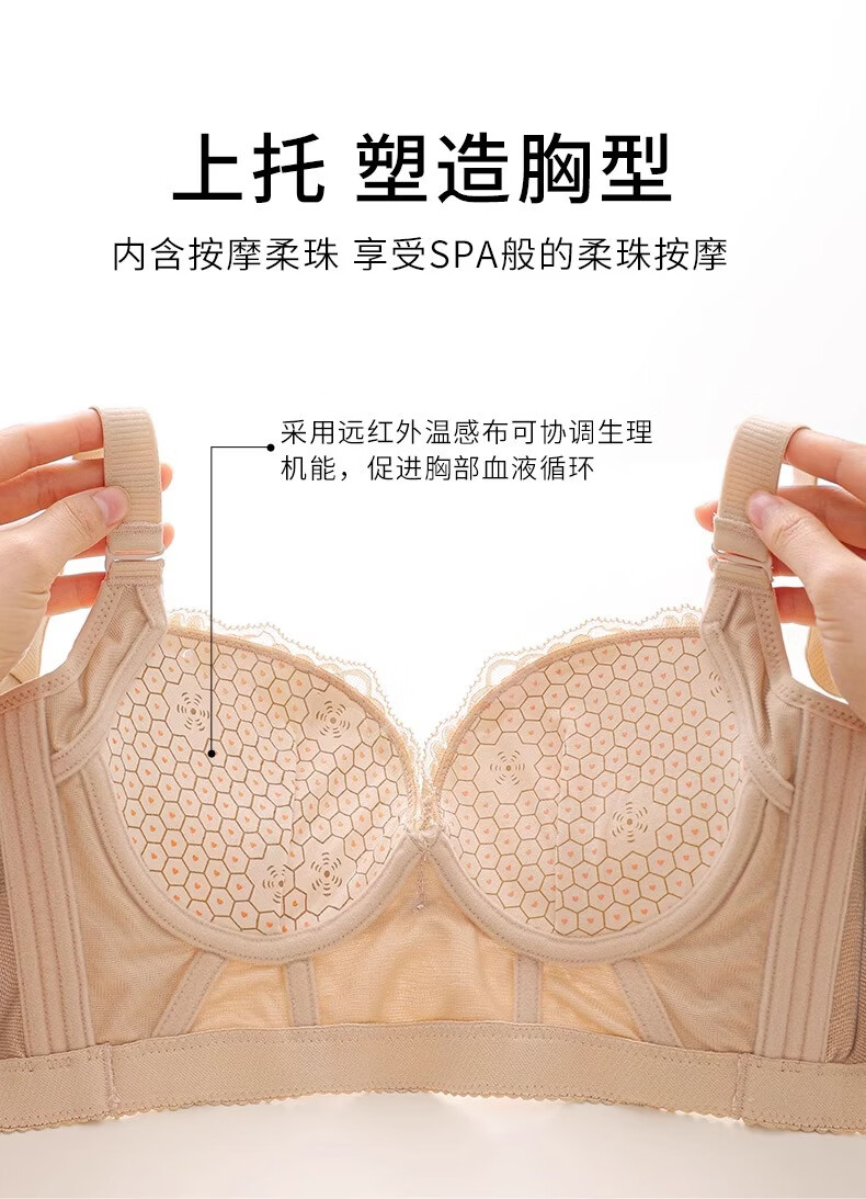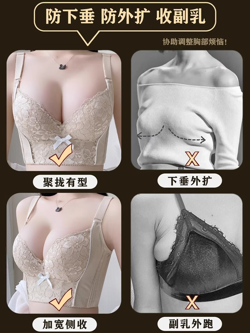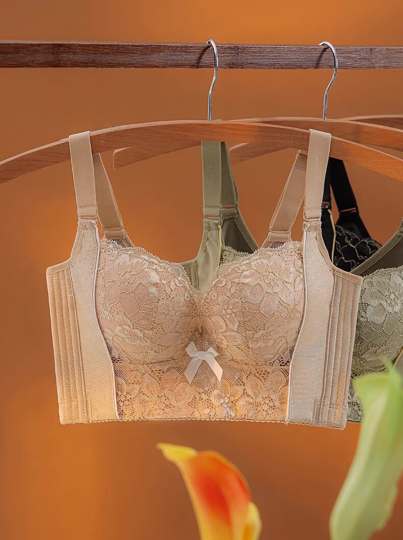 MiiOW Beauty Salon Adjustable Underwear Women's Small Breast Gathering Secondary Breast Shaping Anti-Sagging Six-Breasted Bra Green 80B