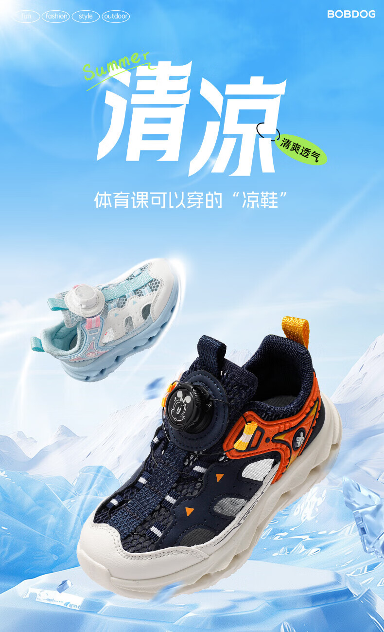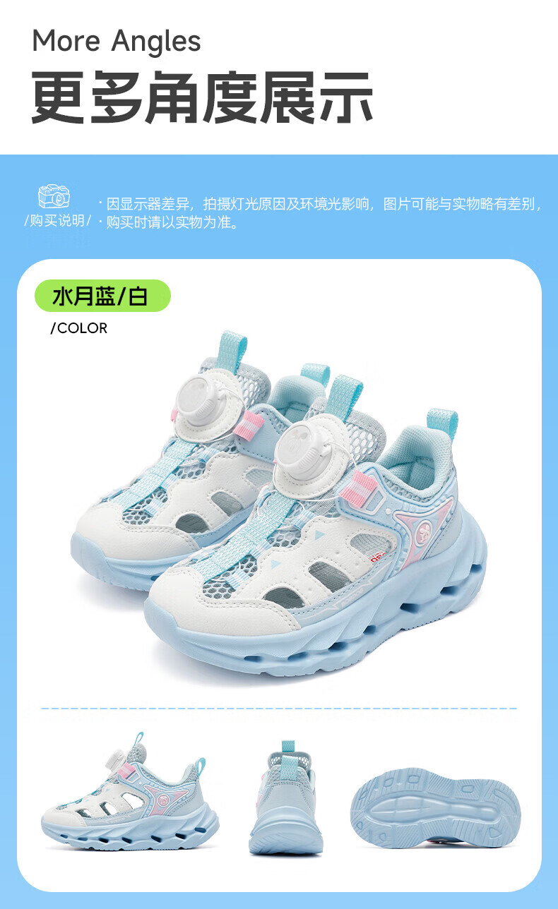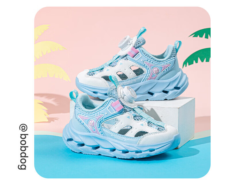 BOBDOG Children's Shoes Boys' Frame Shoes 2026 Summer New Boys' Toe-Toe Sandals Summer Children's Shoes Water Moon Blue/White 28 Suitable for Feet Length 17.0CM