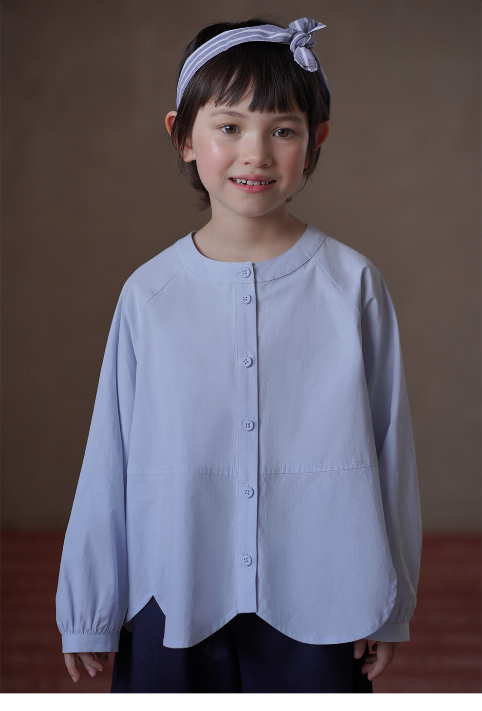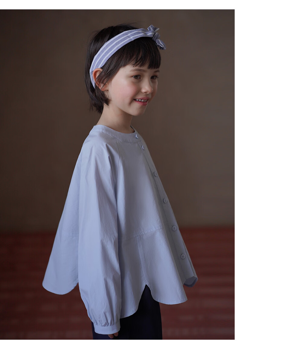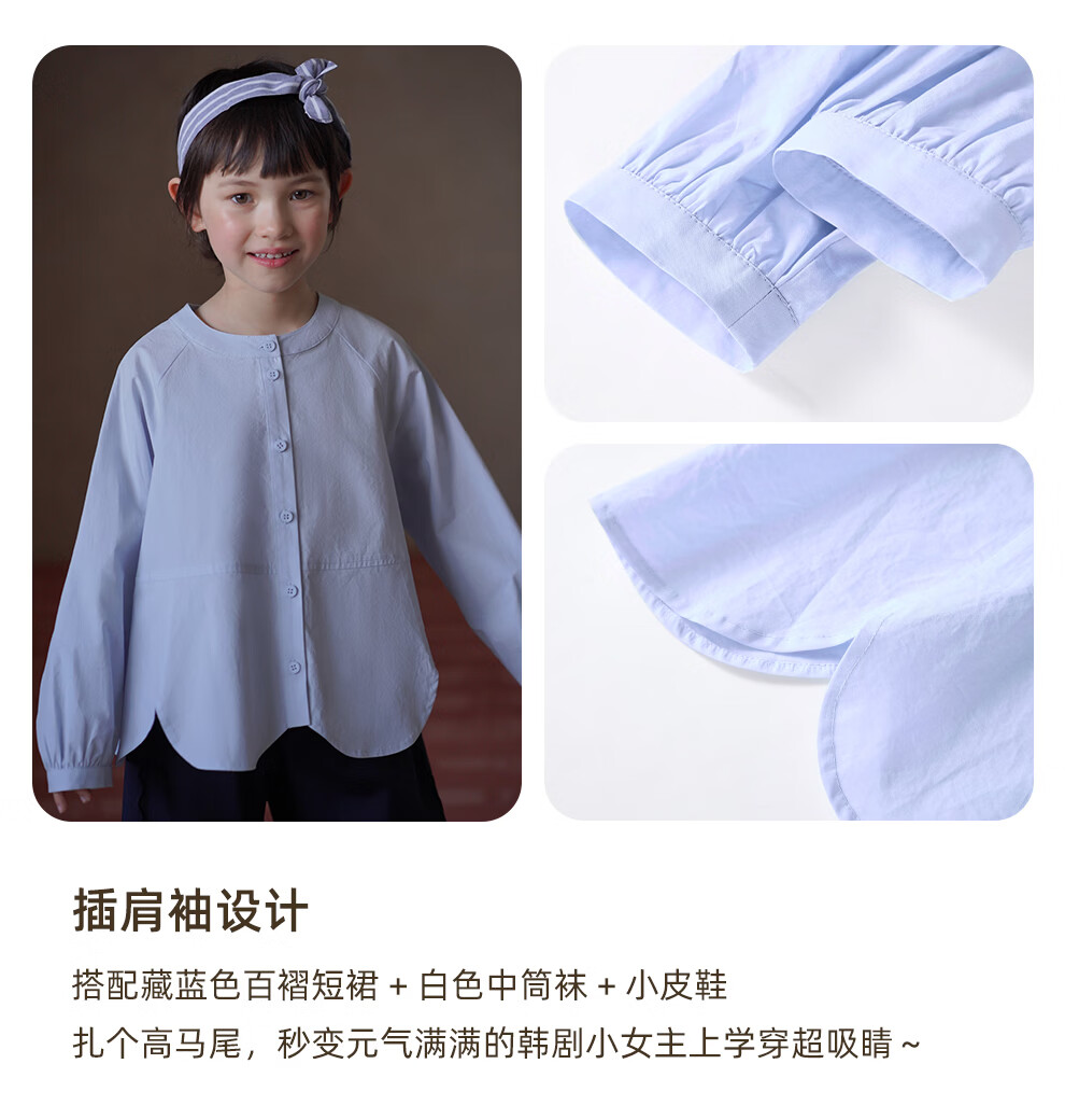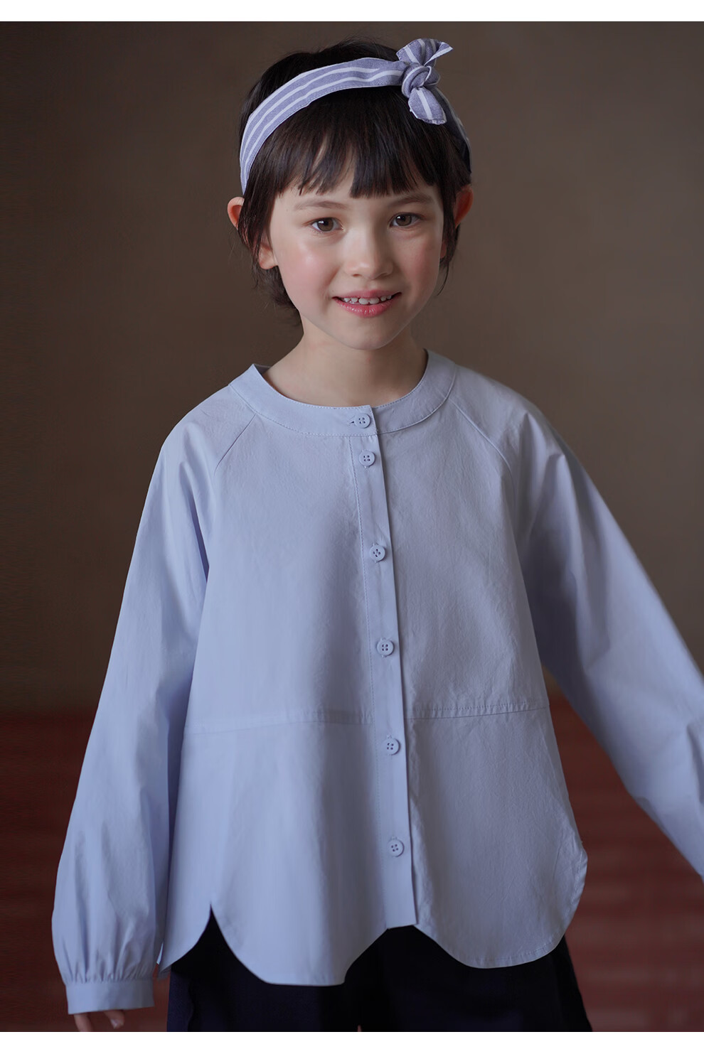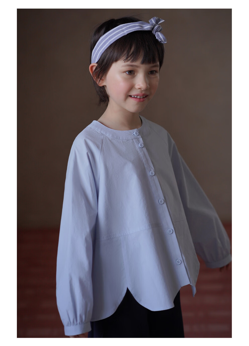 Haqi Children's Clothing Spring Korean Style Loose Cotton Shirt Girls Round Neck Top Girls Spring Clothing 2026 New Blue 150