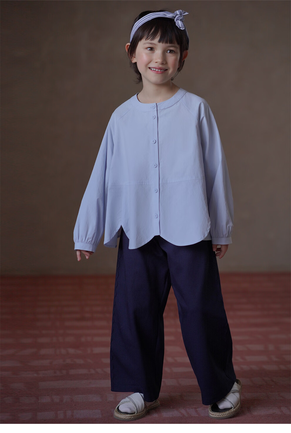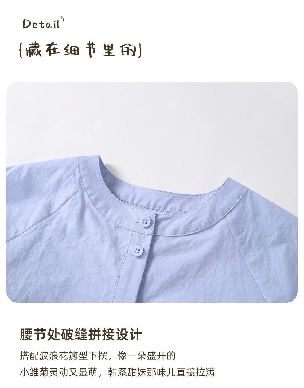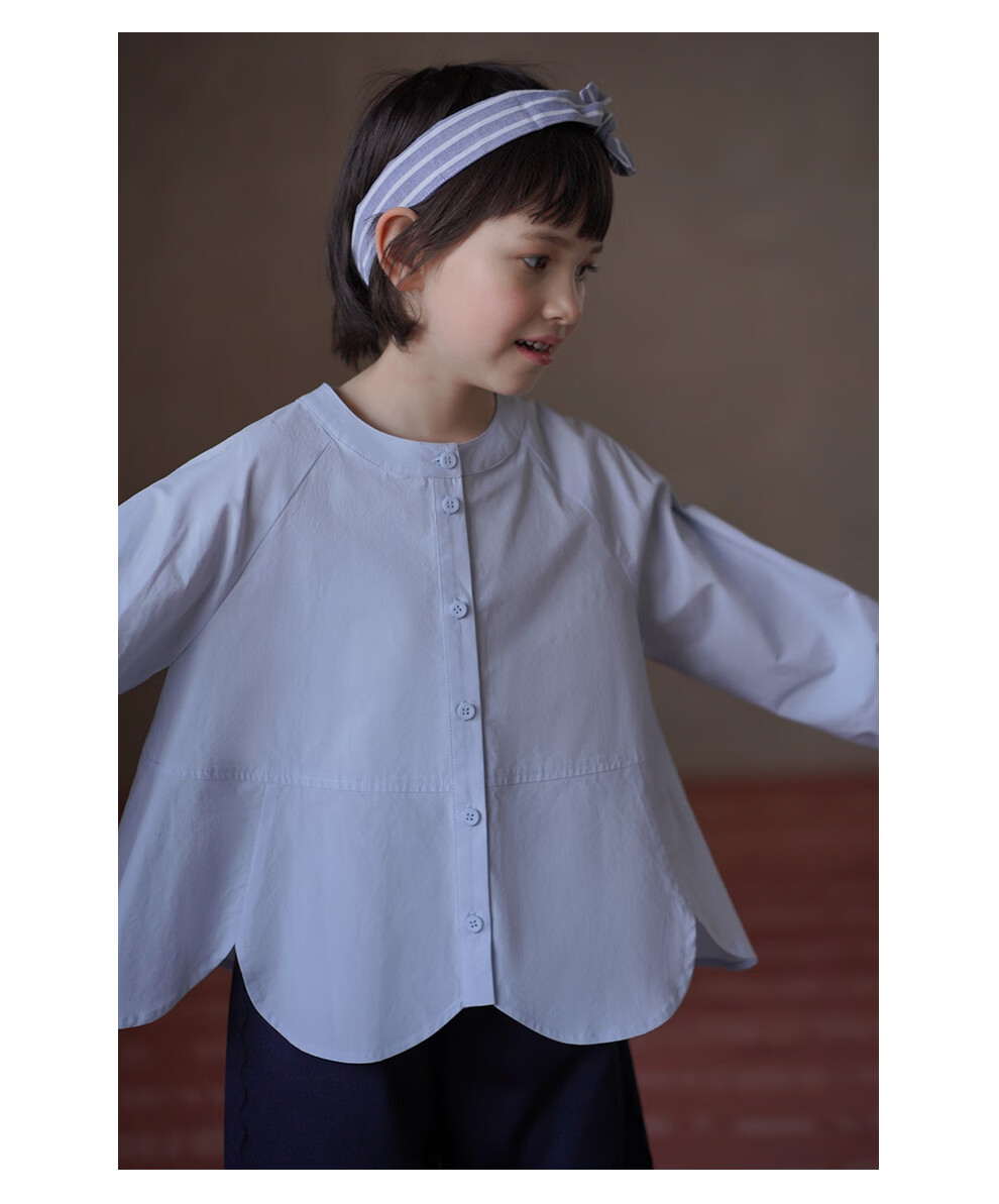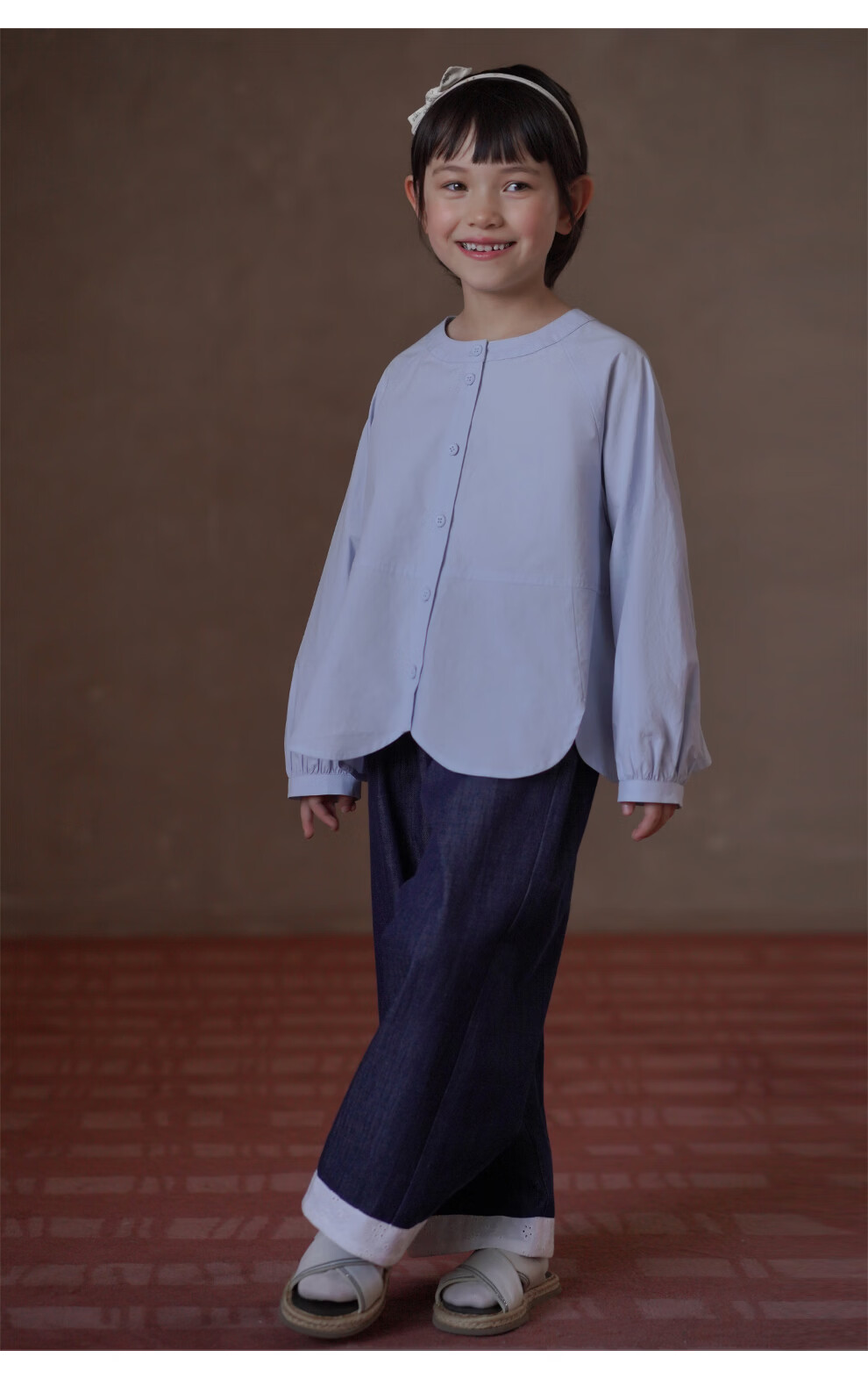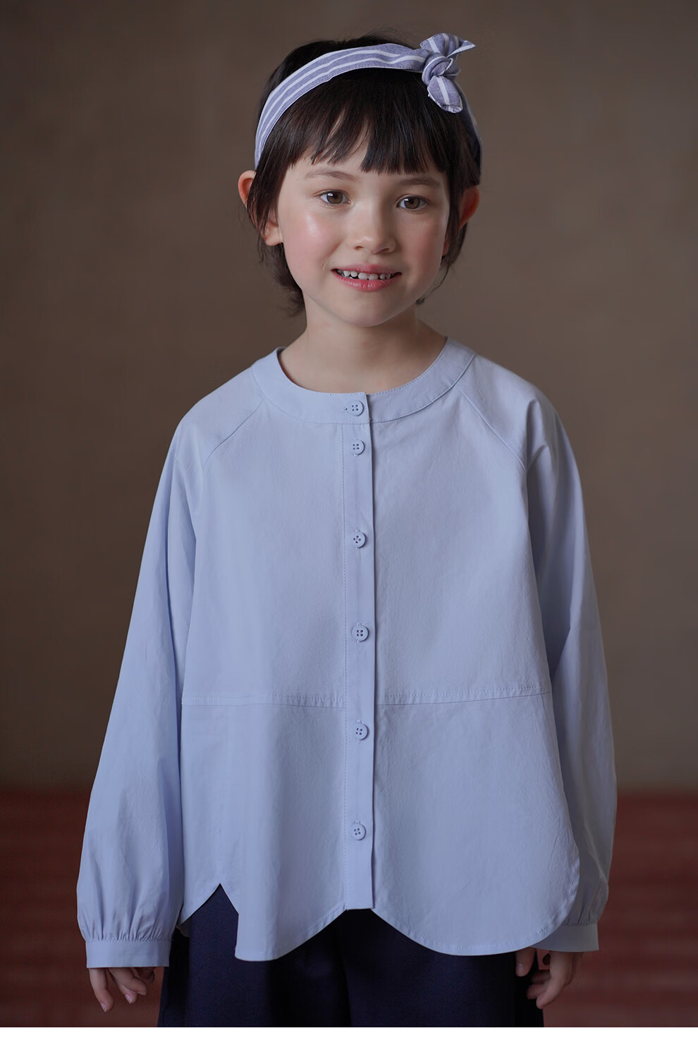 Haqi Children's Clothing Spring Korean Style Loose Cotton Shirt Girls Round Neck Top Girls Spring Clothing 2026 New Blue 150
