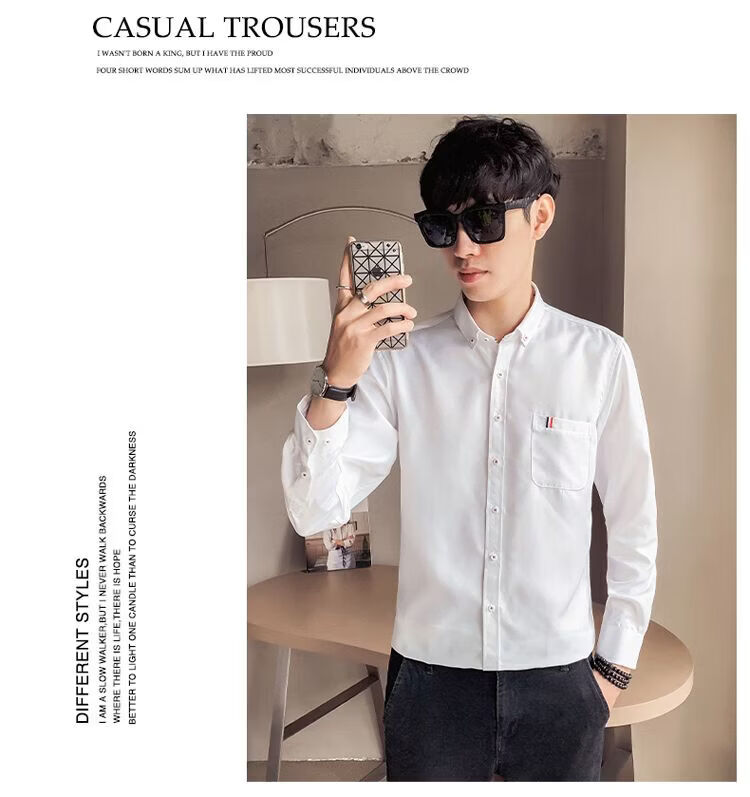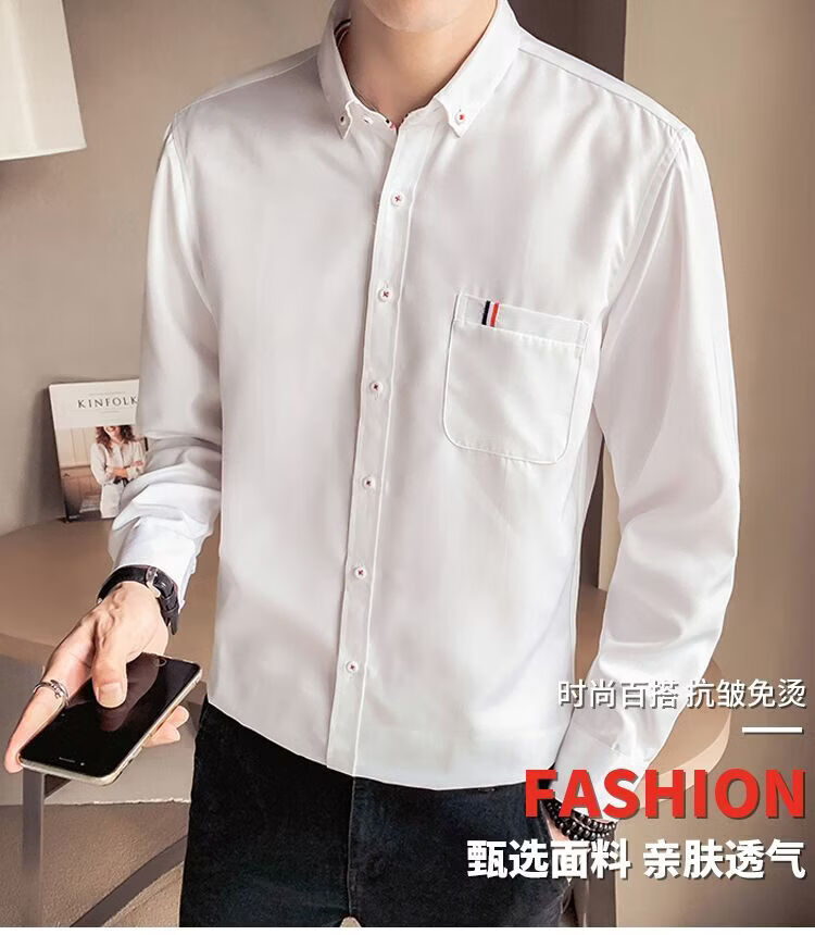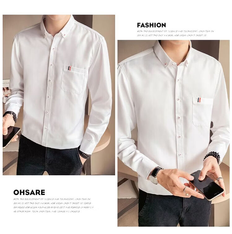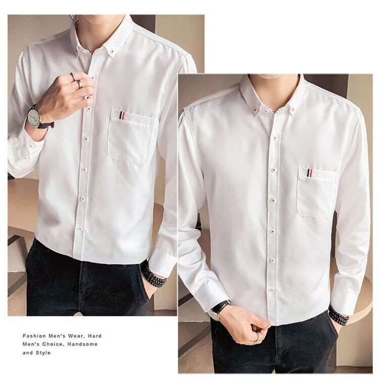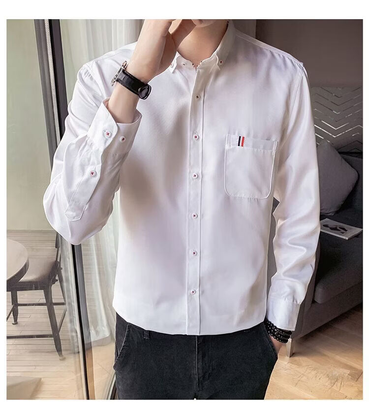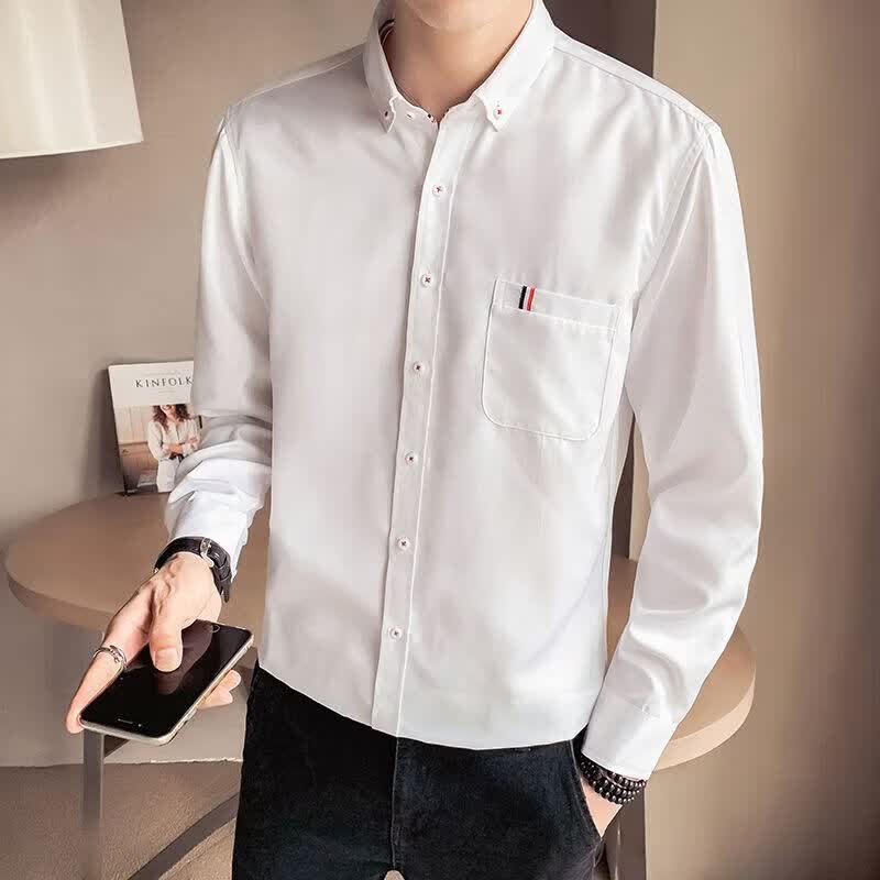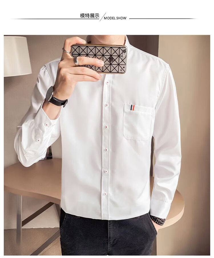 Playboy shirt men's spring and autumn Korean style long-sleeved trendy slim youth student shirt fashion versatile solid color inch shirt no ironing white M
