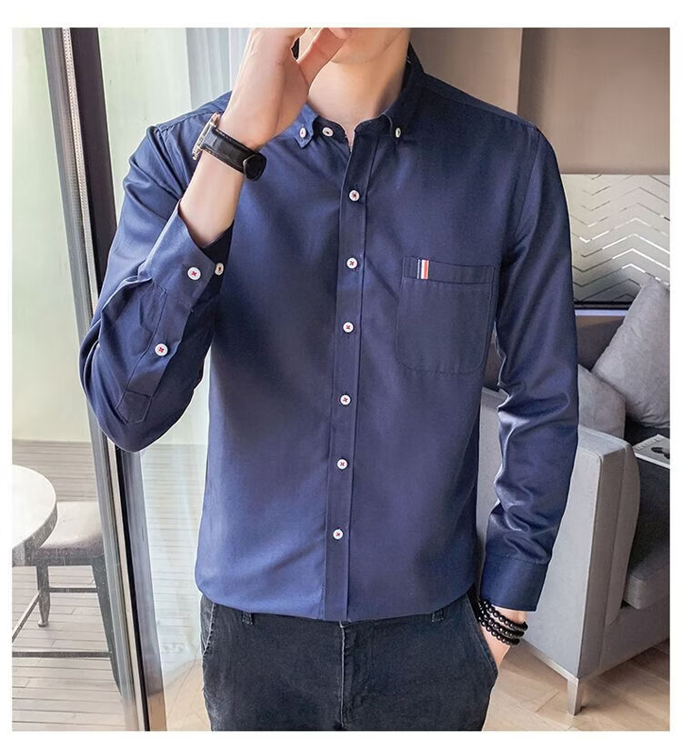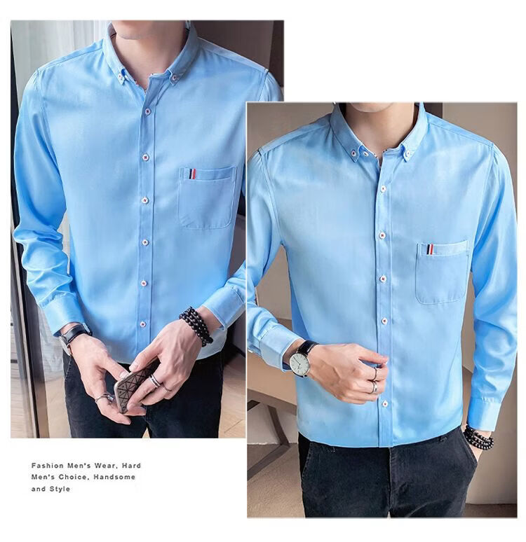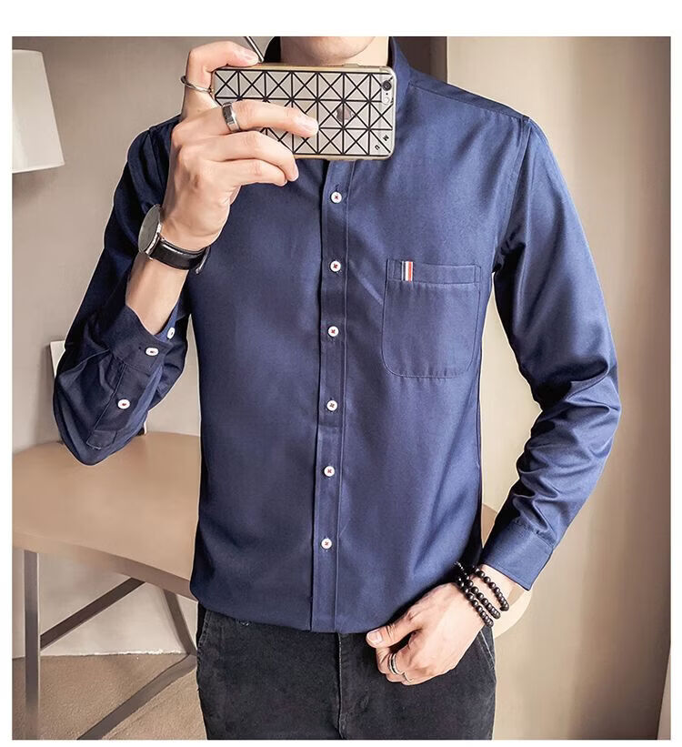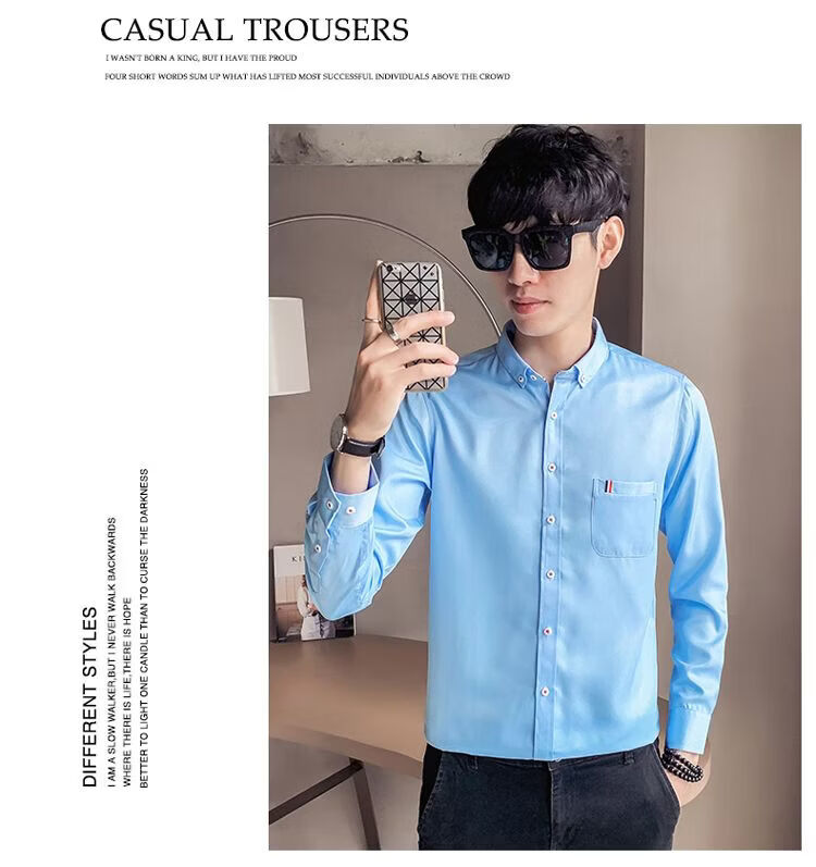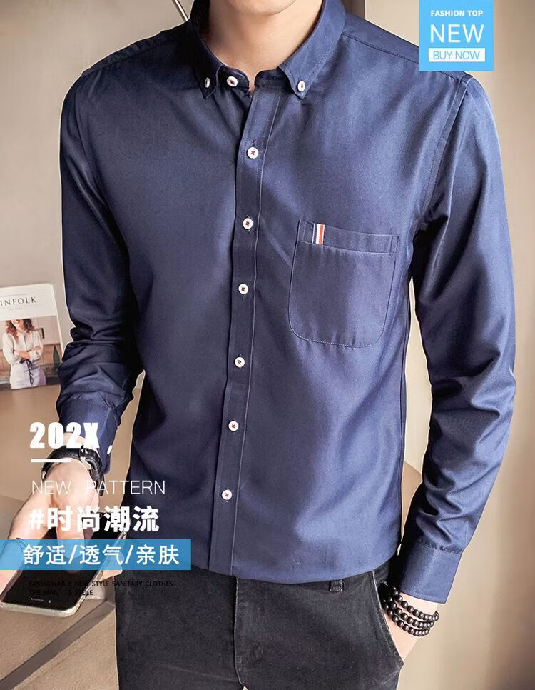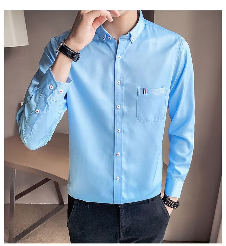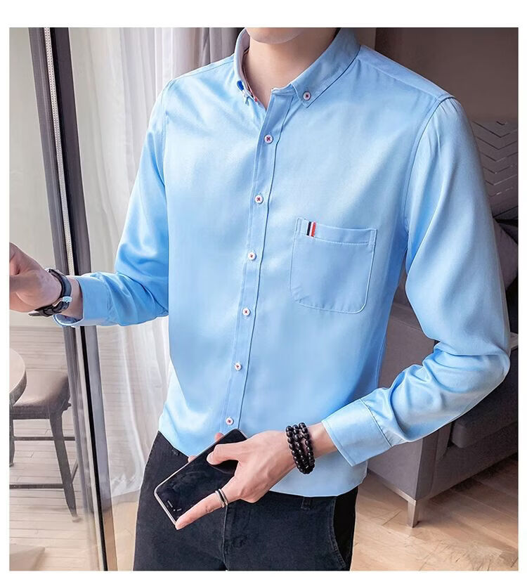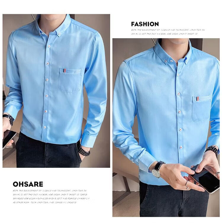 Playboy shirt men's spring and autumn Korean style long-sleeved trendy slim youth student shirt fashion versatile solid color inch shirt no ironing white M