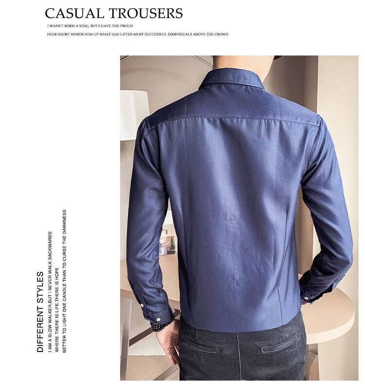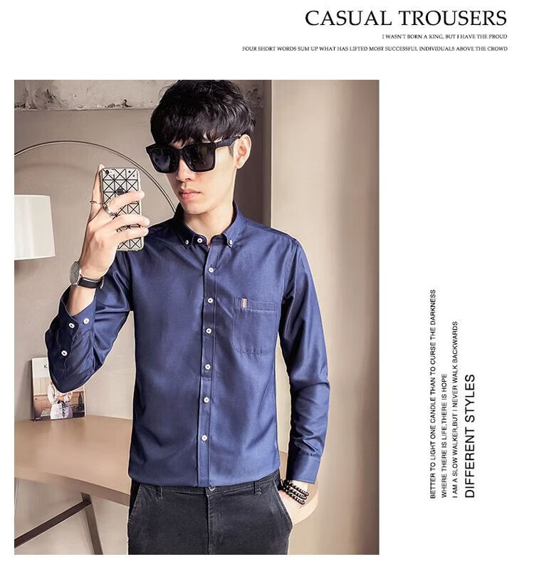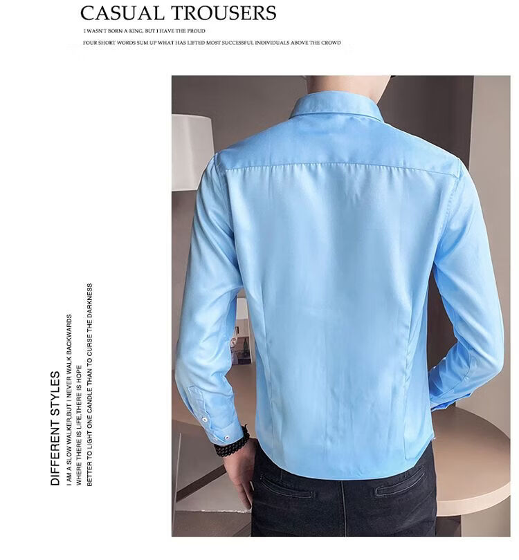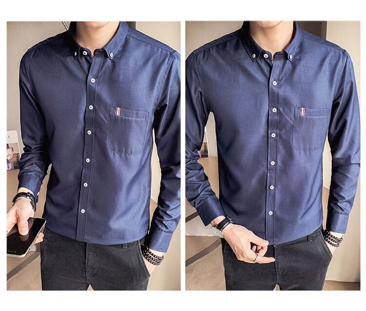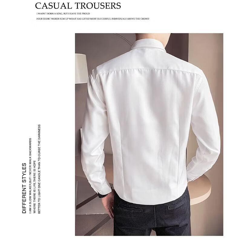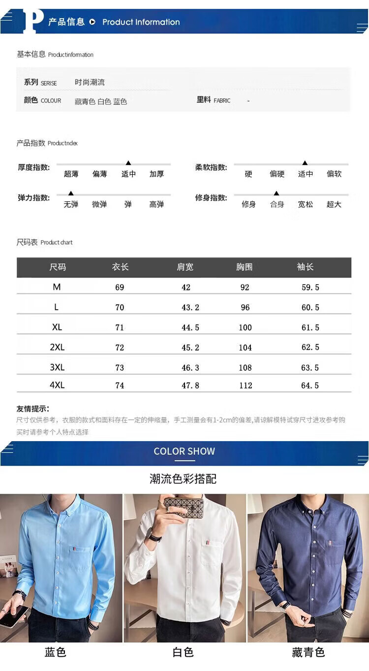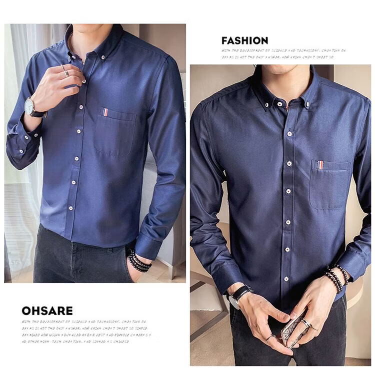Playboy shirt men's spring and autumn Korean style long-sleeved trendy slim youth student shirt fashion versatile solid color inch shirt no ironing white M