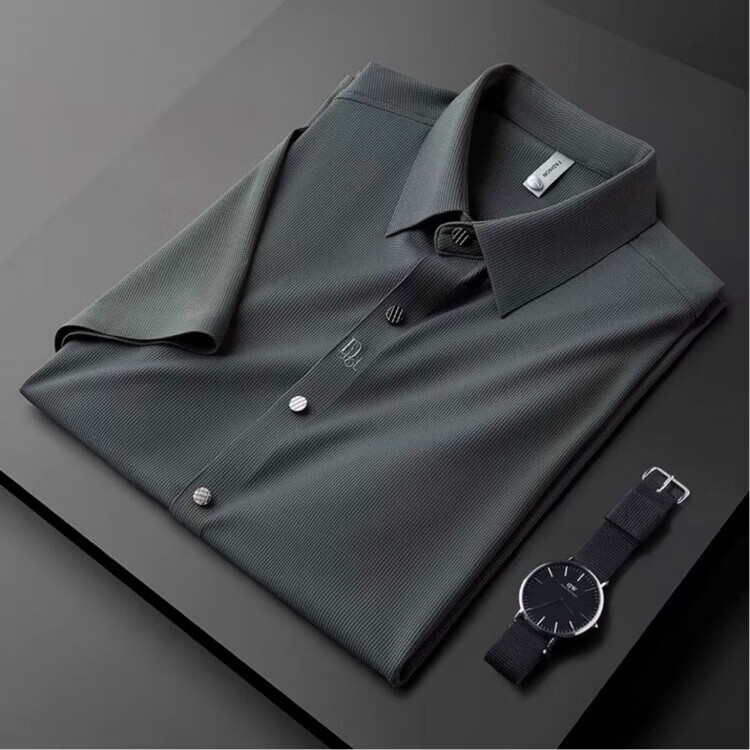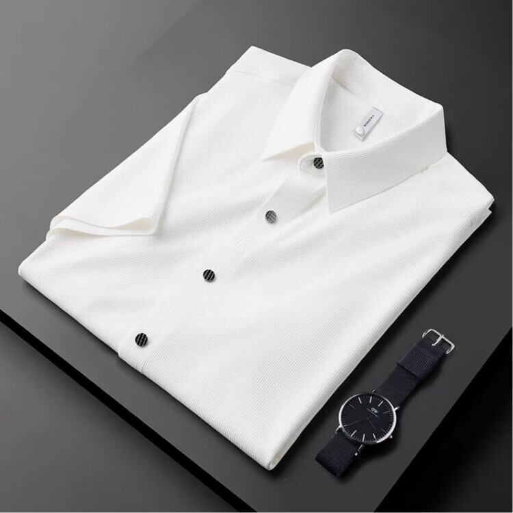 ROMON 2026 Summer Stretchy Soft Men's Long and Short Sleeve Anti-Wrinkle Spring and Autumn Business Seamless Casual Shirt No-Iron and Easy to Style White 4XL 166-180Jin Jin is equal to 0.5 kg