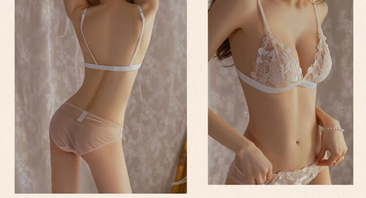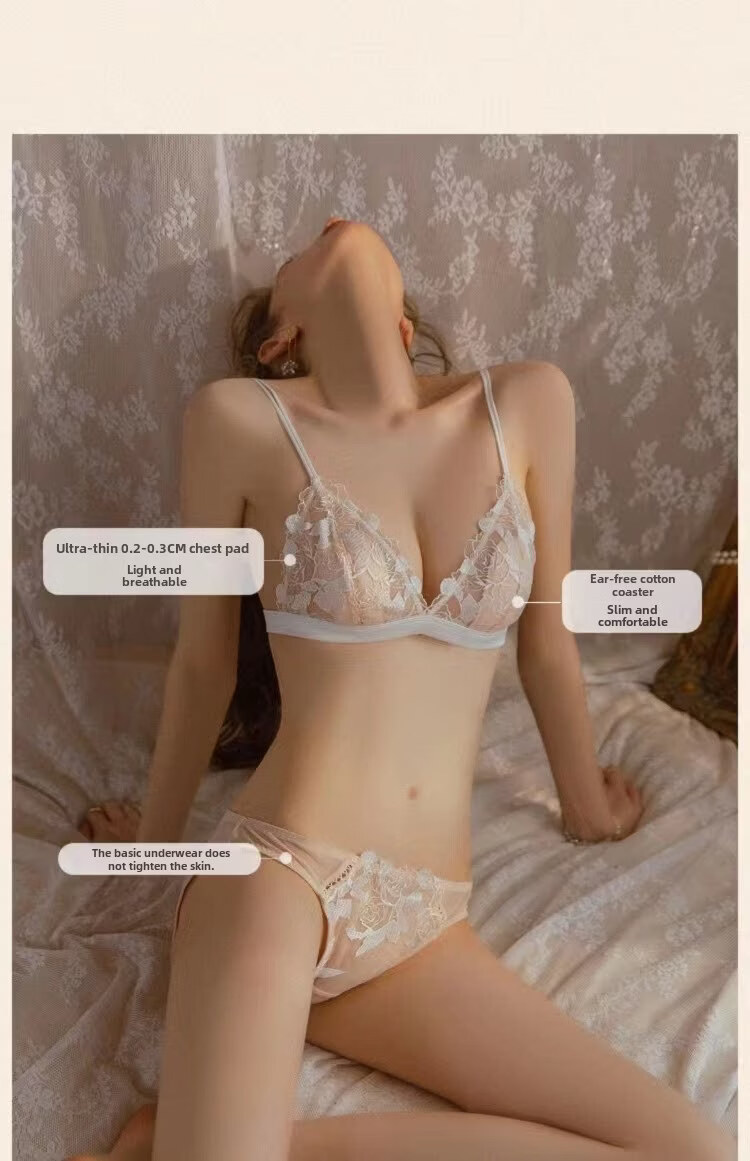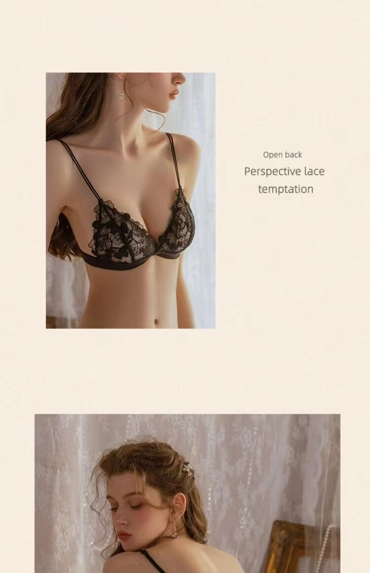 Agent Provocateur Light Luxury Brand Women's Underwear Feminine Summer Big Breasts Show Small No Wires Ultra-Thin Lace Triangular Cup Bra Black Suit 75C 34