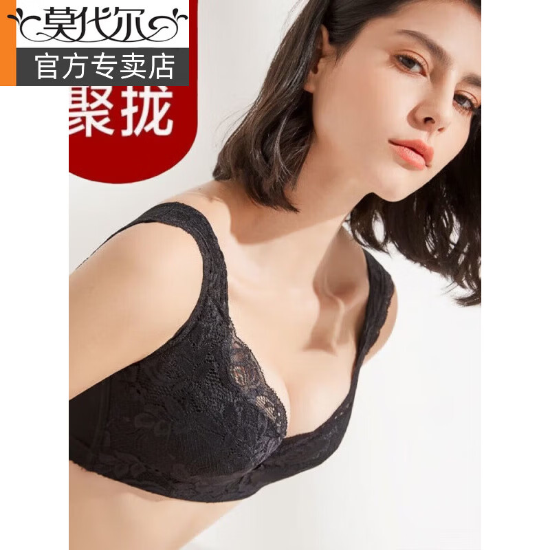 Modal beautiful back bra, adjustable breast-retracting bra, women's push-up thin anti-sagging bra with support and anti-expansion, no underwire, thin beautiful sleeves, black 70B x