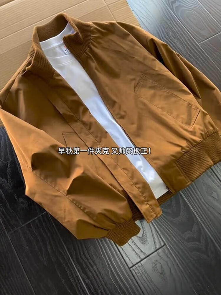 Woodpecker (TUCANO) American flight jacket men's spring fashion brand short baseball uniform heavy stiff work jacket brown XL (recommended 130-150Jin Jin equals 0.5 kg)