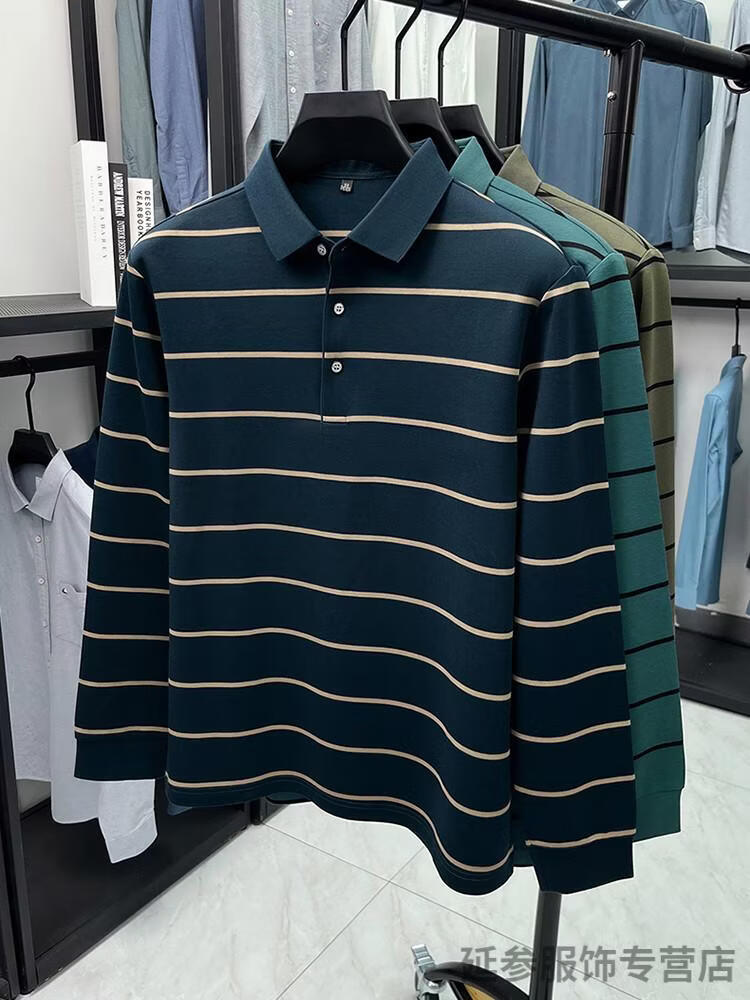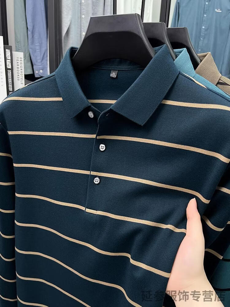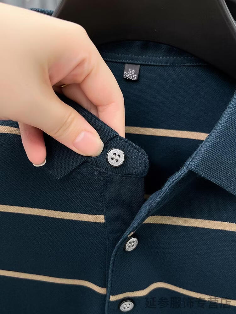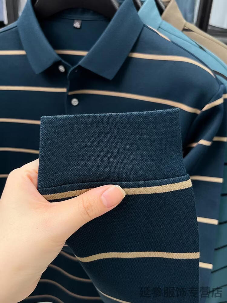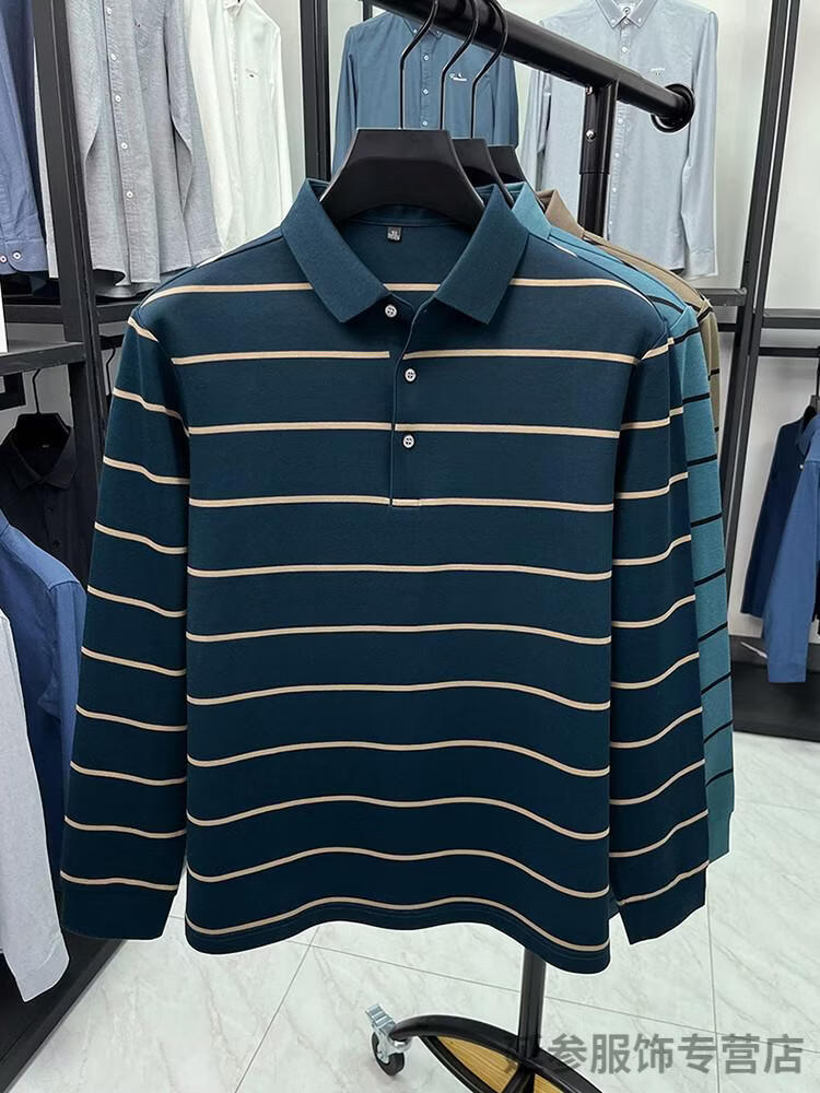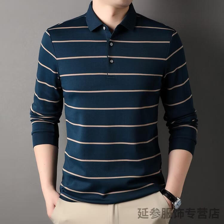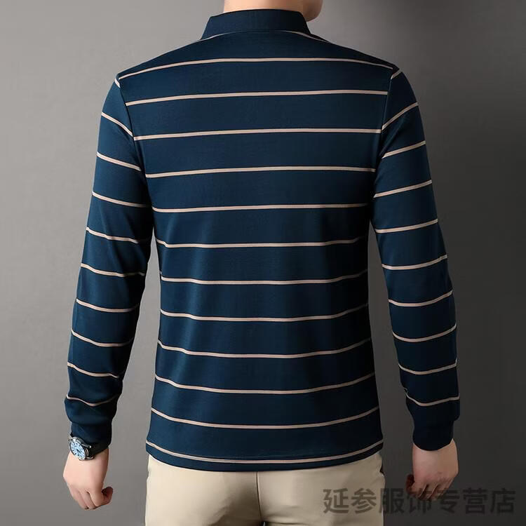 K-Boxing Men's (K-Boxing) mercerized cotton long-sleeved polo shirt men's striped lapel 2026 spring and autumn new middle-aged casual T-shirt dad wear navy blue M 48