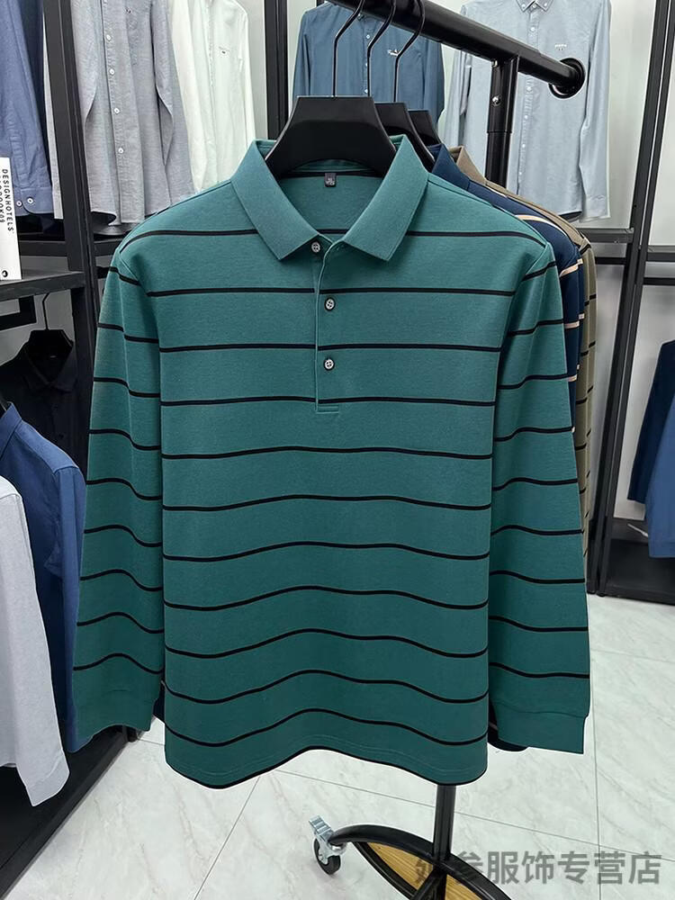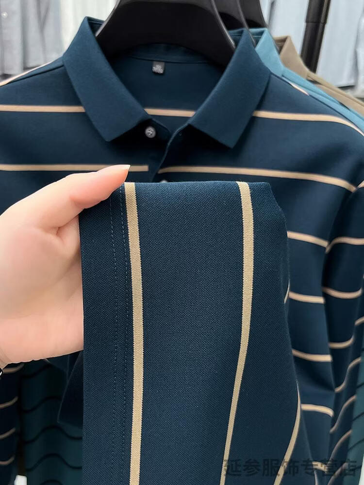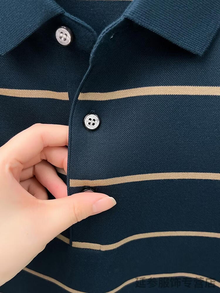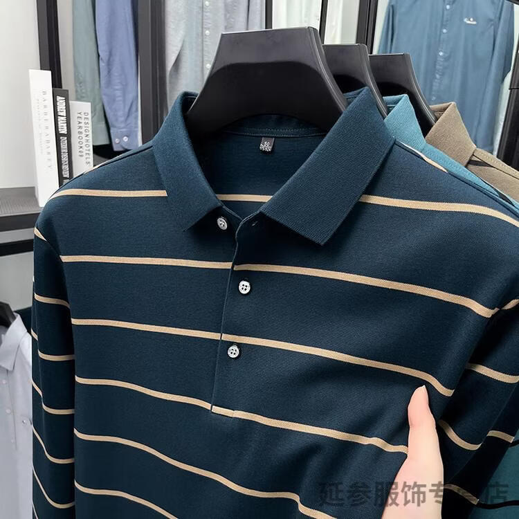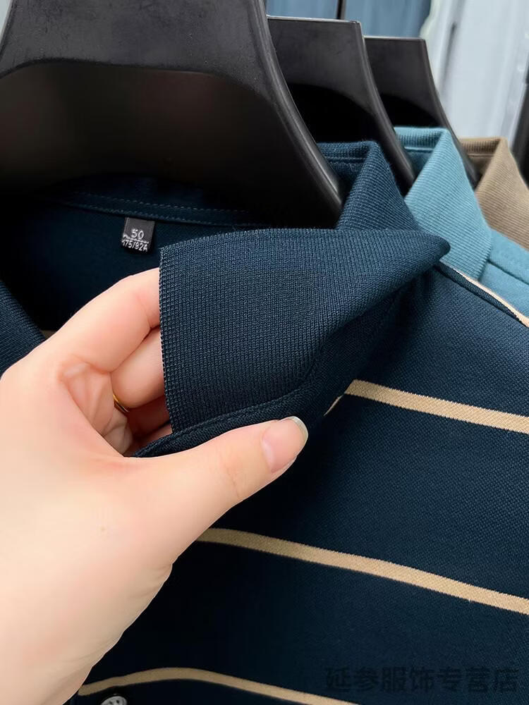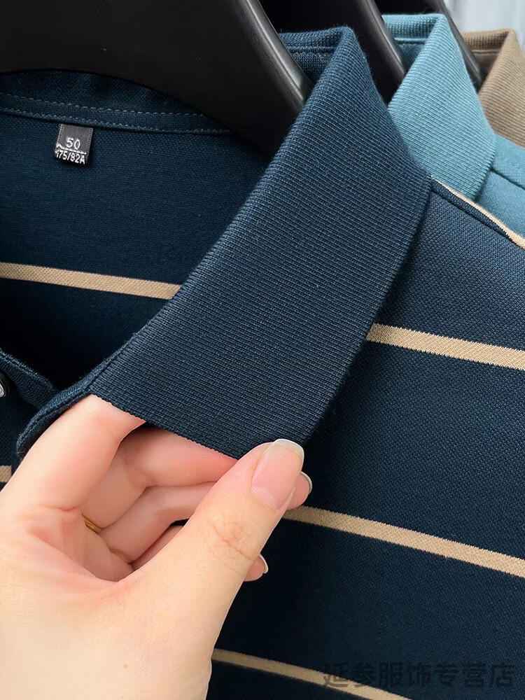 K-Boxing Men's (K-Boxing) mercerized cotton long-sleeved polo shirt men's striped lapel 2026 spring and autumn new middle-aged casual T-shirt dad wear navy blue M 48