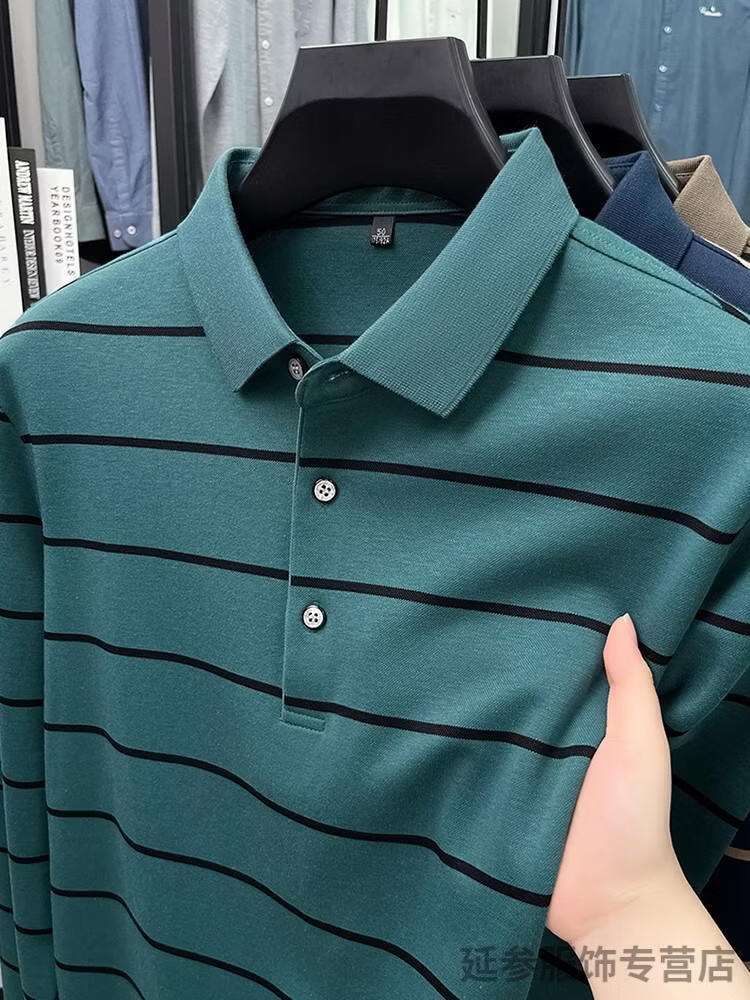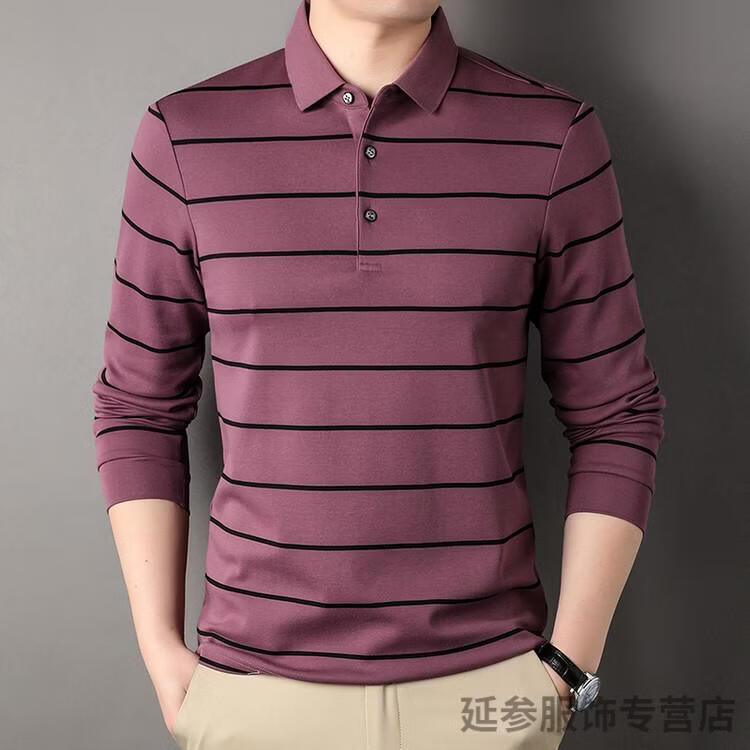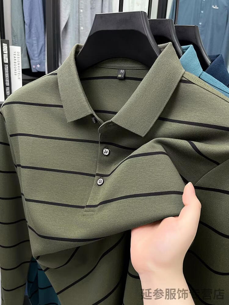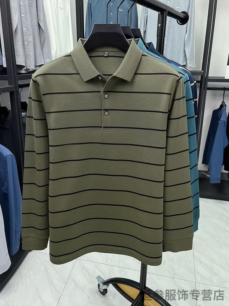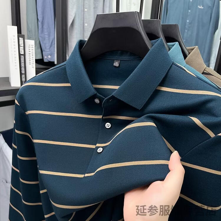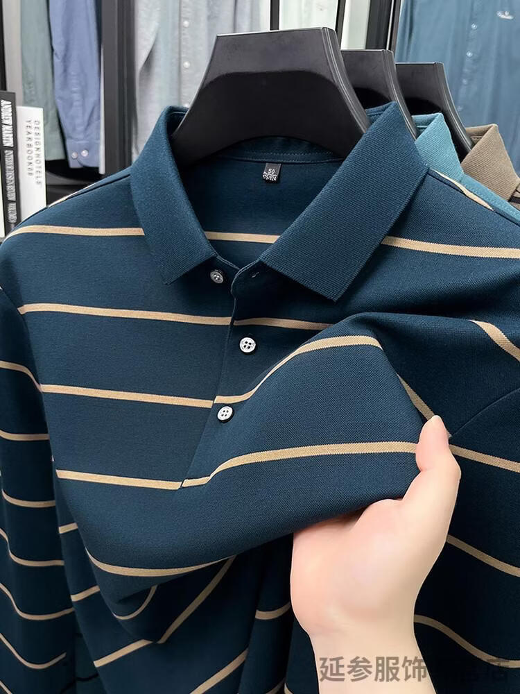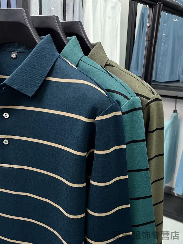K-Boxing Men's (K-Boxing) mercerized cotton long-sleeved polo shirt men's striped lapel 2026 spring and autumn new middle-aged casual T-shirt dad wear navy blue M 48