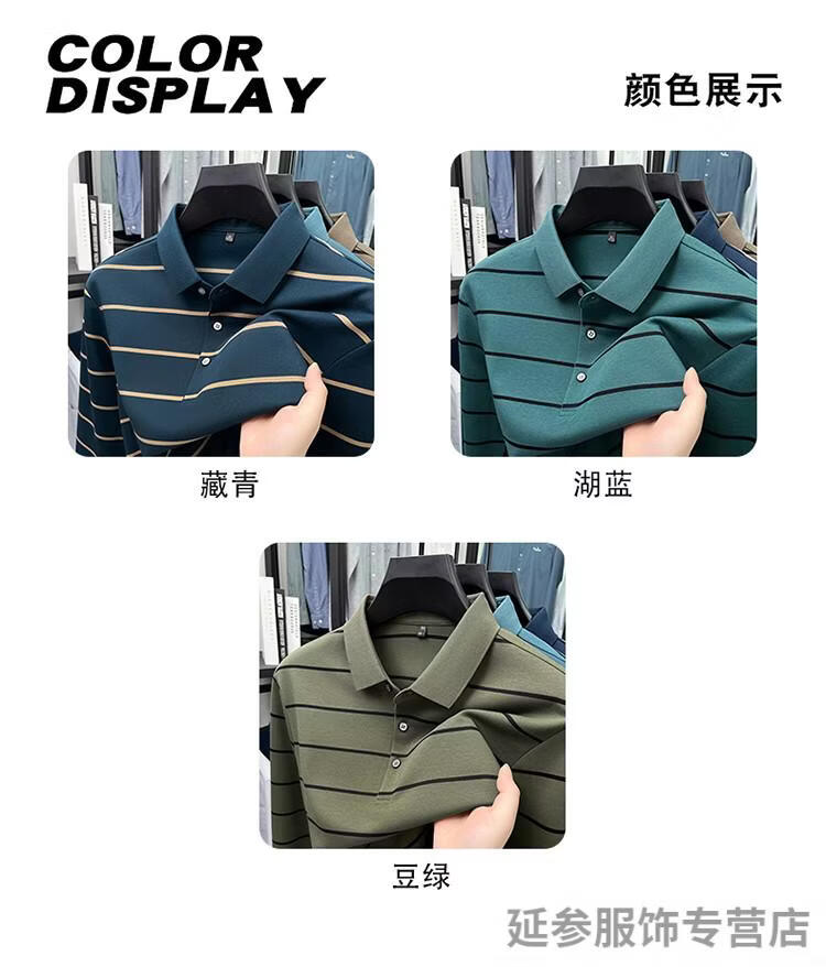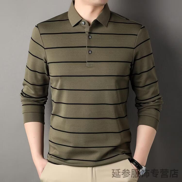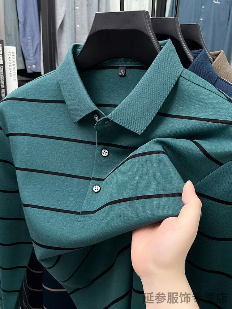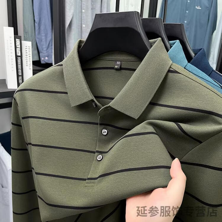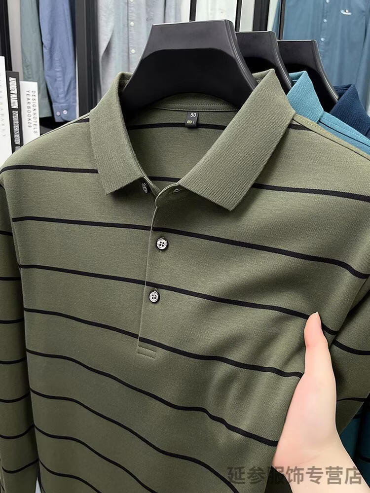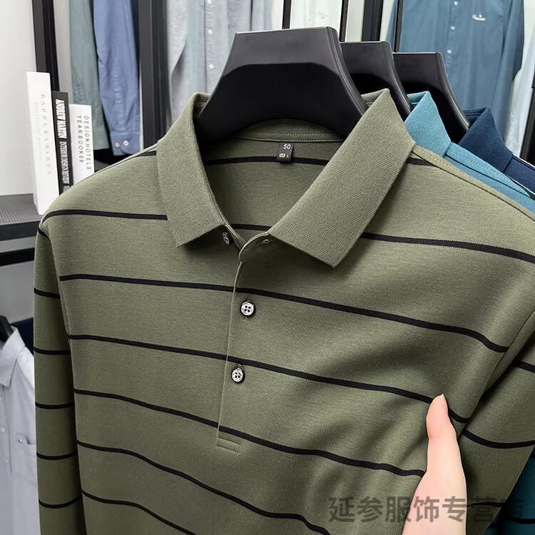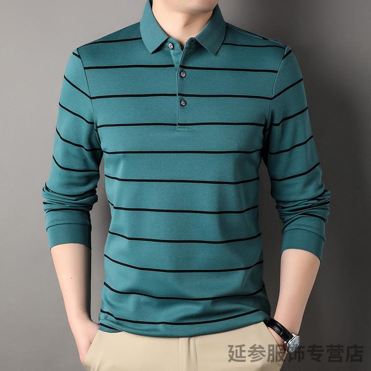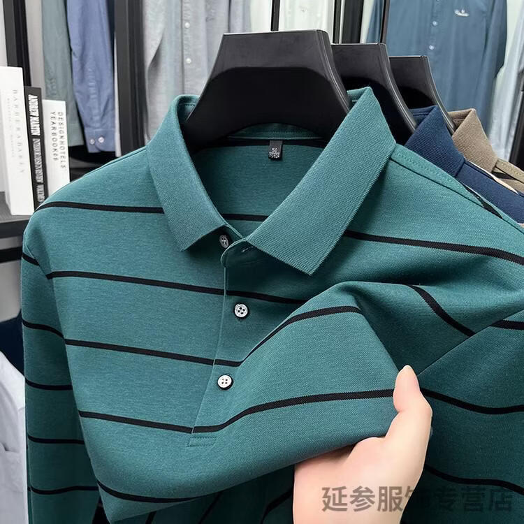 K-Boxing Men's (K-Boxing) mercerized cotton long-sleeved polo shirt men's striped lapel 2026 spring and autumn new middle-aged casual T-shirt dad wear navy blue M 48