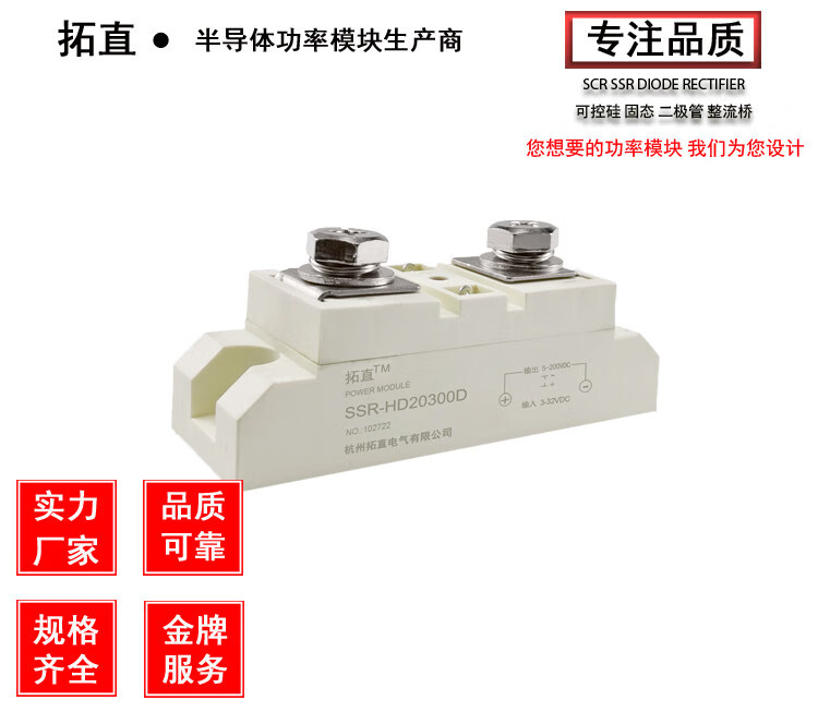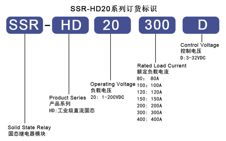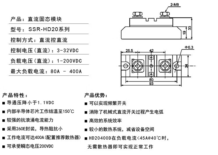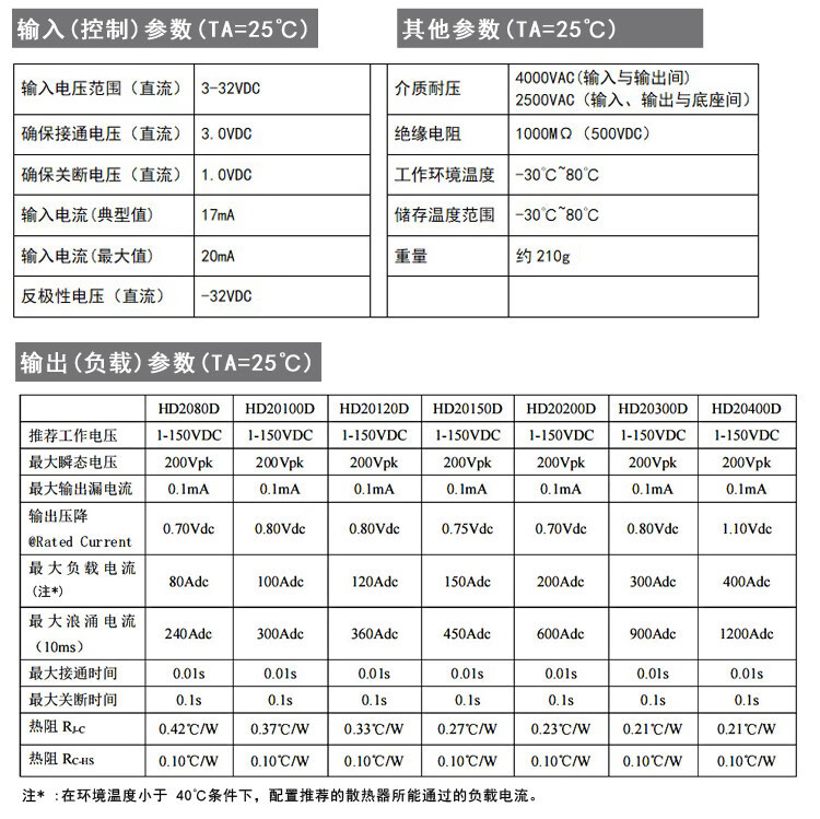 SSR-HD20100D直流固态继电器模块200VDC大电流100A200A300A400A SSR-HD20150D 150A