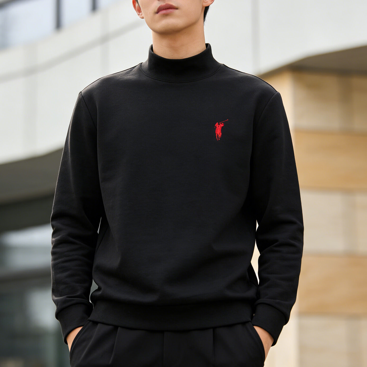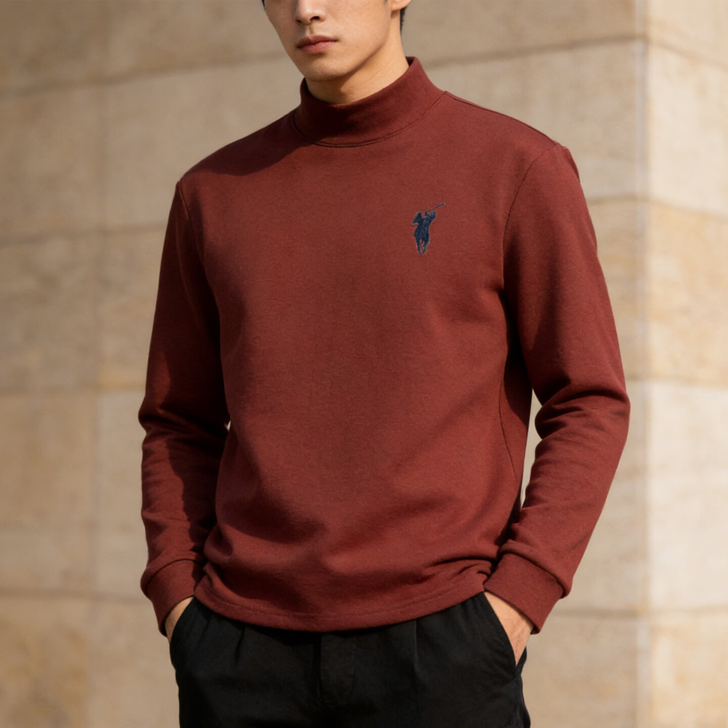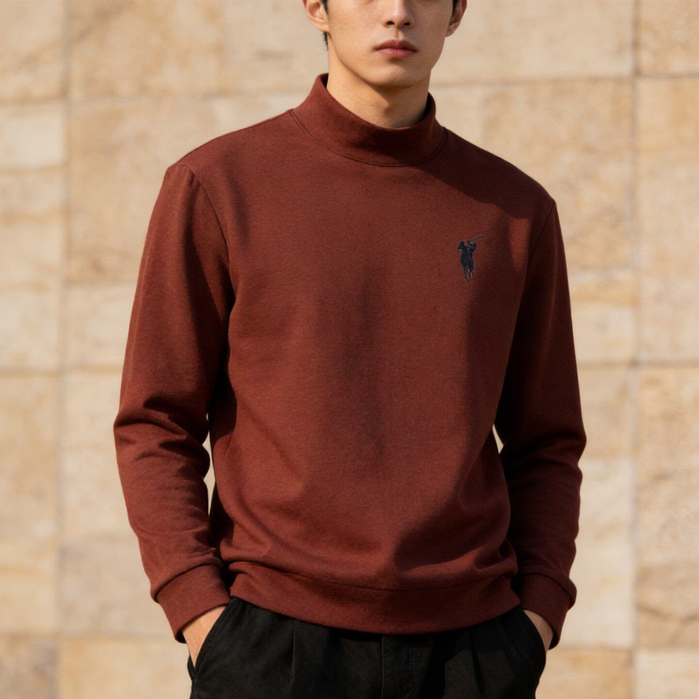 Playboy (PLAYBOY) American turtleneck half-zip sweatshirt for men 2026 spring velvet warm loose large size casual bottoming shirt orange red M 80-100Jin Jin equals 0.5 kg