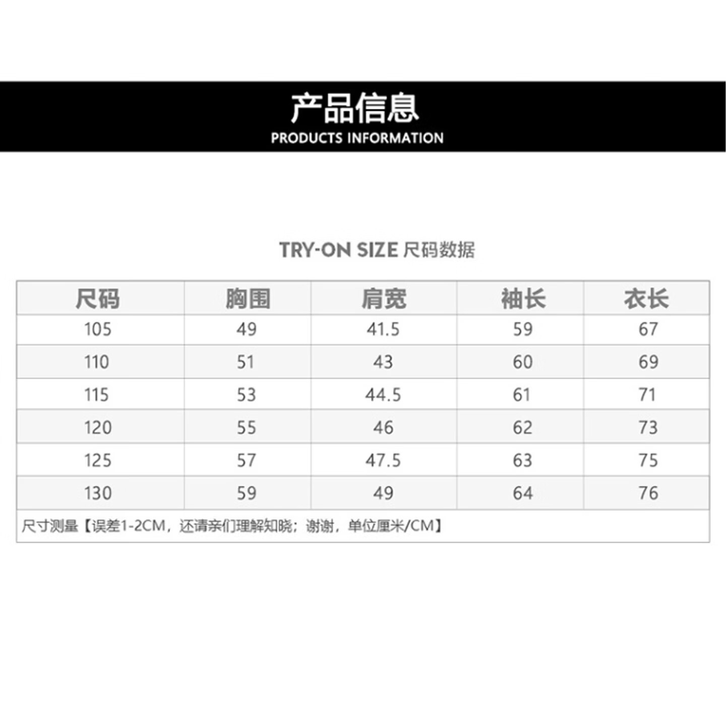 Size (cm) 42 44 46 48 50