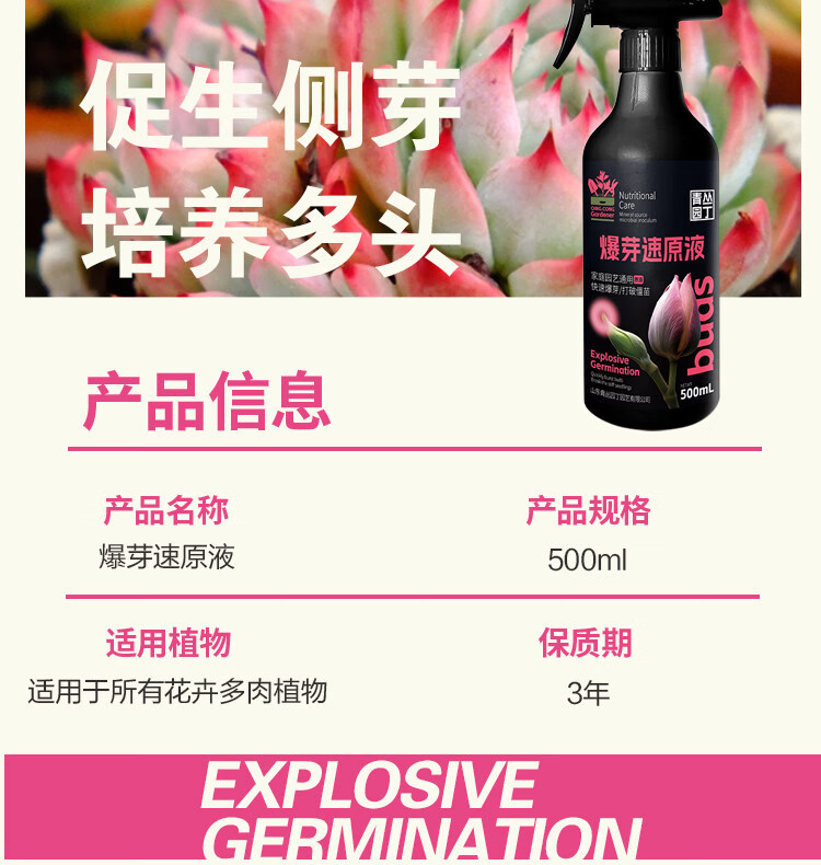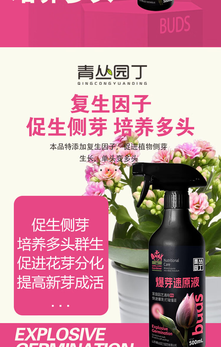 Qingcong gardener's rapid bud bursting stock solution multi-bud promotion, germination, differentiation, leaf flower arrangement, succulent green plants, universal type bursting bud rapid stock solution 500ml*1 bottle conventional