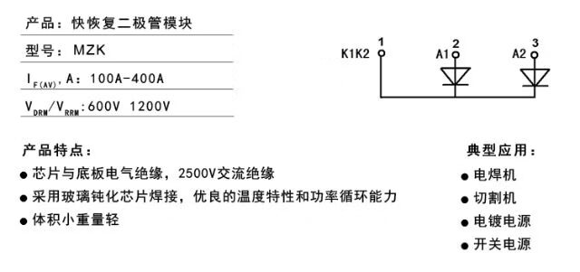 Fast recovery diode module MZK100 forklift charger MZK100A400V welding machine rectifier bridge brand new MZK300TS120U (package 234)