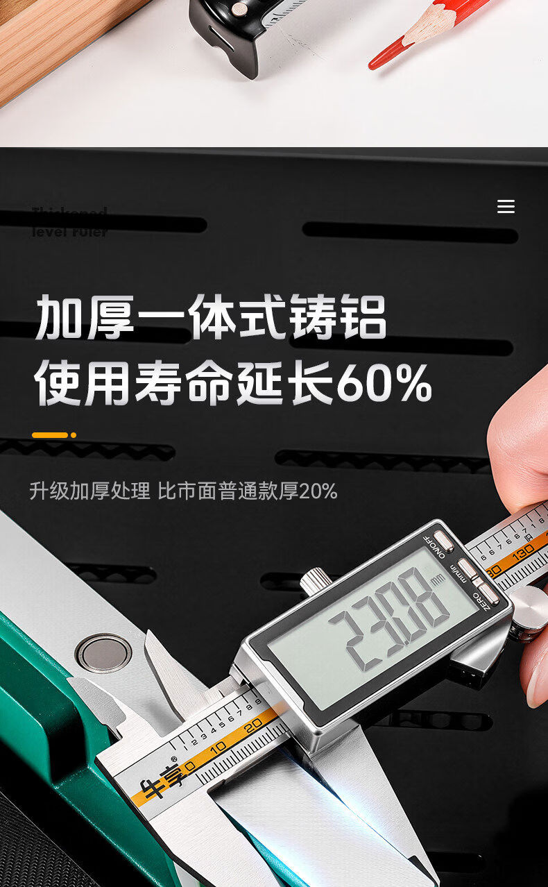 BEYZK high-precision level ruler, small ruler, strong magnetic solid tool, aluminum alloy anti-fall multi-functional level meter, upgraded 1000mm solid cast aluminum strong magnetic industrial grade high-precision point + tape measure