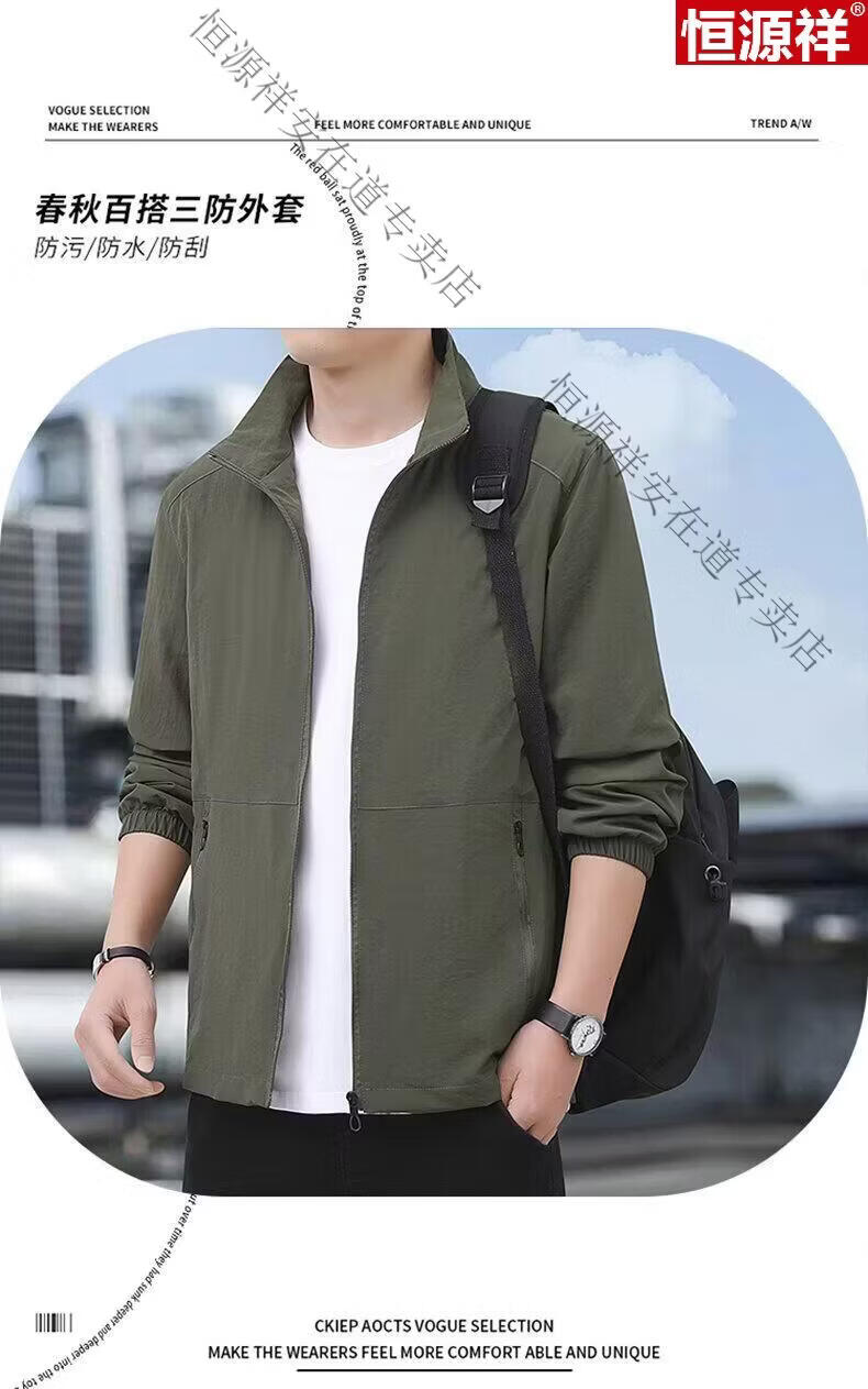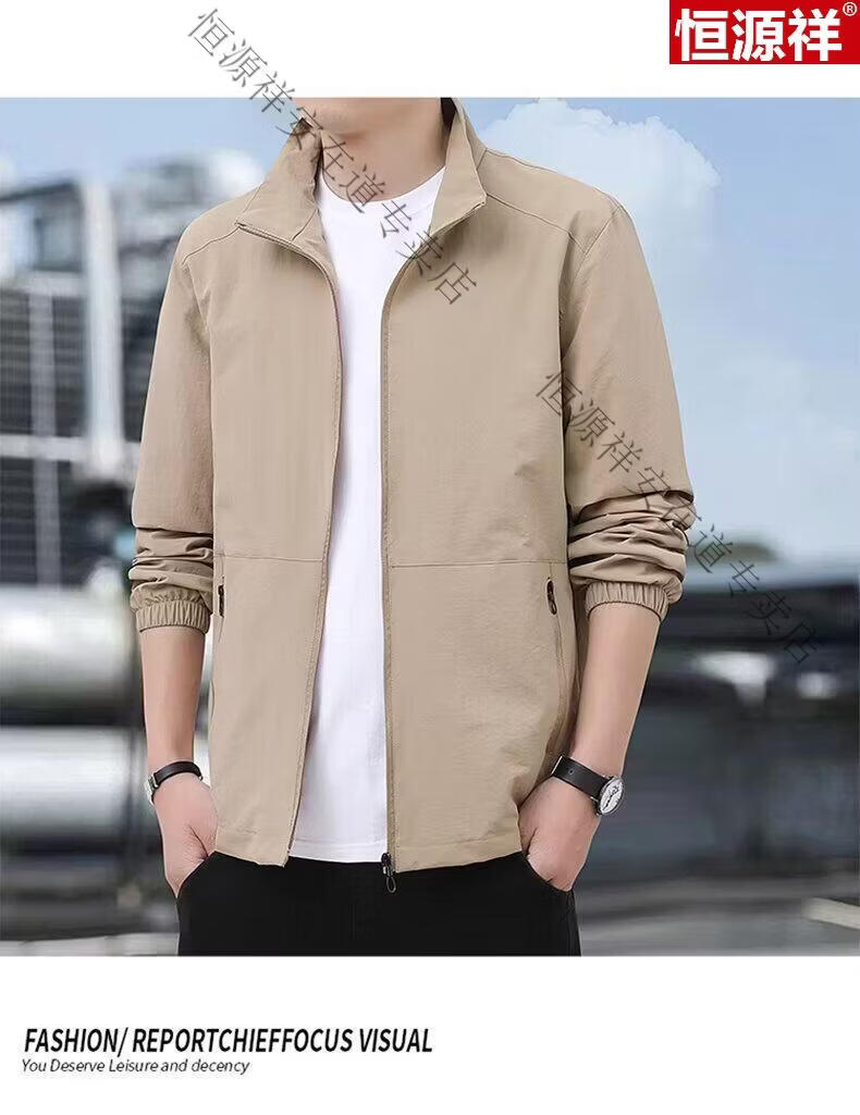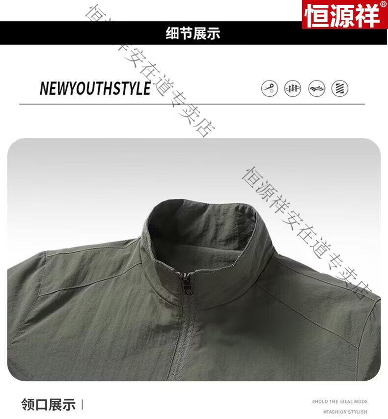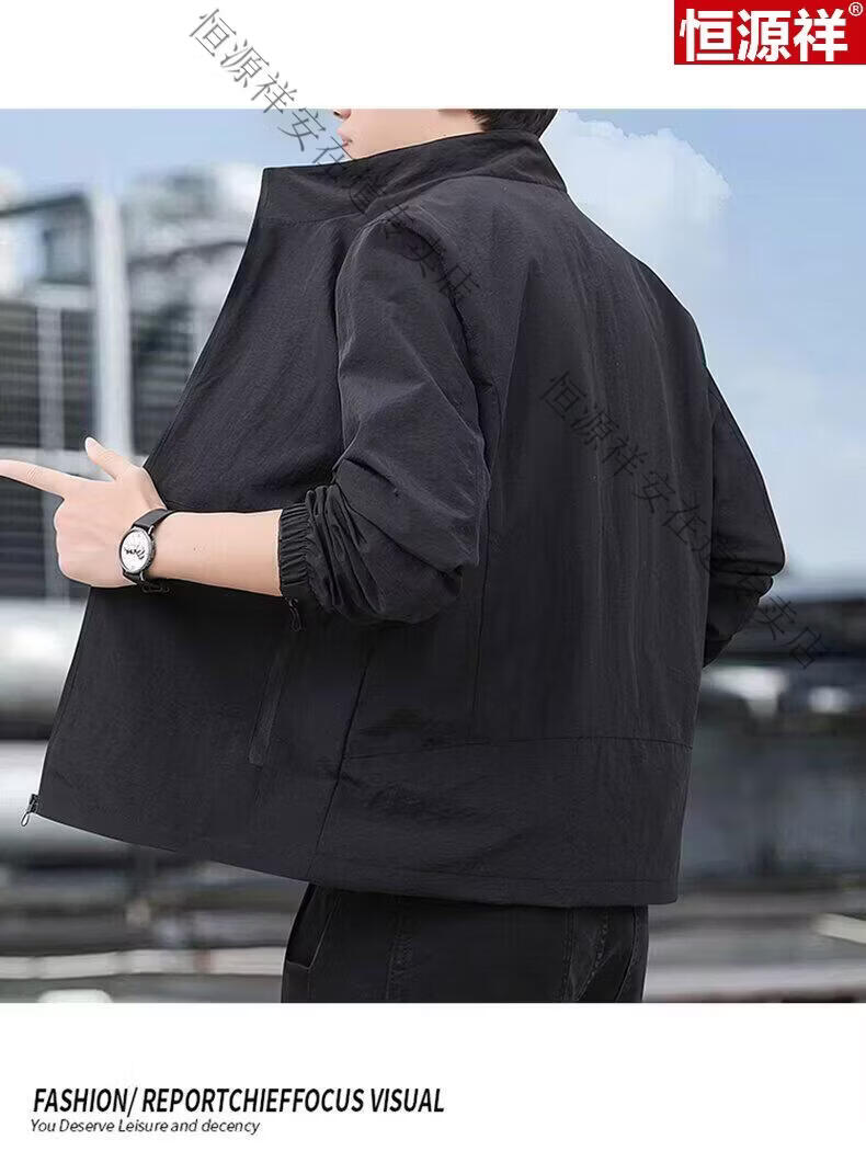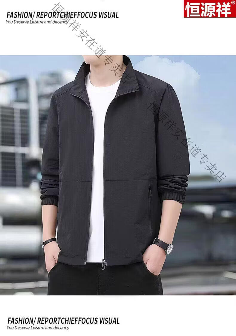 Hengyuanxiang Men's Spring Autumn Jacket Men's Work Casual Jacket 2026 New Men's Quick-drying Breathable Stand-up Collar Top Black 5XL