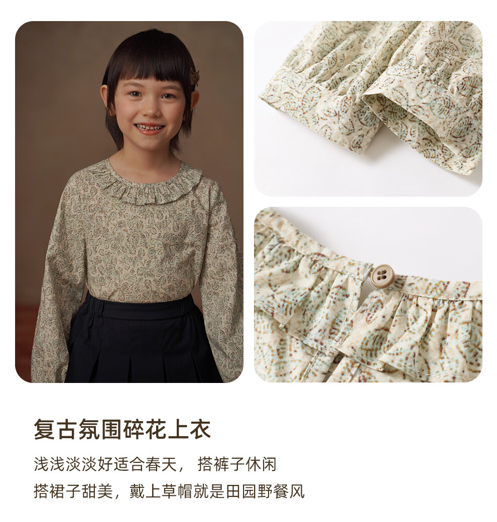 Haqi Children's Clothing Spring and Autumn Children's Casual Tops Korean Floral Pastoral Style Long-Sleeved Shirt Girls Spring Clothing 2026 New Floral 110