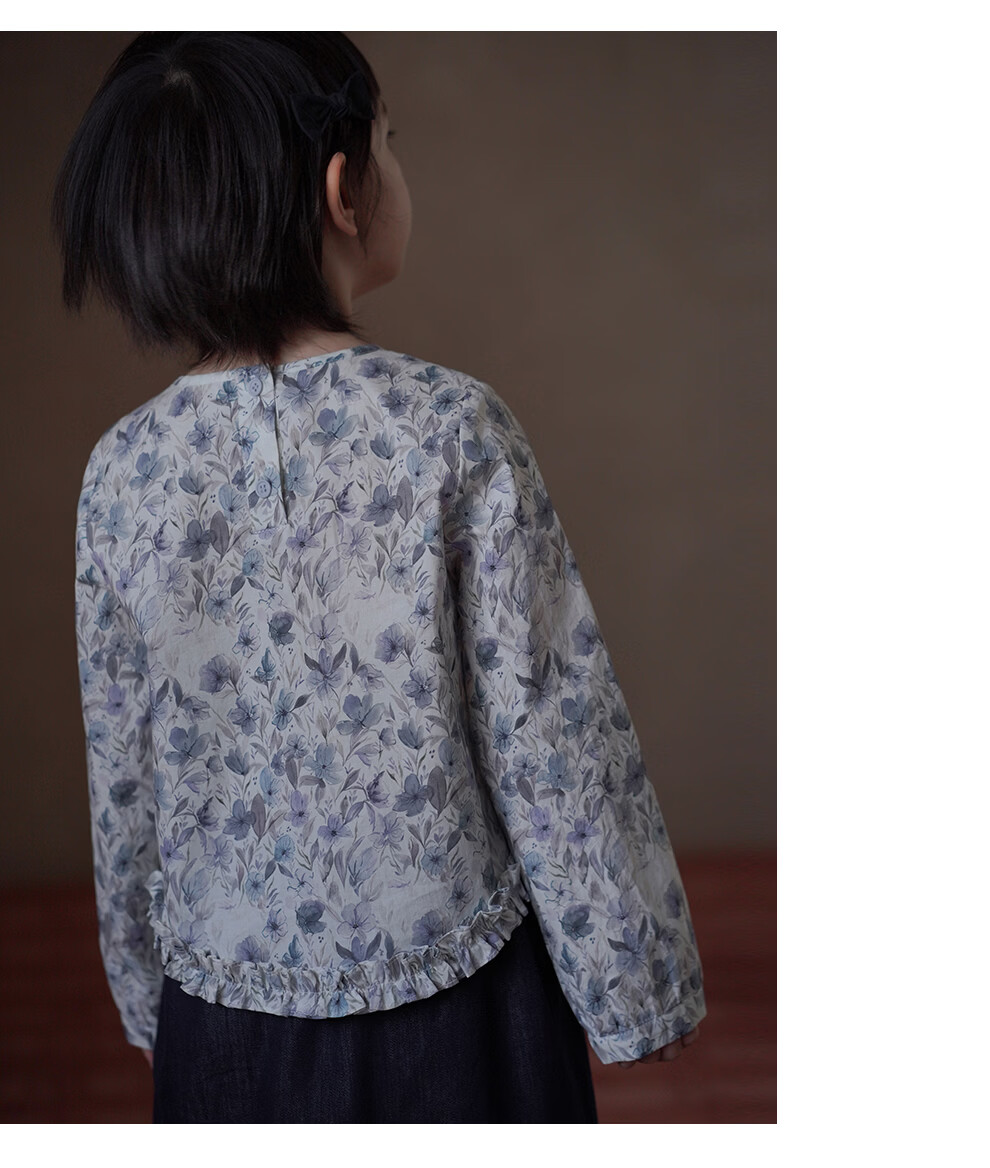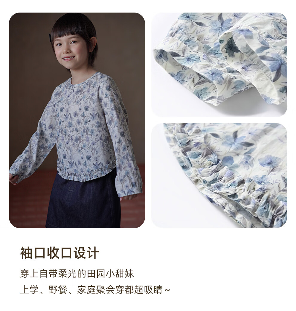 Haqi children's clothing spring and autumn children's tops Korean style floral fungi long-sleeved shirt girls spring clothing 2026 new girls floral 110