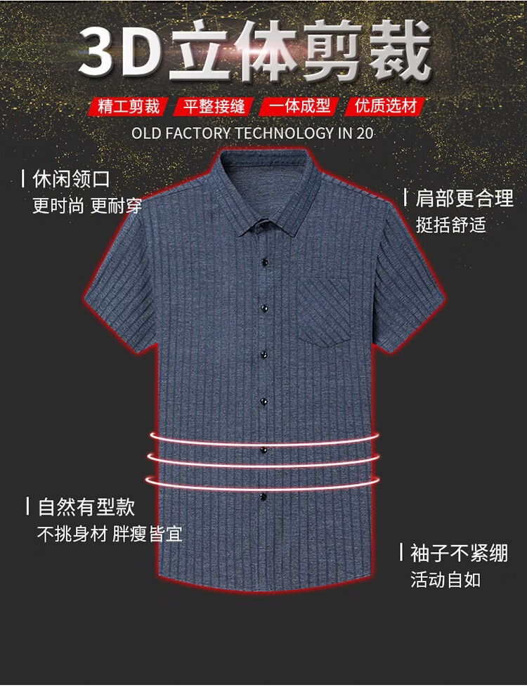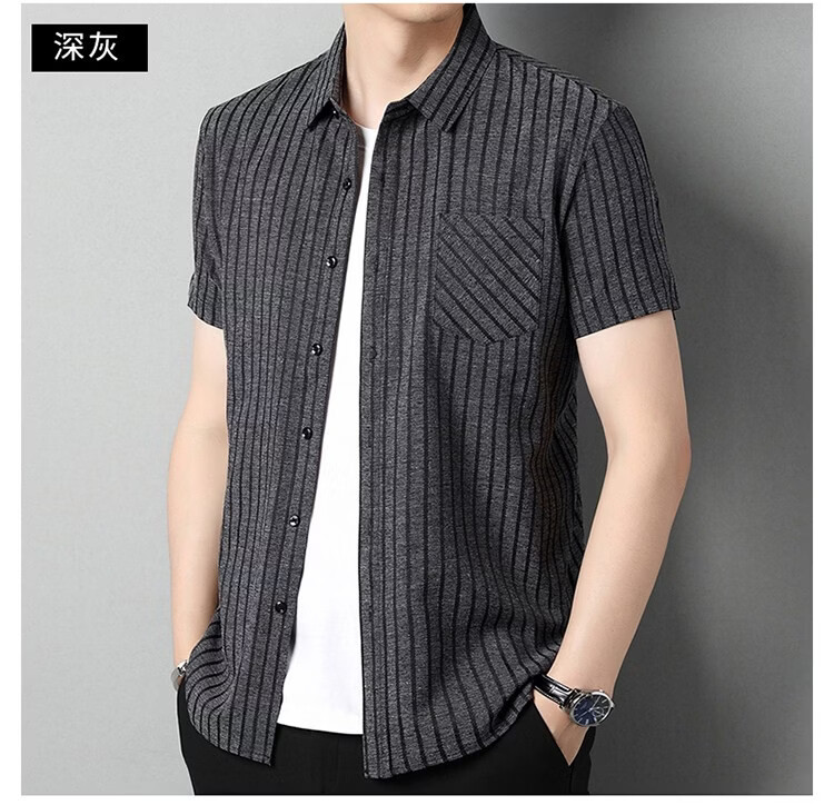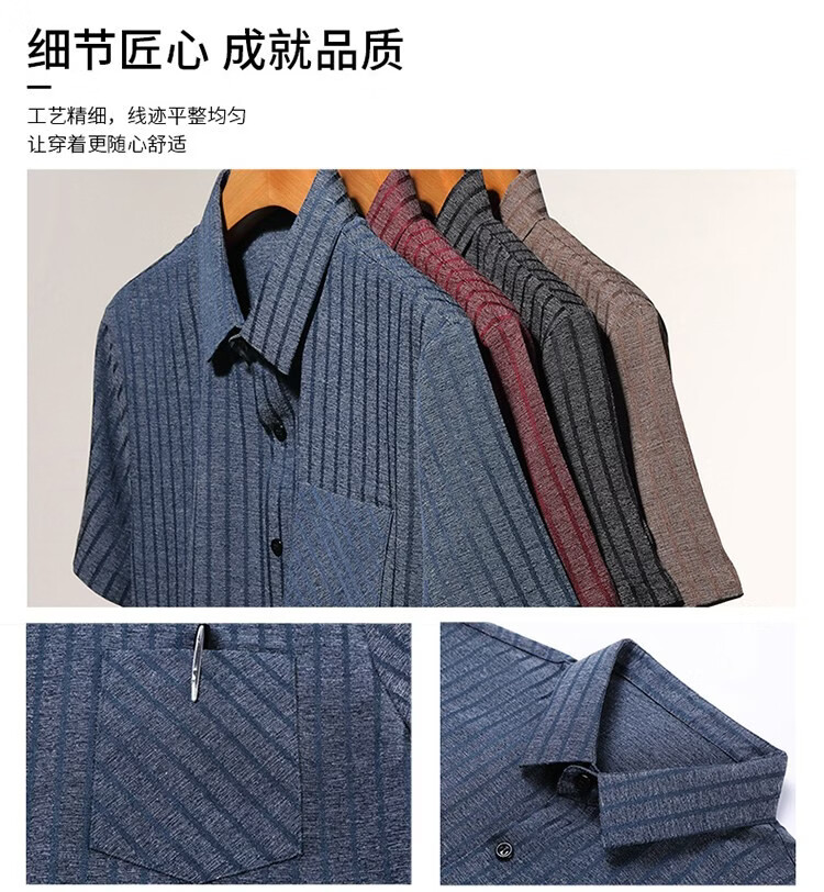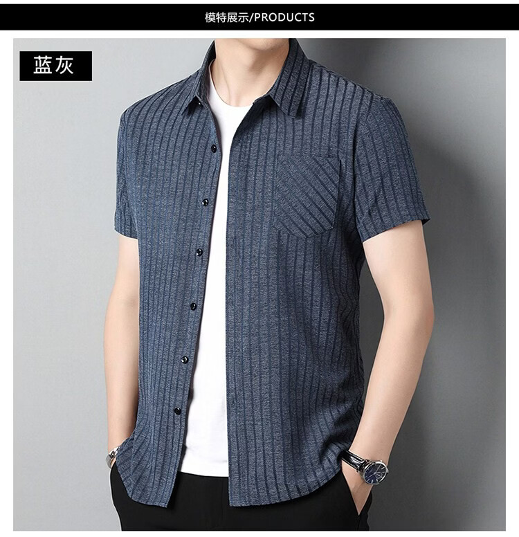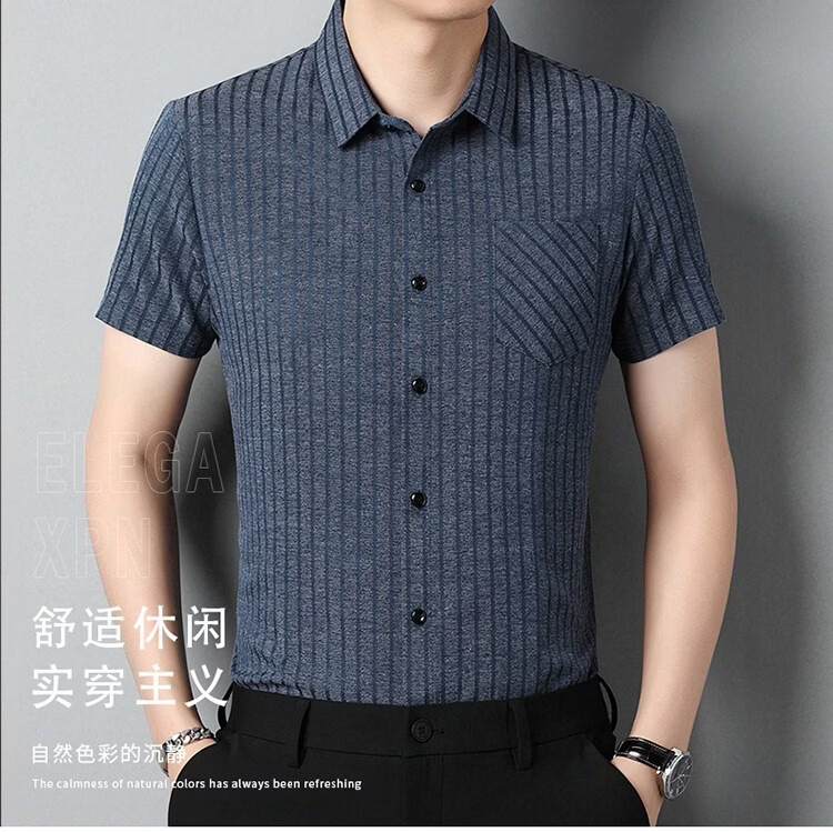 LILANZ mulberry silk real pocket shirt men's summer thin short-sleeved shirt middle-aged loose striped non-iron top 8200023 dark blue thin XL (175) 115 recommended 140-155 Jin Jin equals 0.5 kg