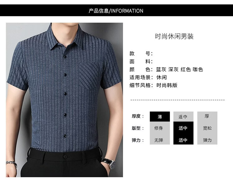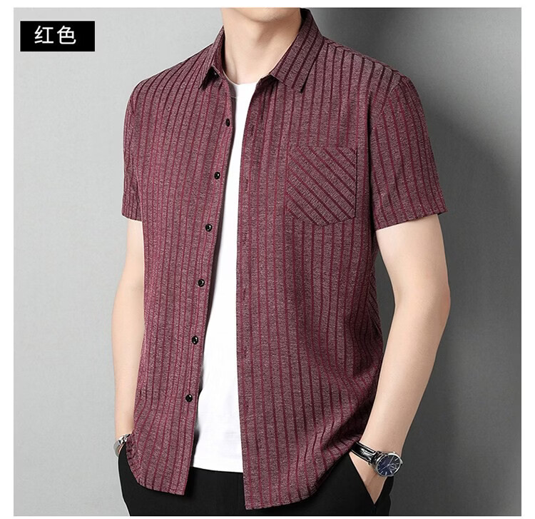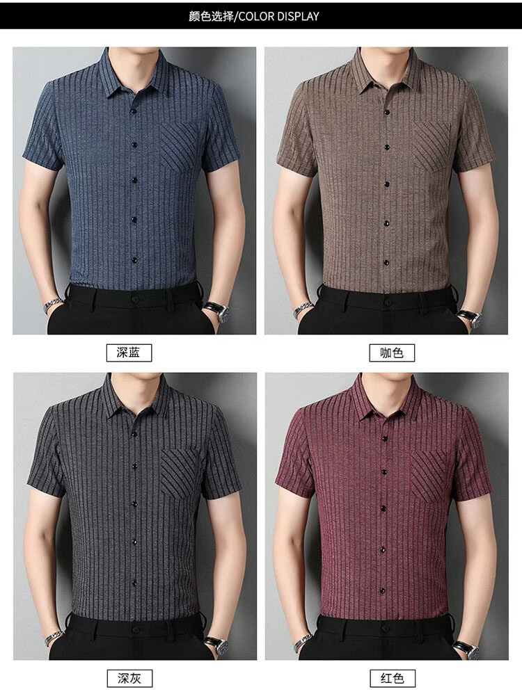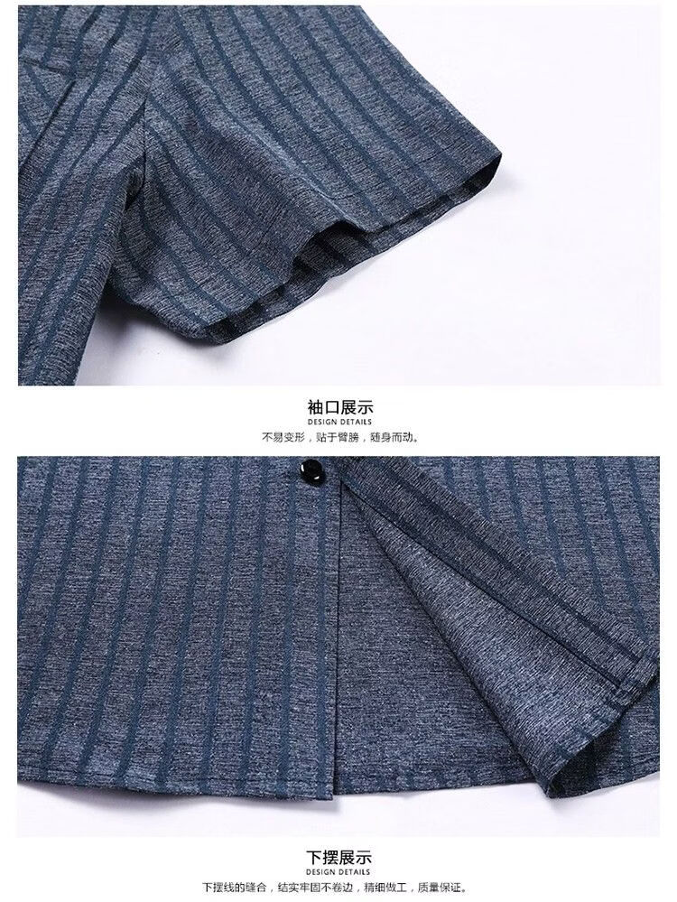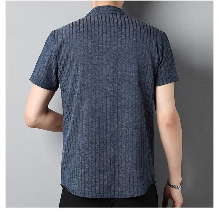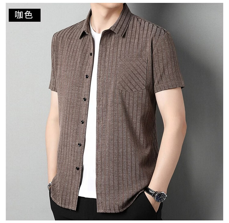 LILANZ mulberry silk real pocket shirt men's summer thin short-sleeved shirt middle-aged loose striped non-iron top 8200023 dark blue thin XL (175) 115 recommended 140-155 Jin Jin equals 0.5 kg