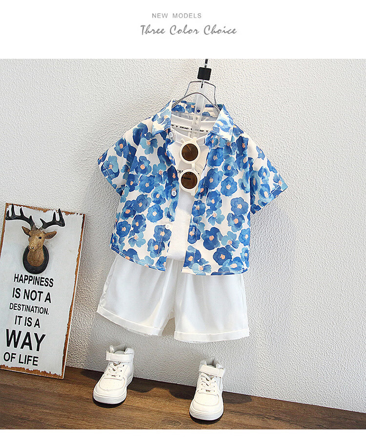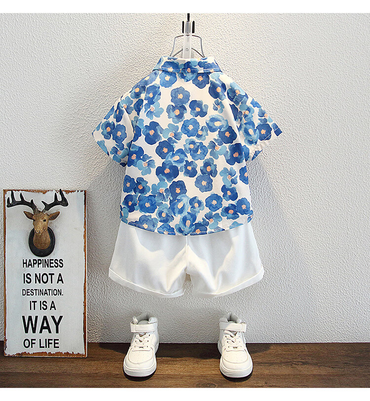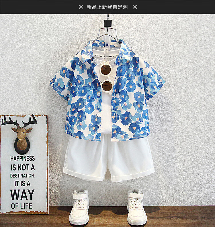 Ultraman Boys Summer Korean Style Graffiti Shirt Set 2025 New Children's Short Sleeve Baby Denim Shorts Two-piece Set Trendy Suit 100 cm