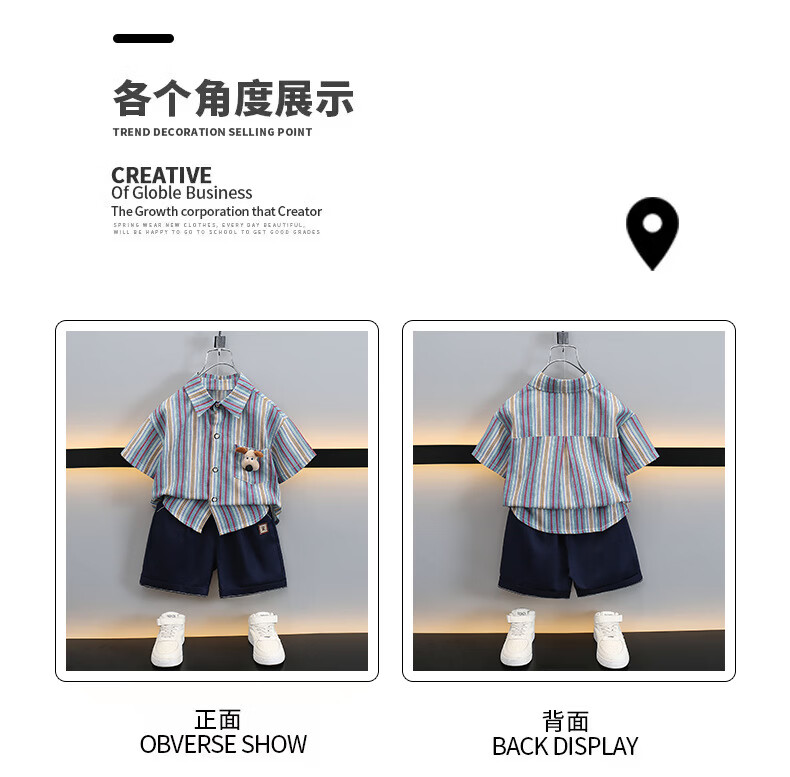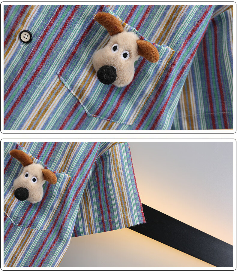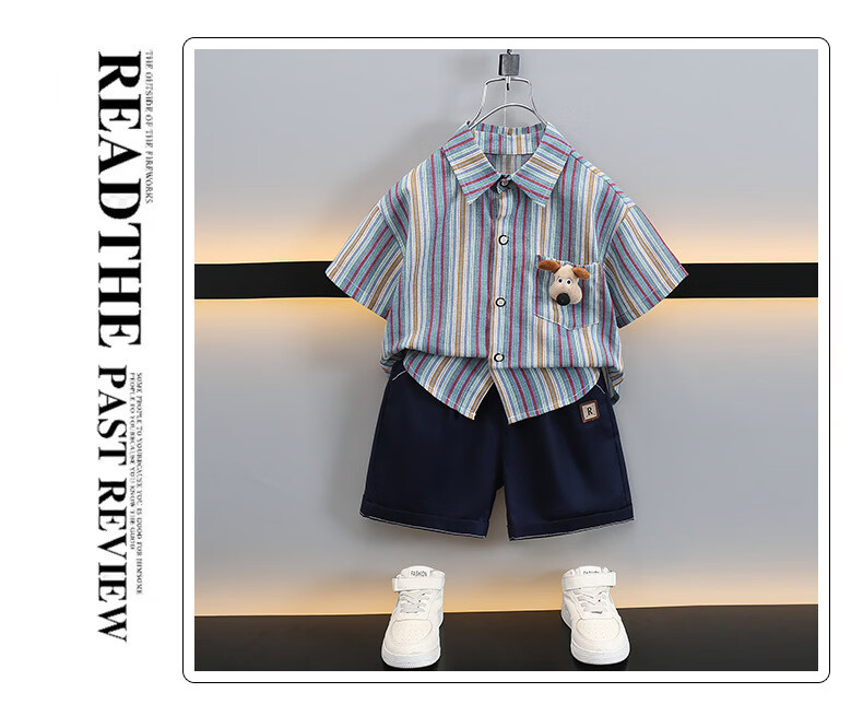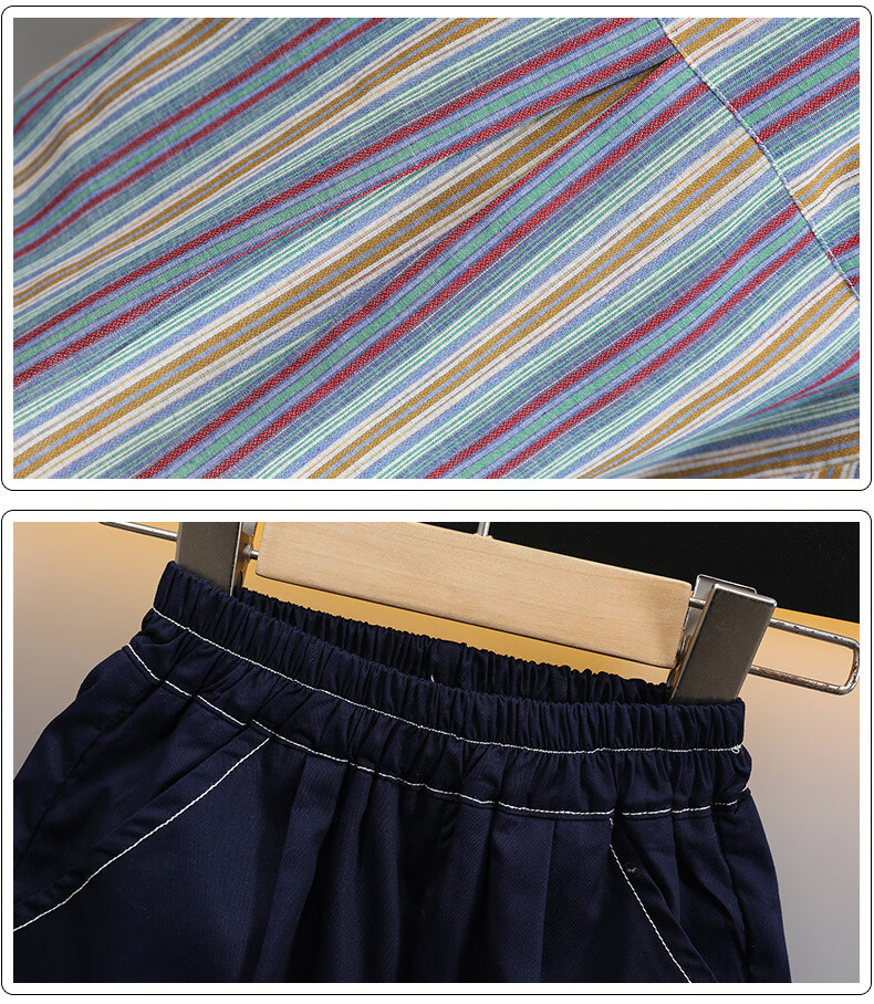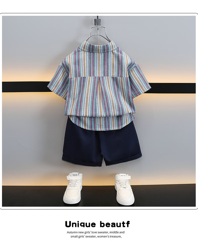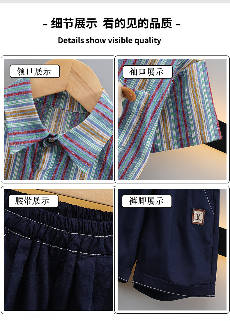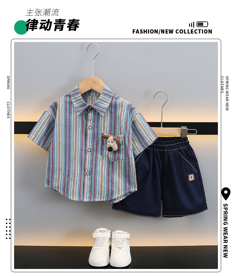 Ultraman boys summer short-sleeved suit 2025 new children's Korean style summer style striped shirt casual two-piece set trendy picture color 90 cm