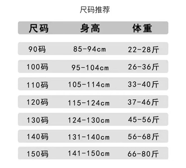 China(cm) 72-76 76-81 81-87 87-93 93-98
