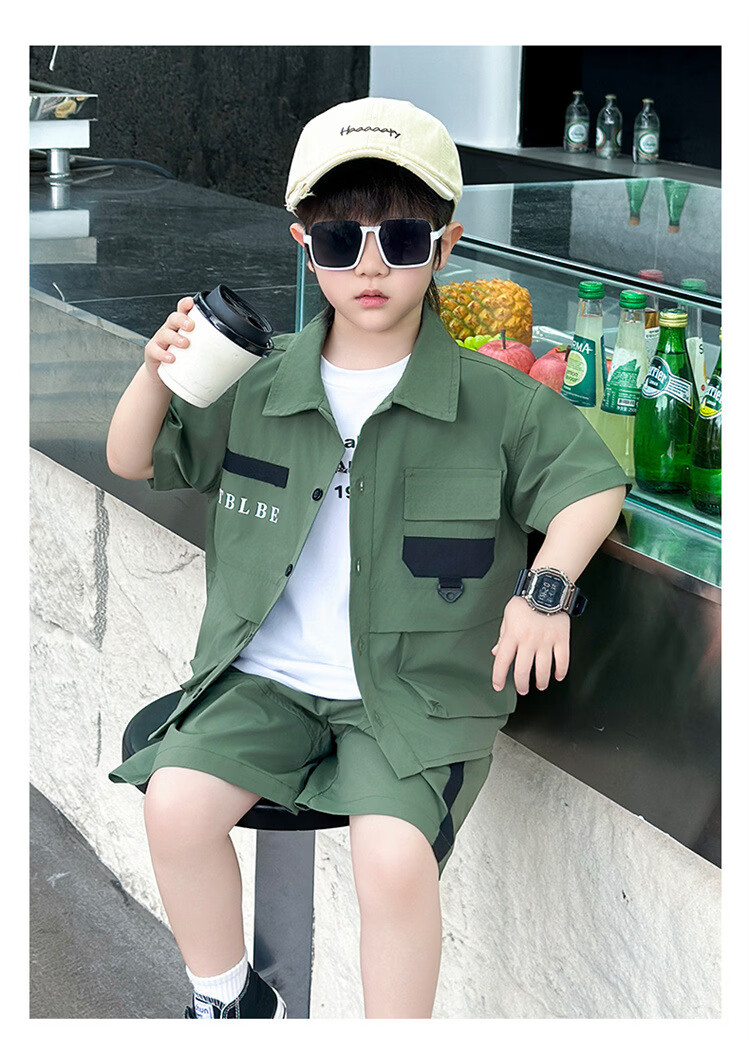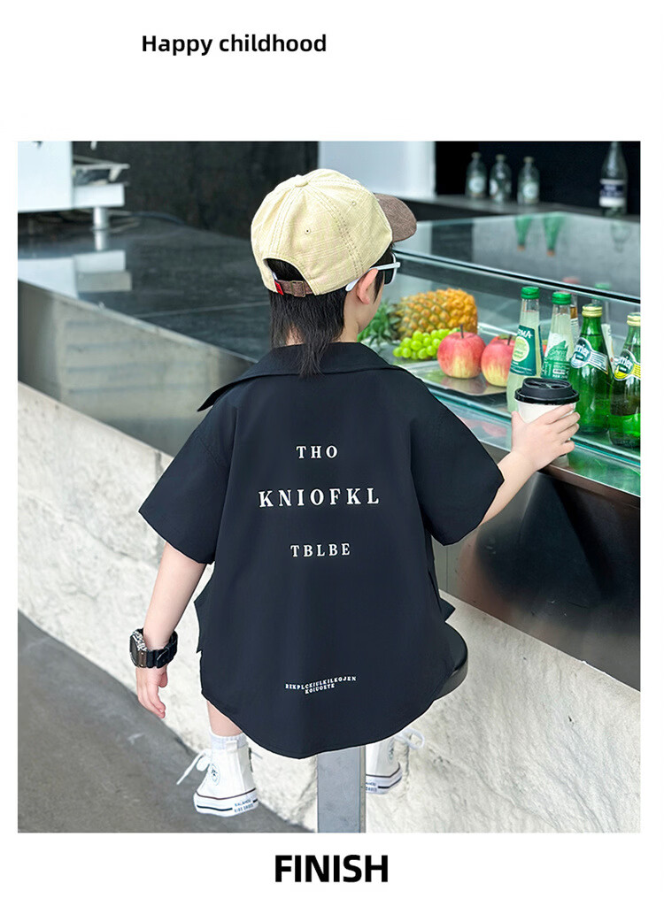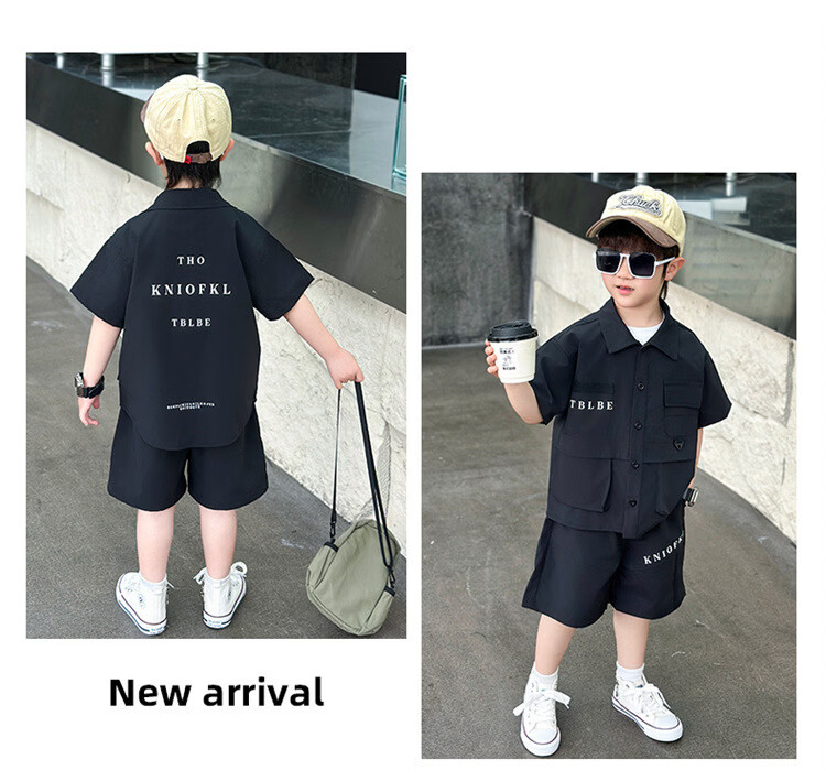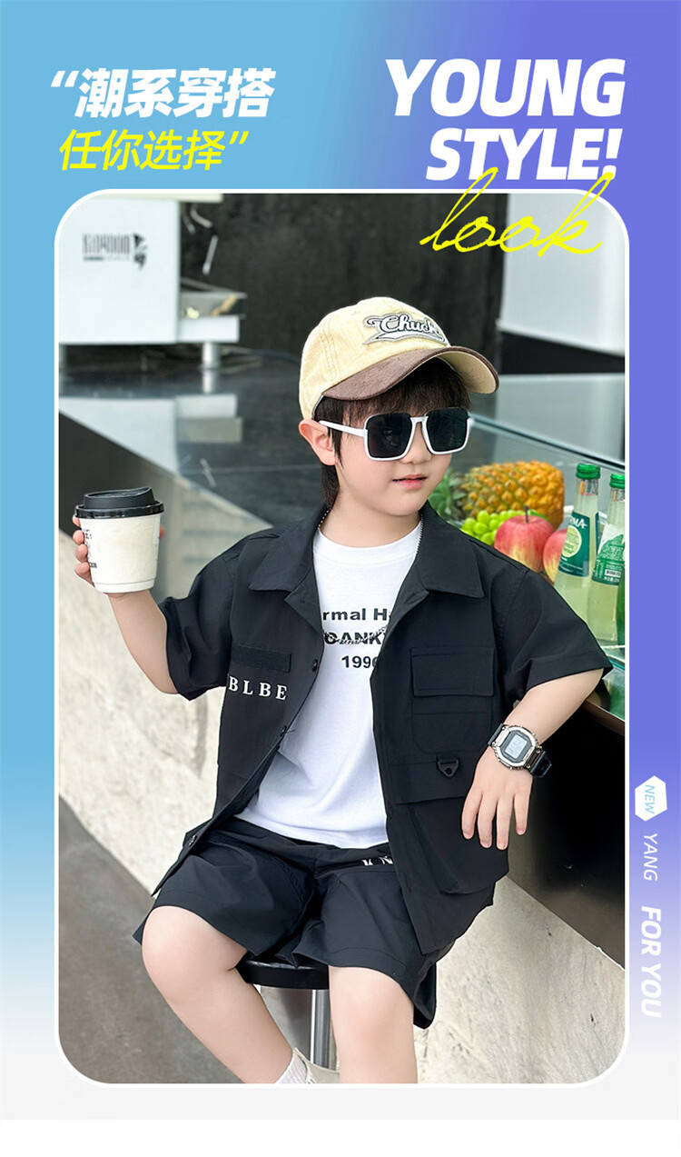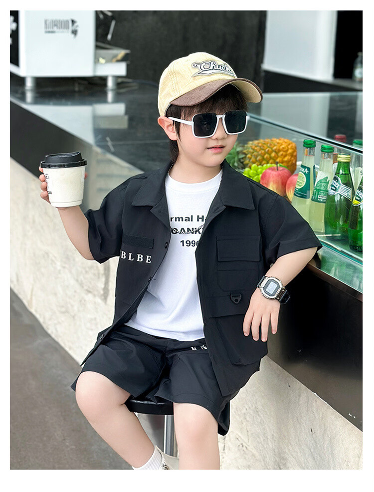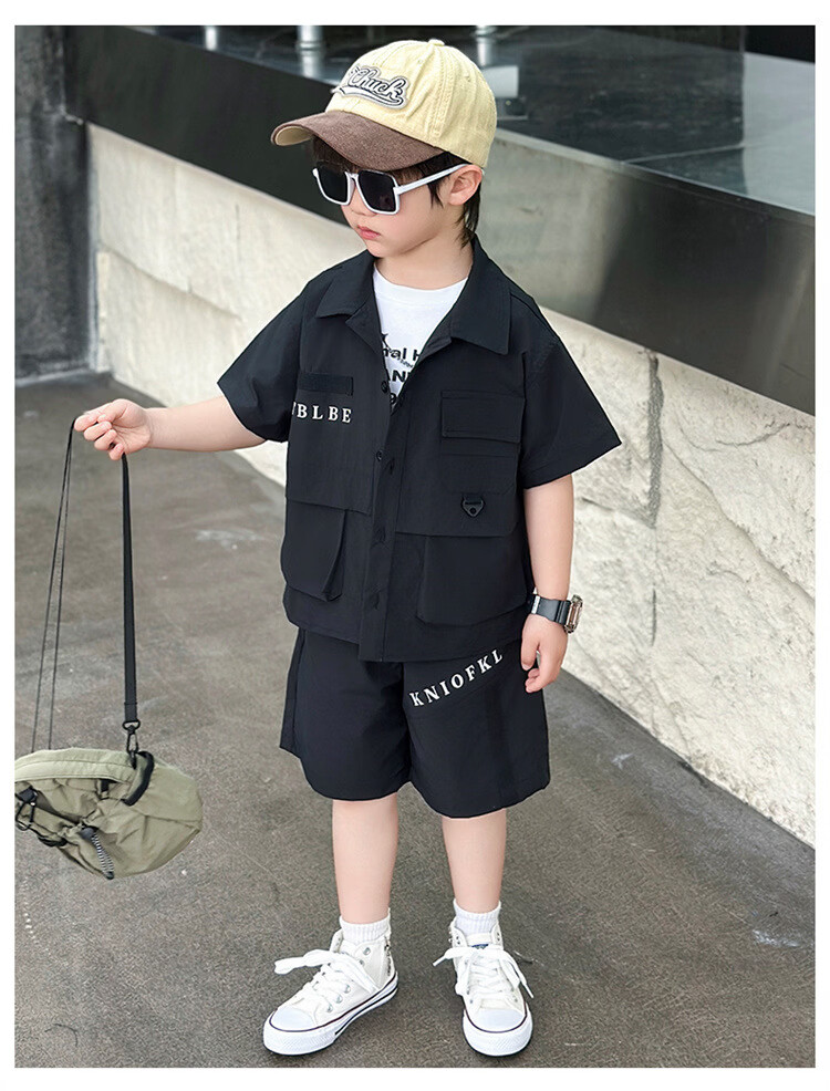 Ultraman Boys Workwear Suit Summer 2025 New Fashionable Cool Children's Shirt for Small and Medium-sized Children, Fashionable Baby Boy Summer Clothes Short Sleeves, Black 90 cm
