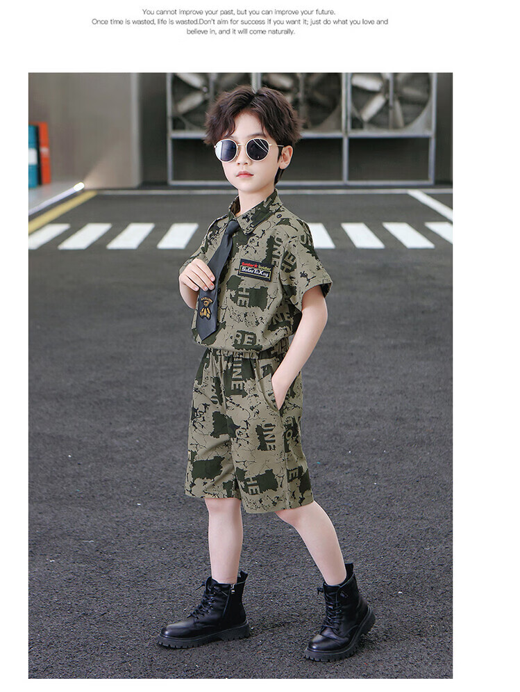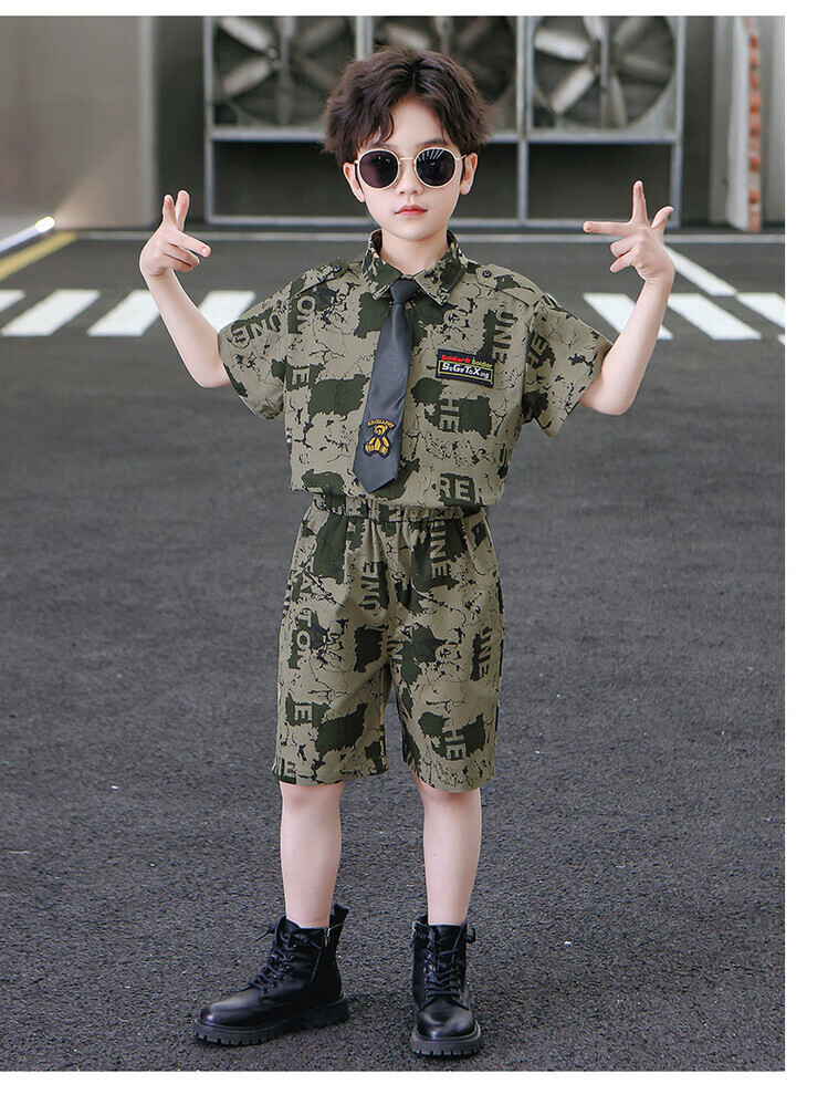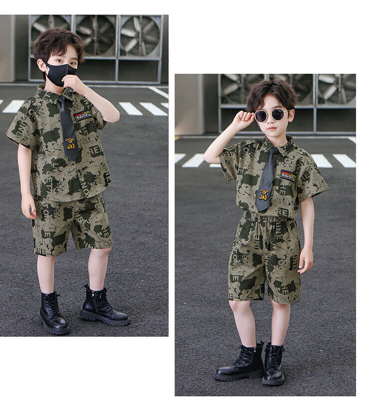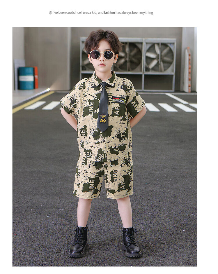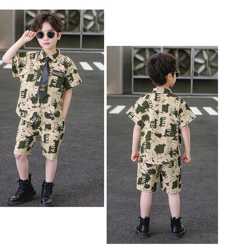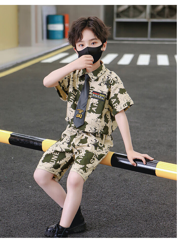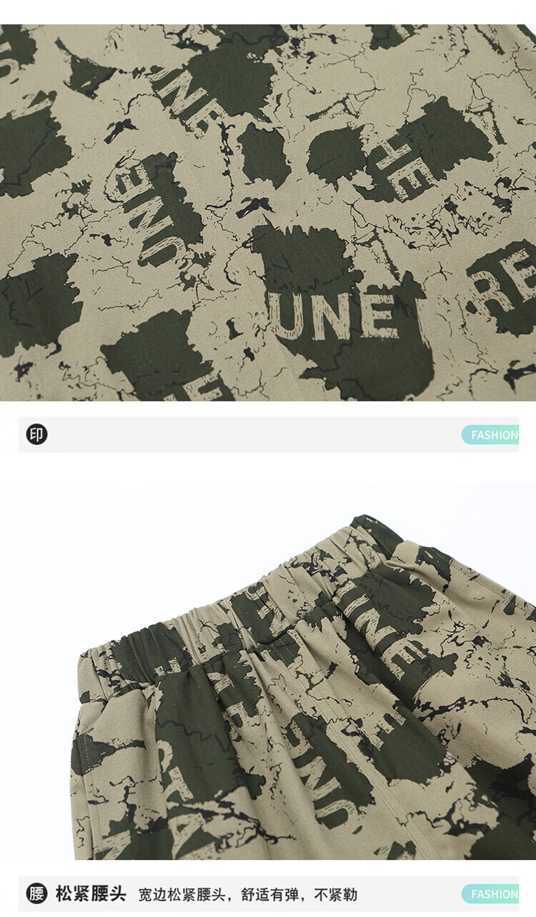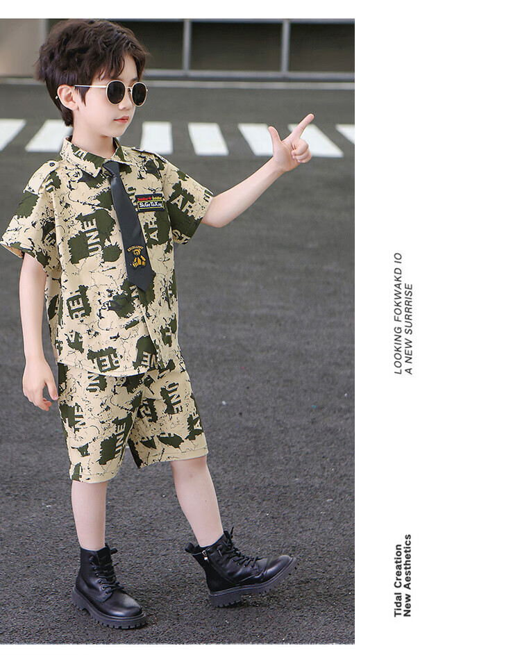 Ultraman boys handsome short-sleeved shirt suit summer little boy handsome fashionable baby children summer camouflage two-piece set off-white 100 cm