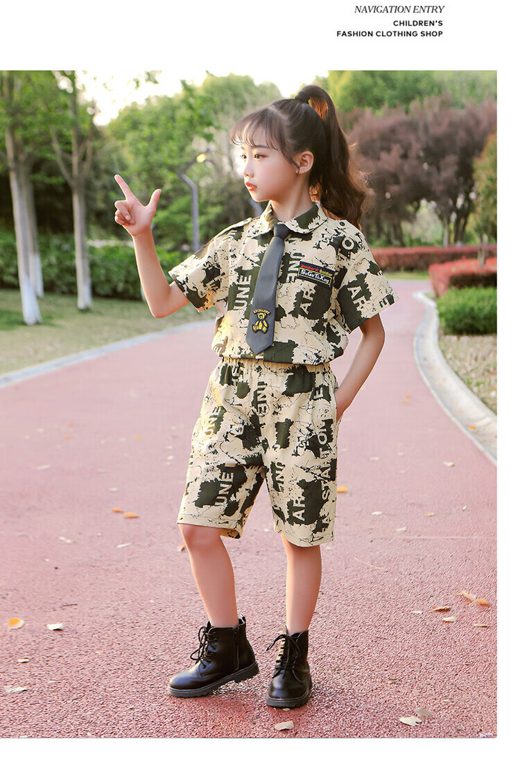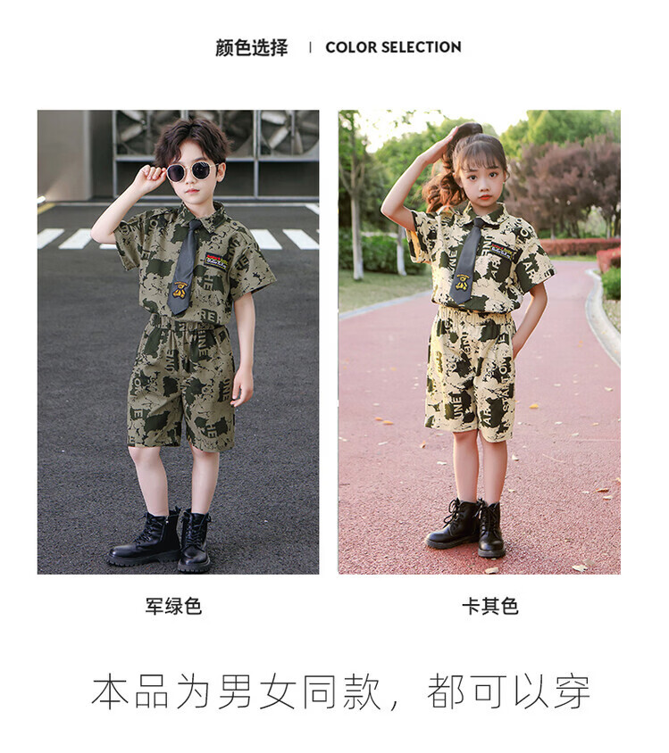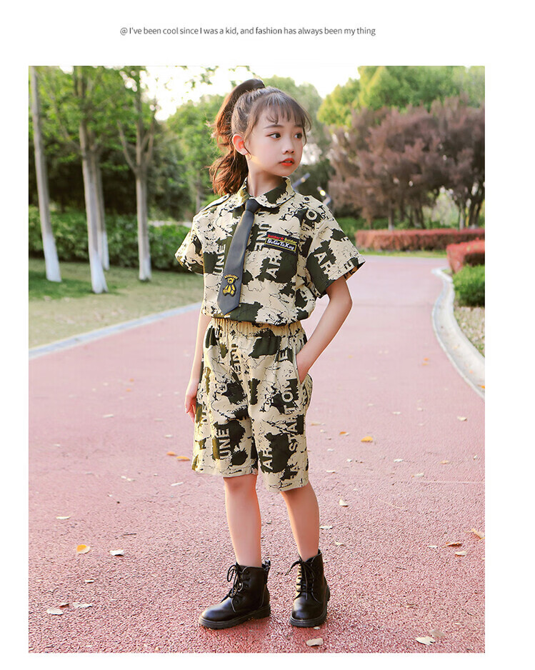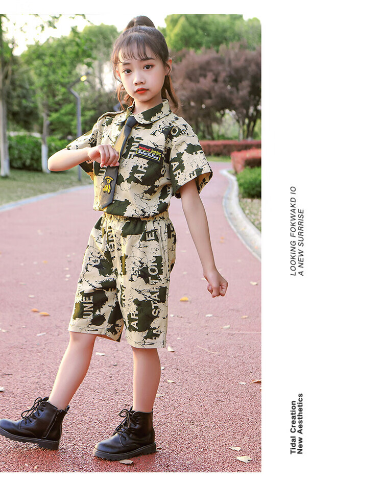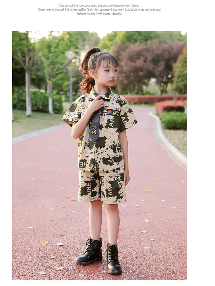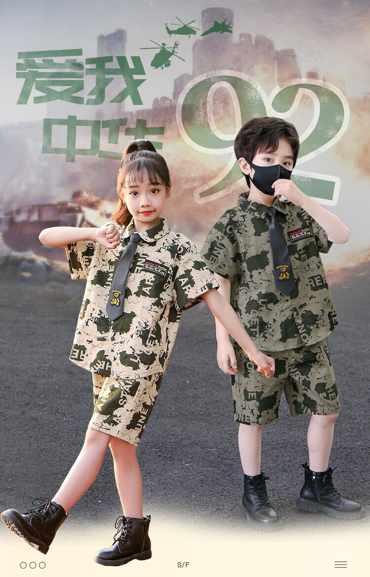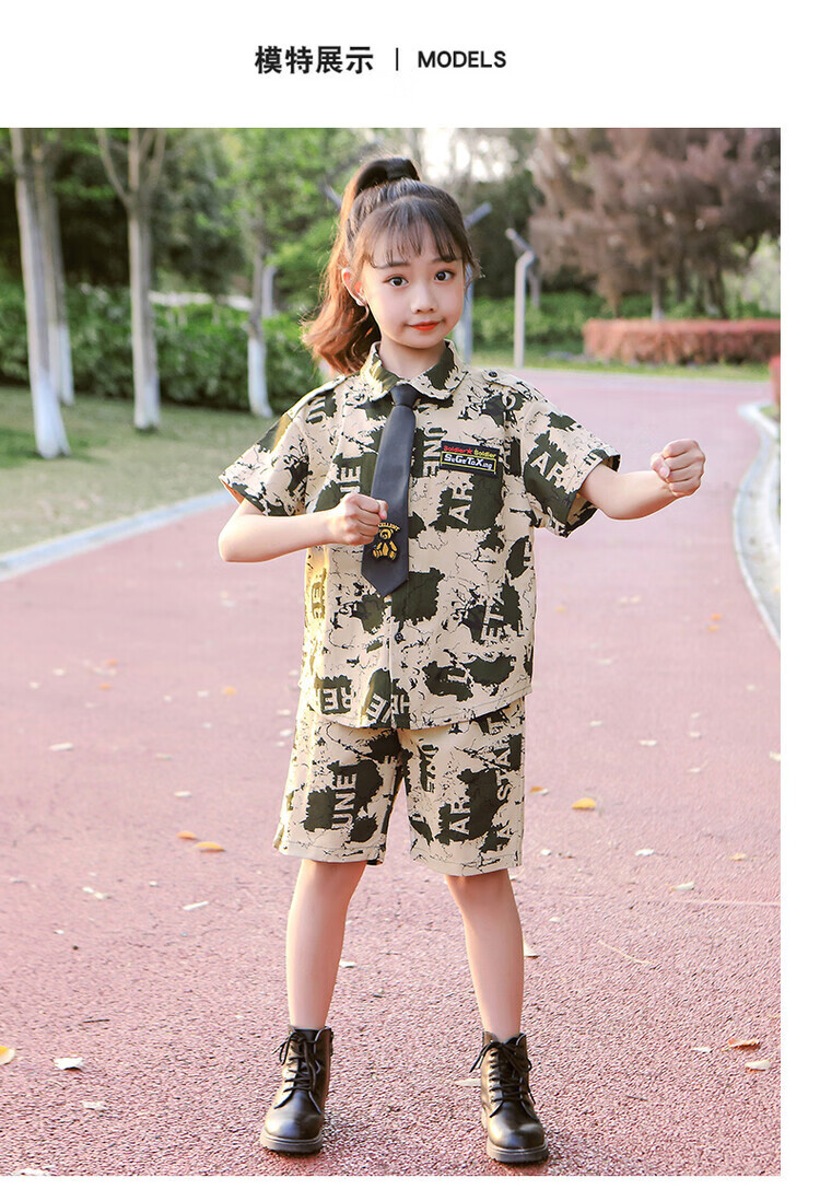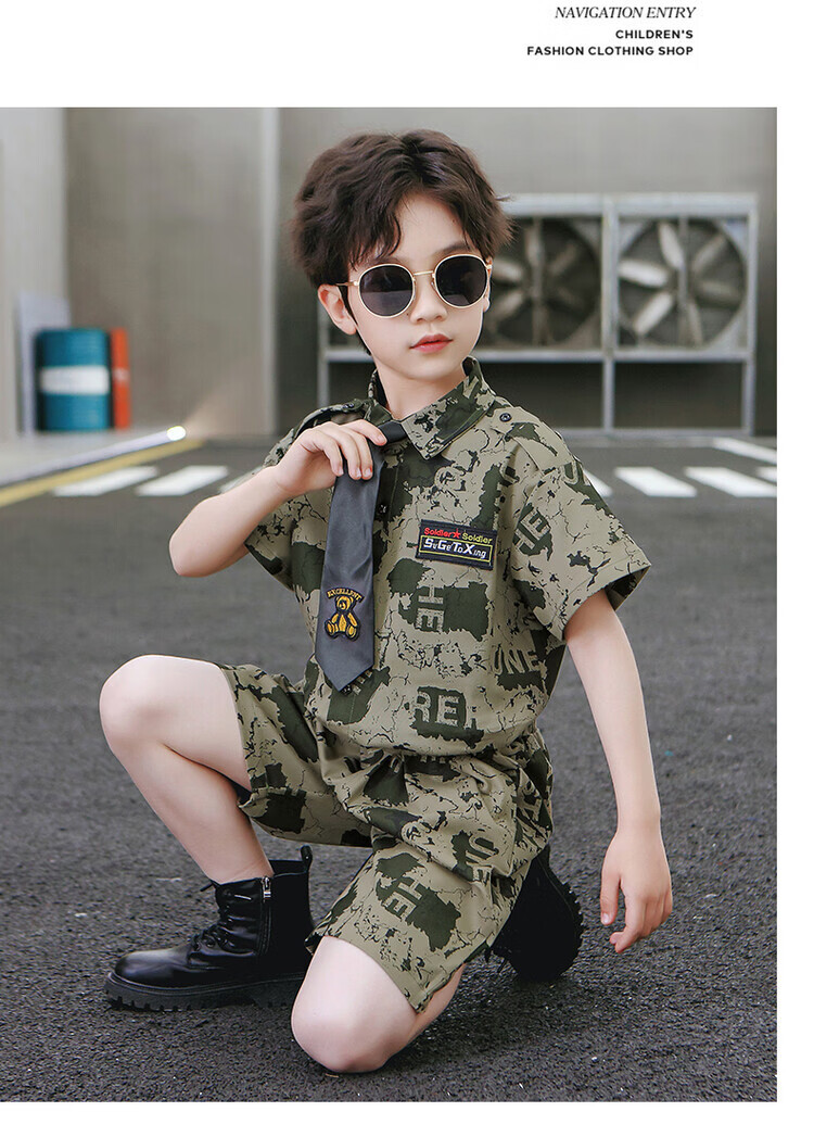 Ultraman boys handsome short-sleeved shirt suit summer little boy handsome fashionable baby children summer camouflage two-piece set off-white 100 cm