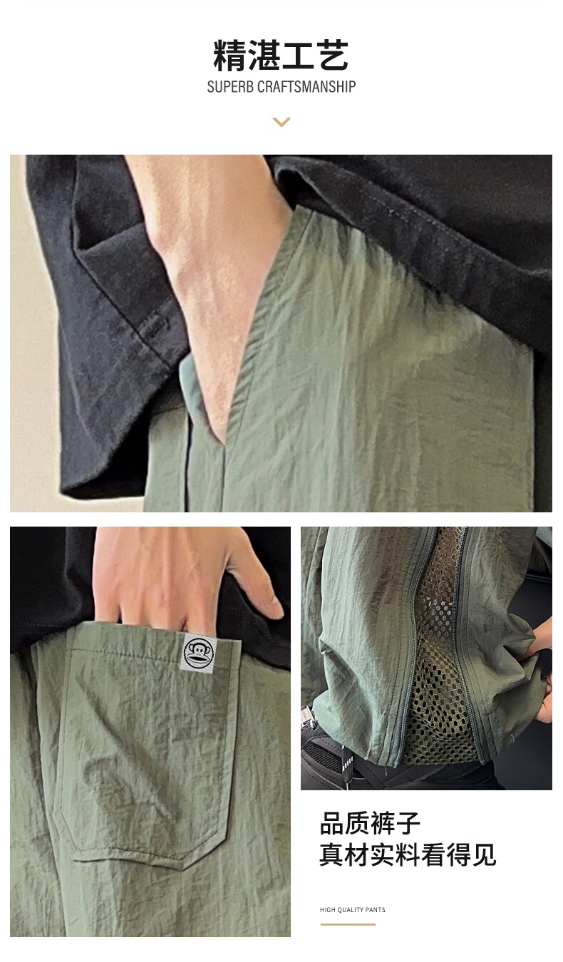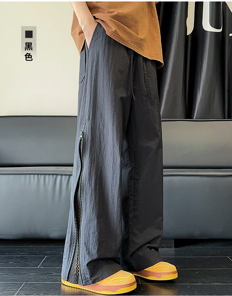 Big Mouth Monkey (paul frank) Pantalones casuales transpirables de seda de hielo Verano para hombres Nueva marca de moda Sueltos Delgados Rectos Versátiles Pantalones largos deportivos de pierna ancha Negro + Negro Descuento Paquete de dos M Recomendado 90-110 Jin Jin es igual a 0,5 kg