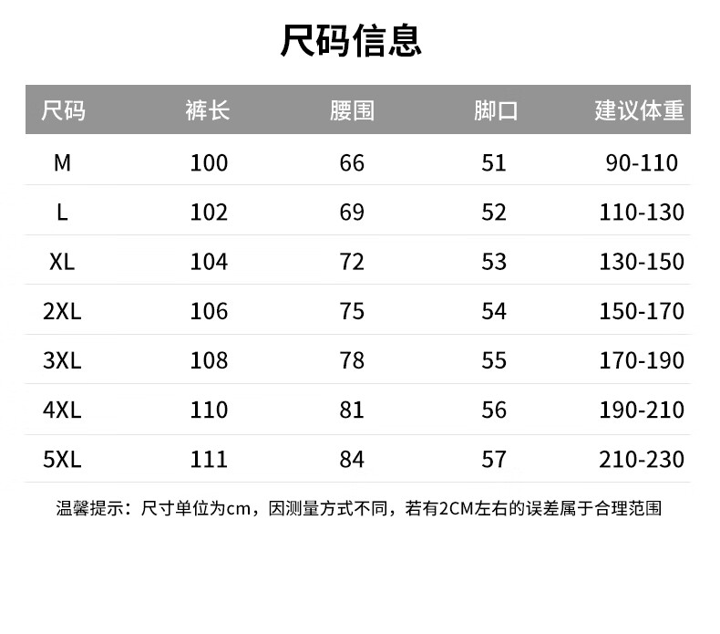 Outseam (cm) 99 cm 101.5 cm 104 cm 106.5 cm 109 cm