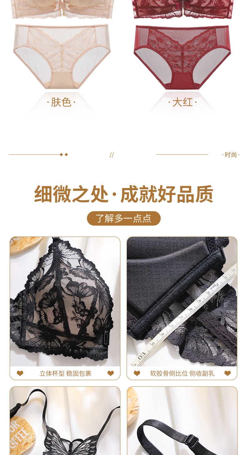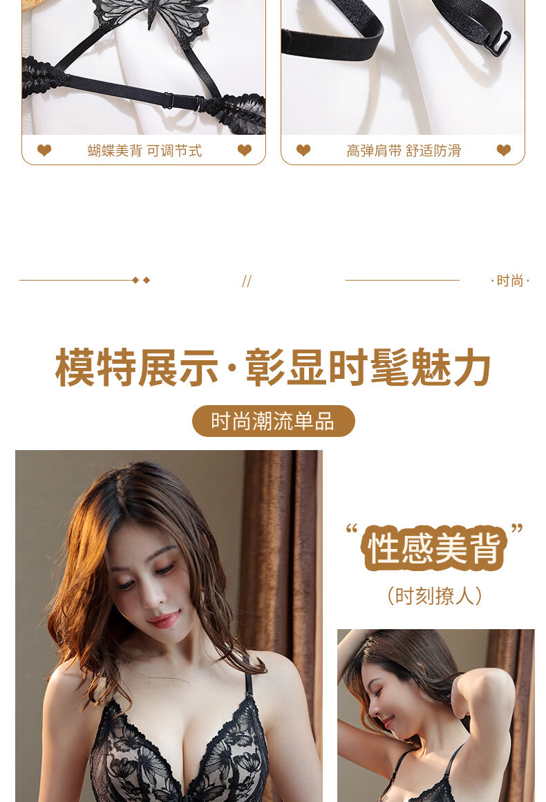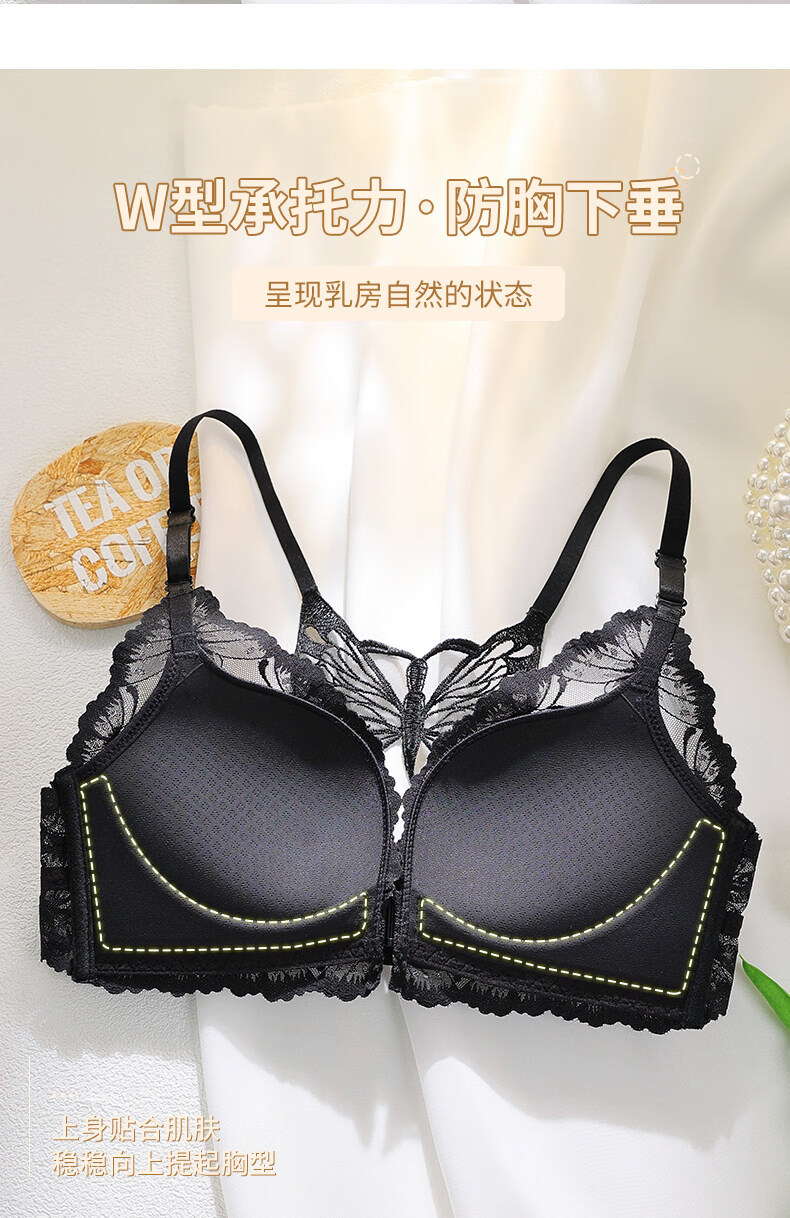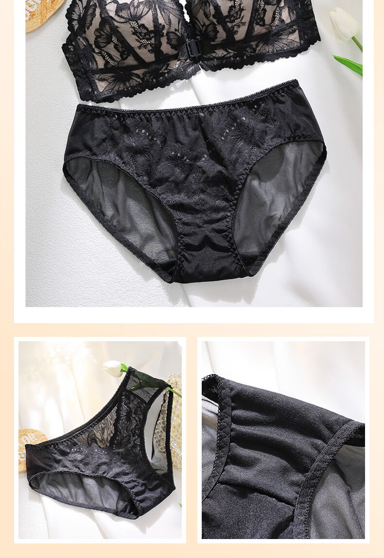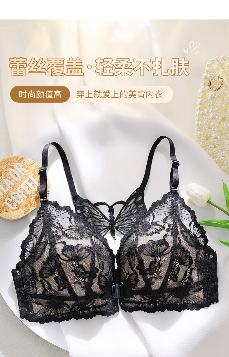 Victoria's Secret Victoria's Secret Beautiful Back Underwear Women's Small Breast Gathering Summer Lace Sexy Underwear Set Women's Front Button Black Suit 70A 32