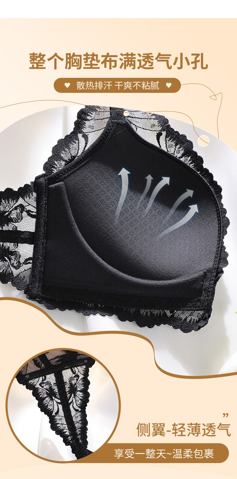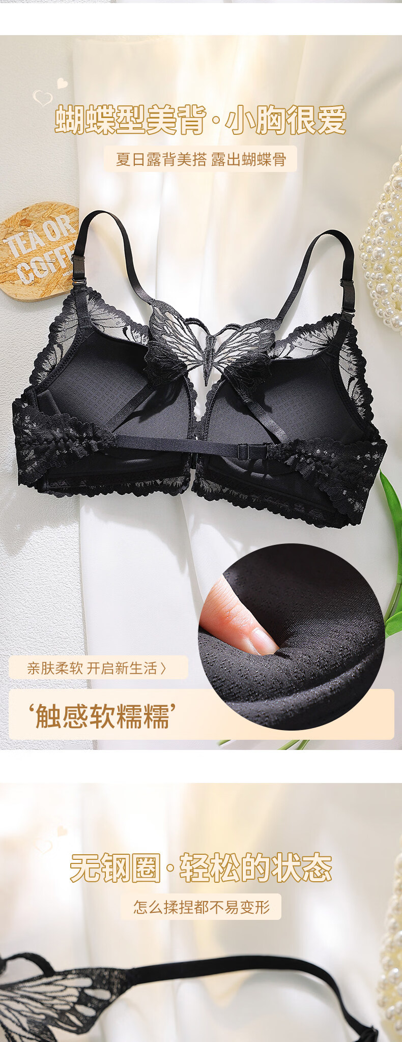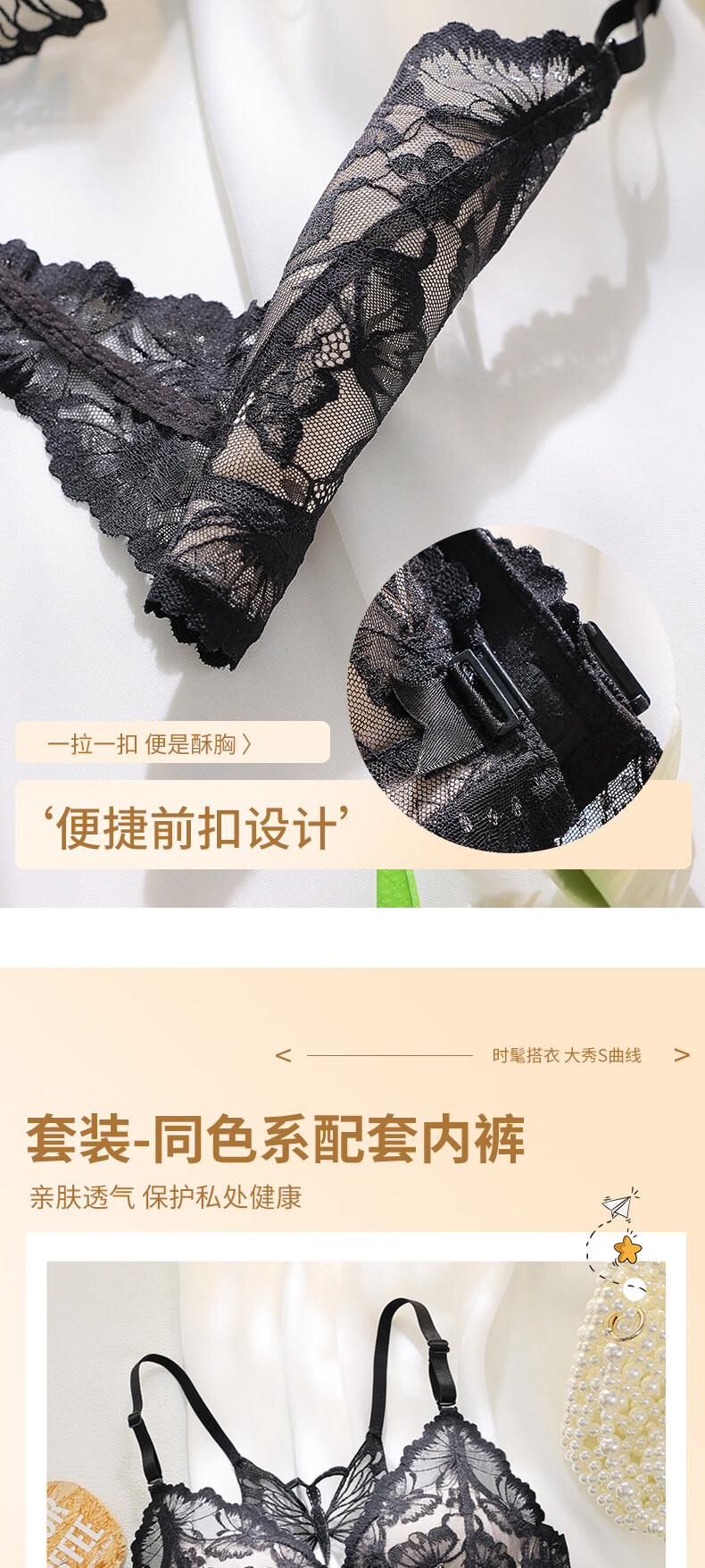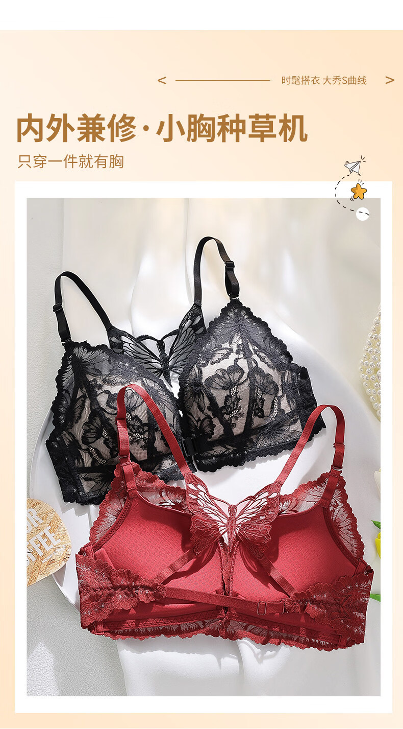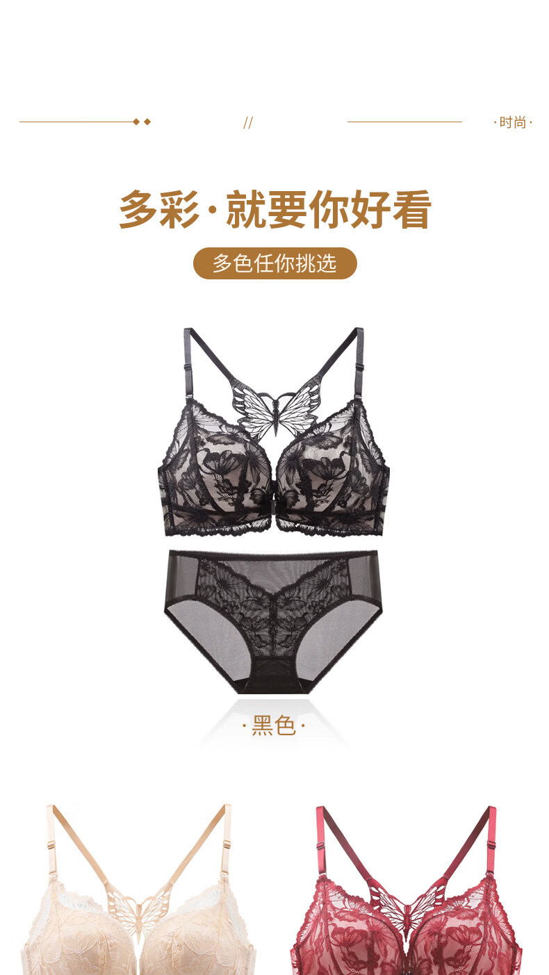 Victoria's Secret Victoria's Secret Beautiful Back Underwear Women's Small Breast Gathering Summer Lace Sexy Underwear Set Women's Front Button Black Suit 70A 32