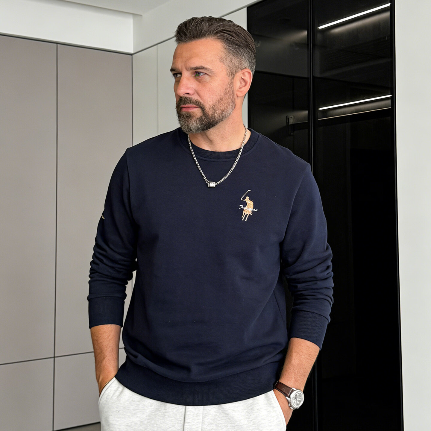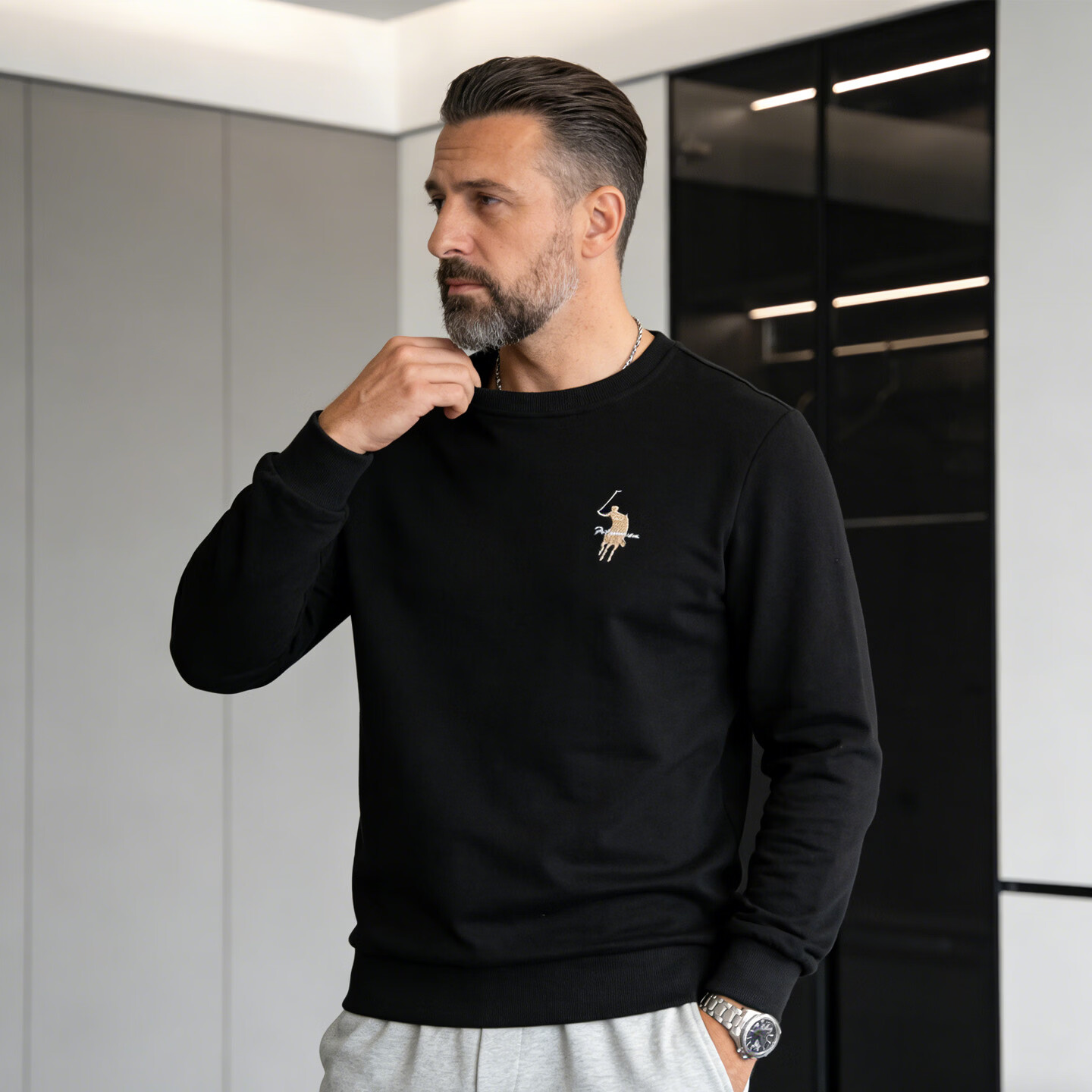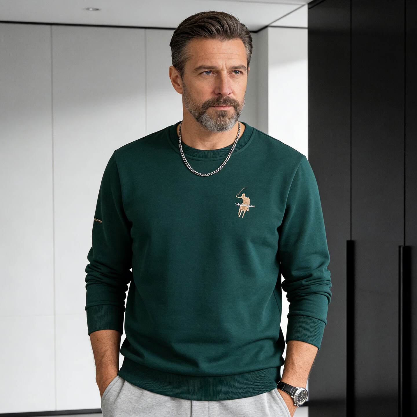 Playboy (PLAYBOY) men's sweatshirt spring and autumn pure cotton round neck pullover fashionable casual loose long-sleeved T-shirt large size dark green 2XL 130-150Jin Jin equals 0.5 kg