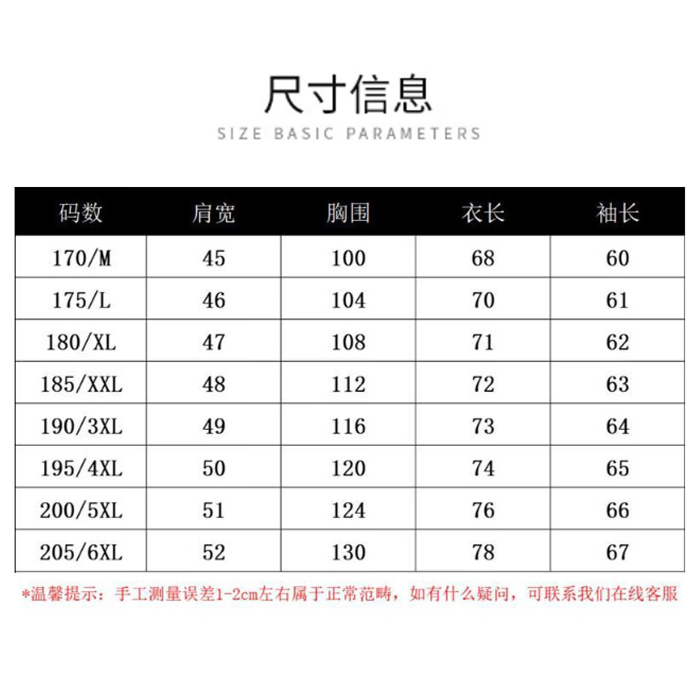 China (cm) 165 / 88-90 170 / 96-98 175 / 108-110 180 / 118-122 185 / 126-130