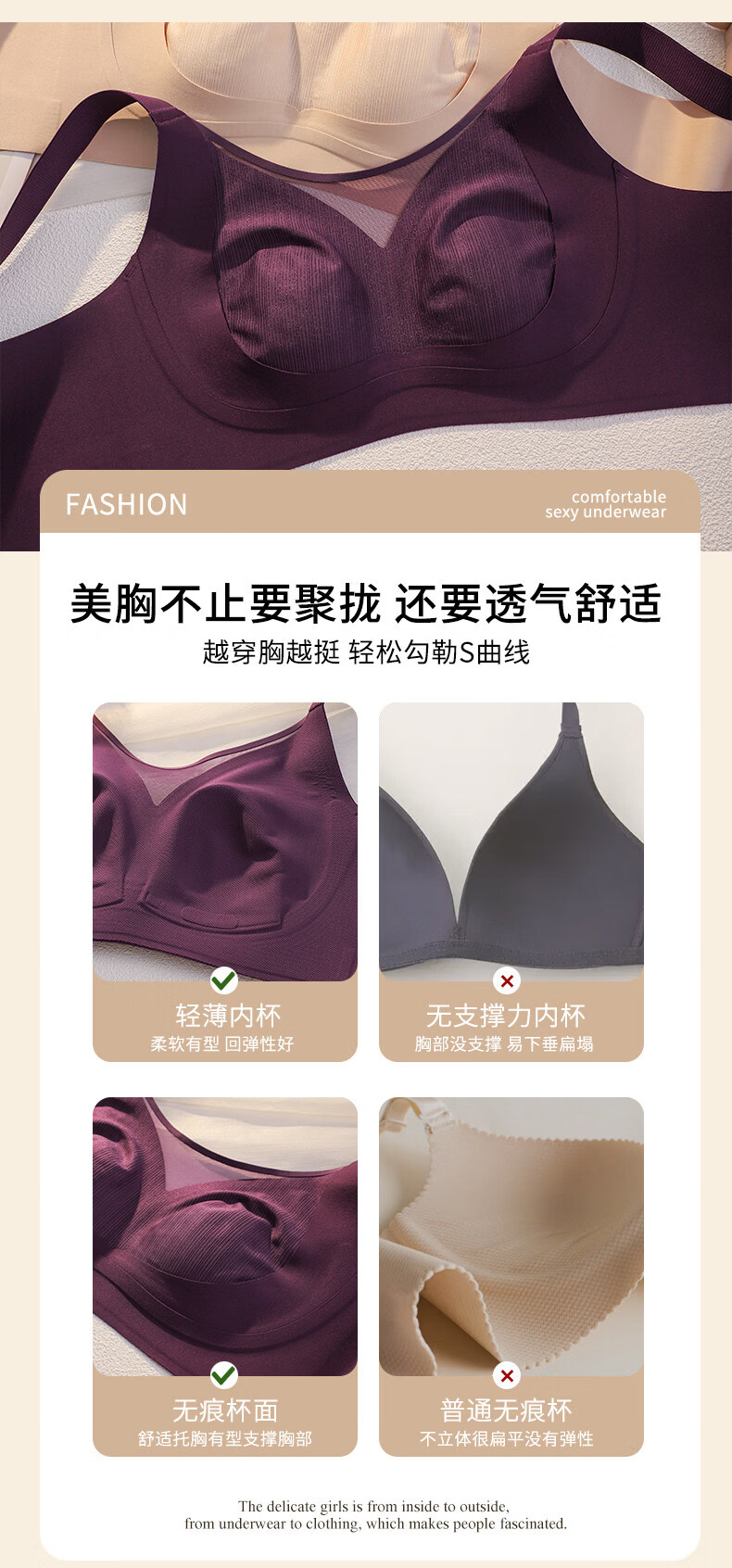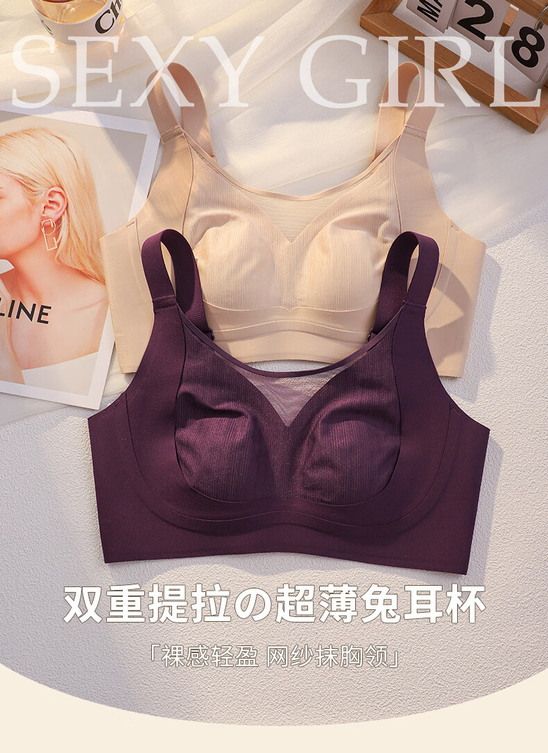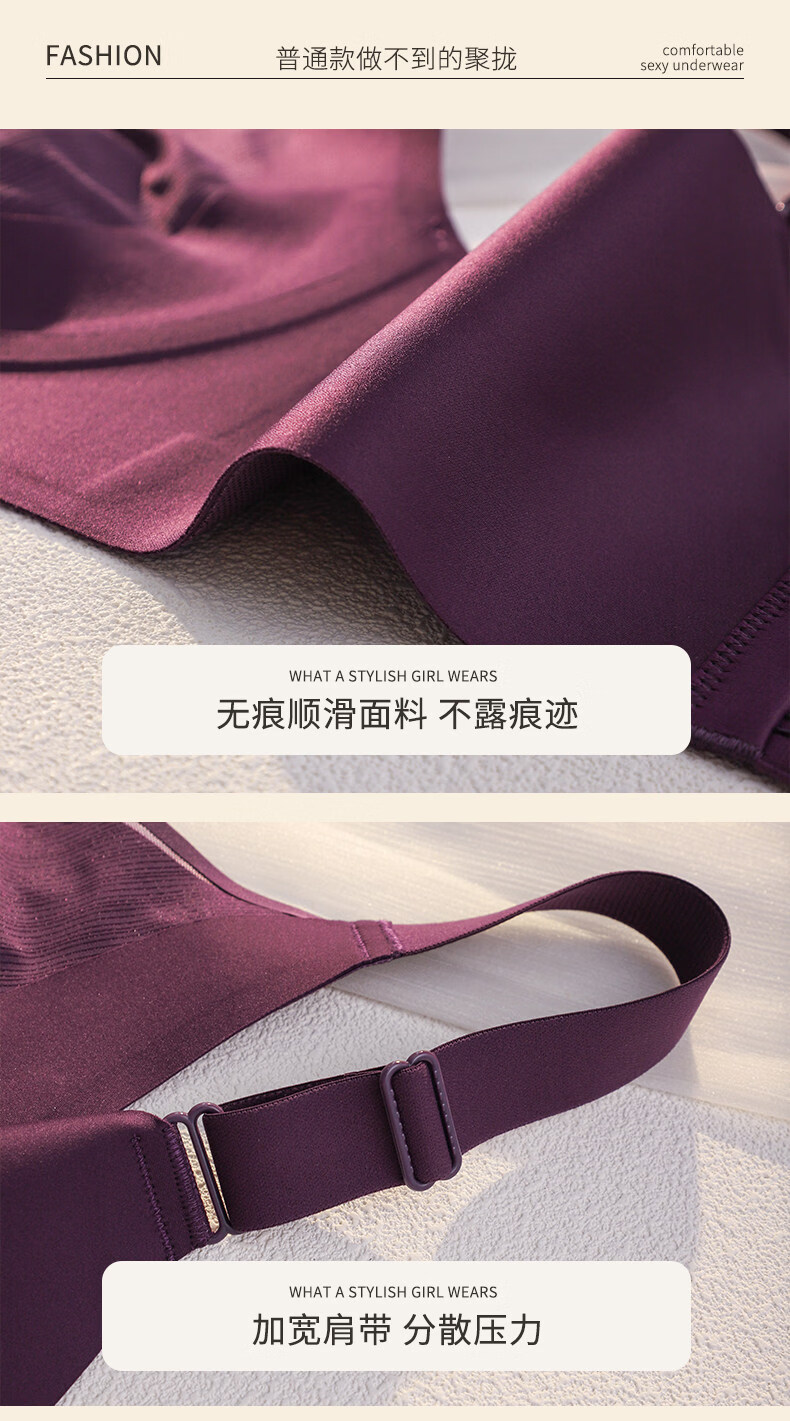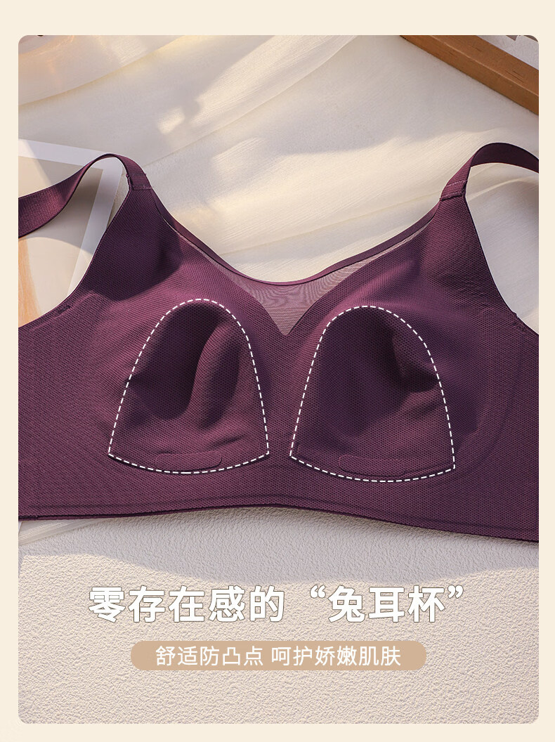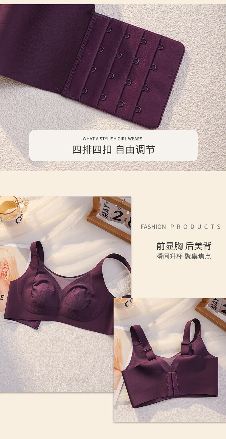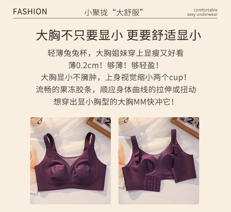 Tube top bra for women with big breasts, slim and slim, adjustable breast reduction and anti-sagging type, no wires, purple + milky white M (recommended 70D_75BC)