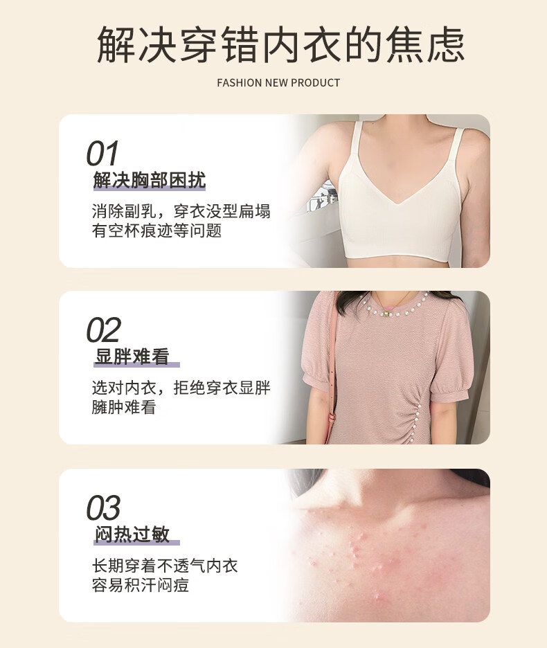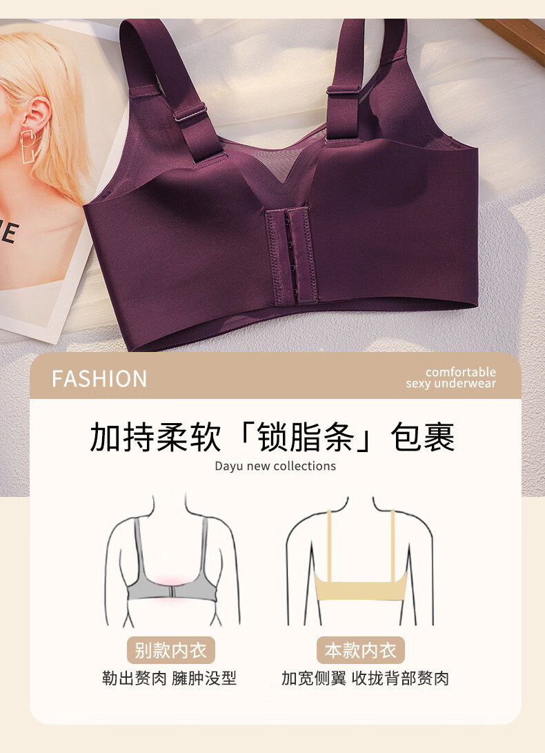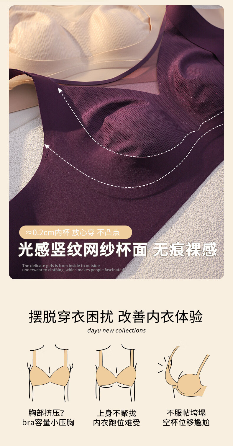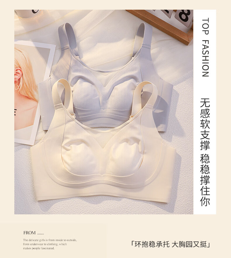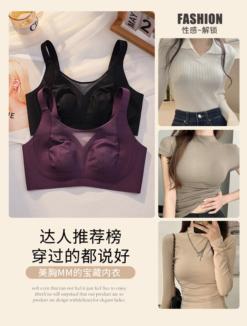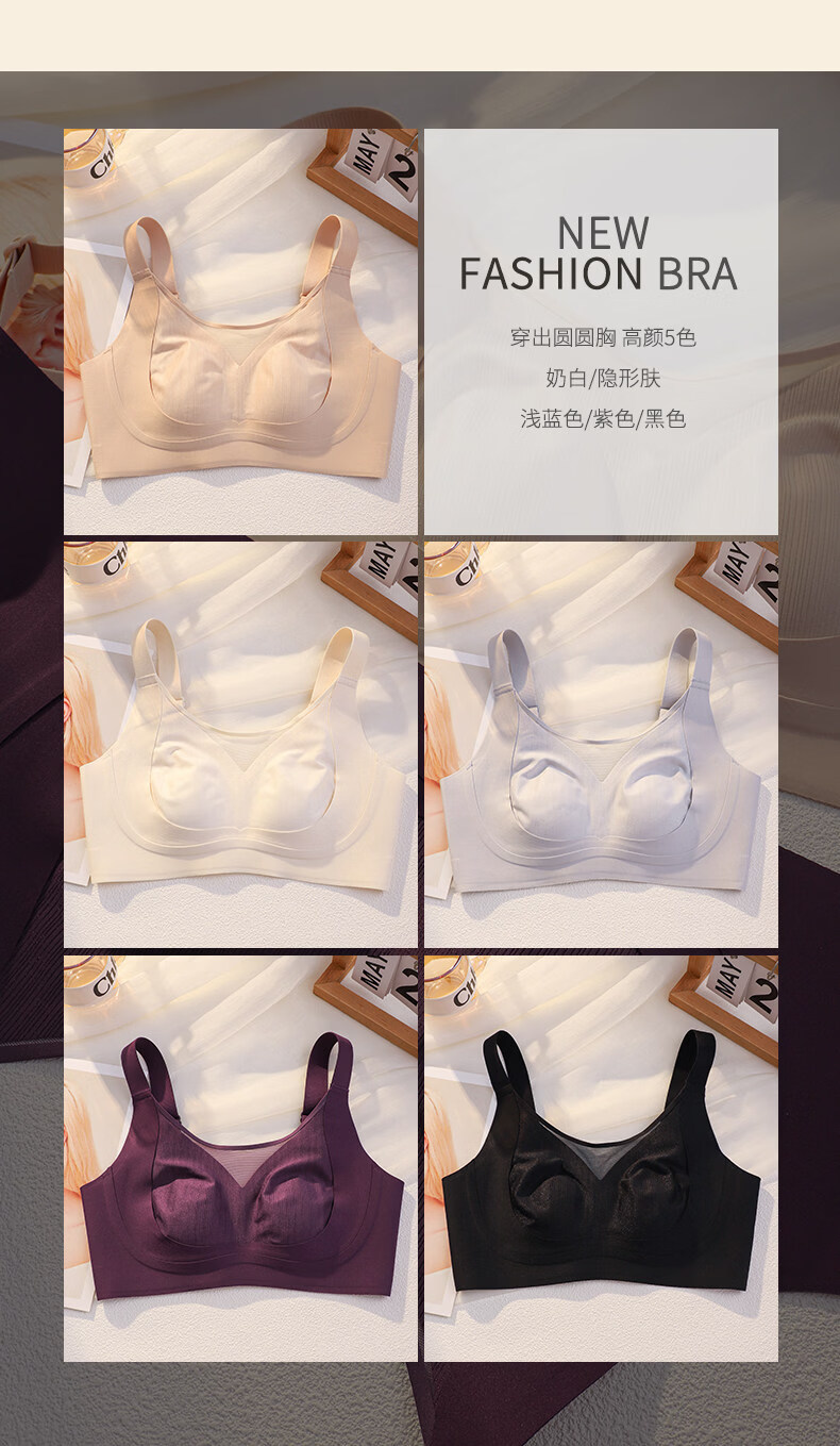 Tube top bra for women with big breasts, slim and slim, adjustable breast reduction and anti-sagging type, no wires, purple + milky white M (recommended 70D_75BC)