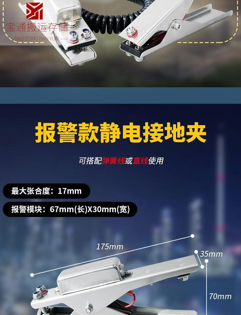Clip Stainless Steel Sound and Light Alarm Clip Accessories Oil Tank Truck Chemical Plant Electrostatic Clamp Double Clamp Double Line 304 Single Clamp_+10 Meters Straight Line
