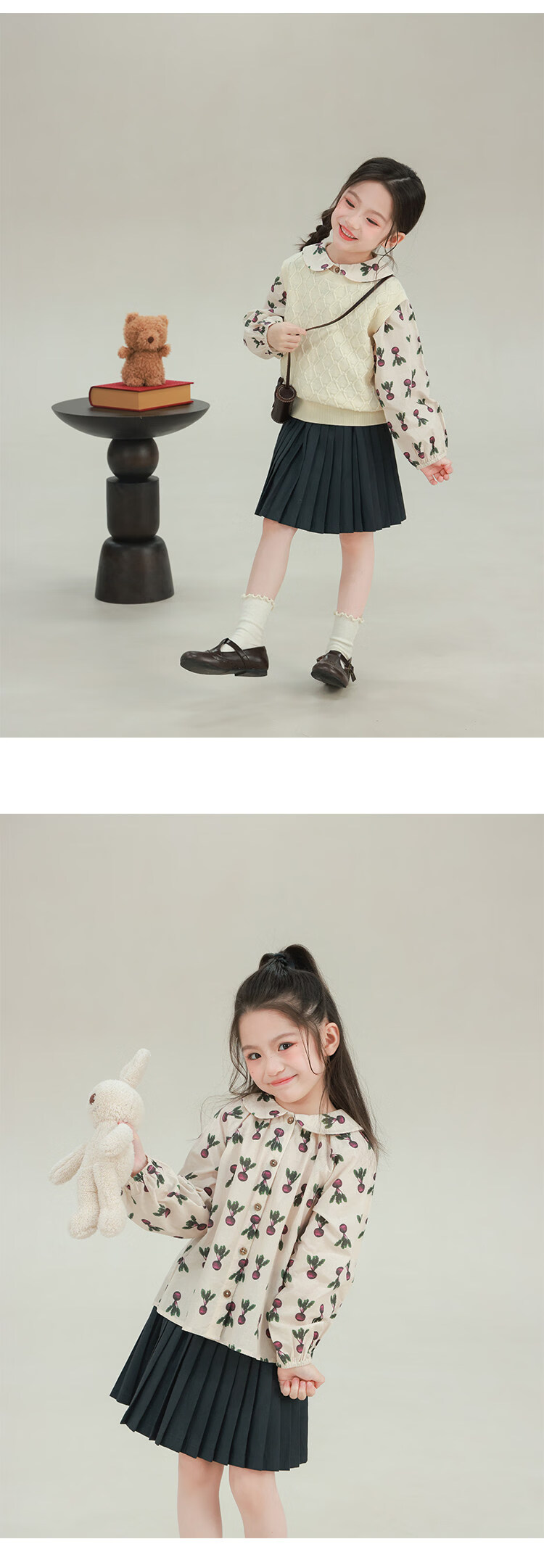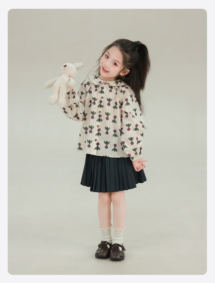 UTOUTO Big Ear Elephant Girls Carrot Lapel Long Sleeve Shirt 2026 Spring New Baoer Pure Cotton Casual Doll Collar Top Dark Apricot Ready Stock 100