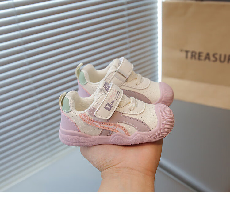 Dr. Kong (DR KONG) infant and toddler shoes for boys, new leather soft sole, non-slip, waterproof, sports functional shoes for girls, pink, label cut and removed from cabinet, 12.5 cm inner length